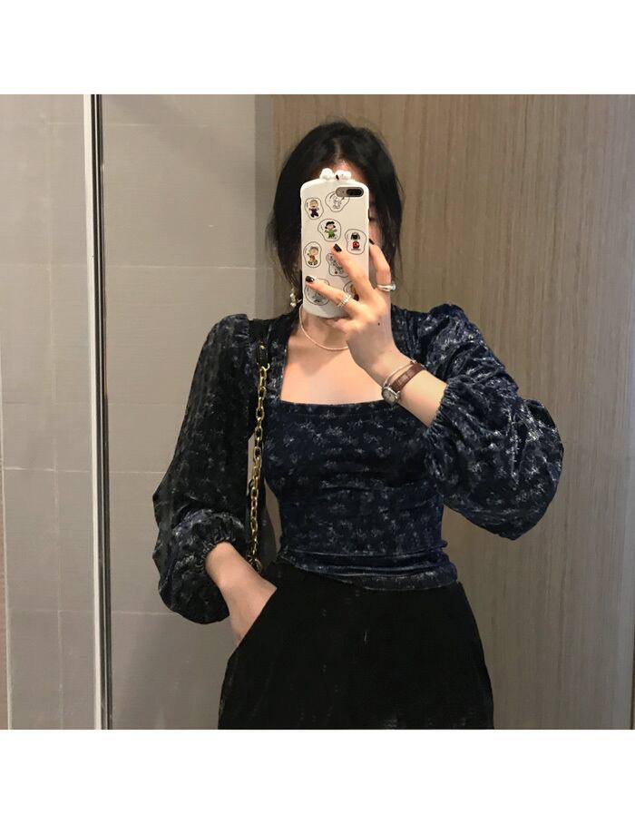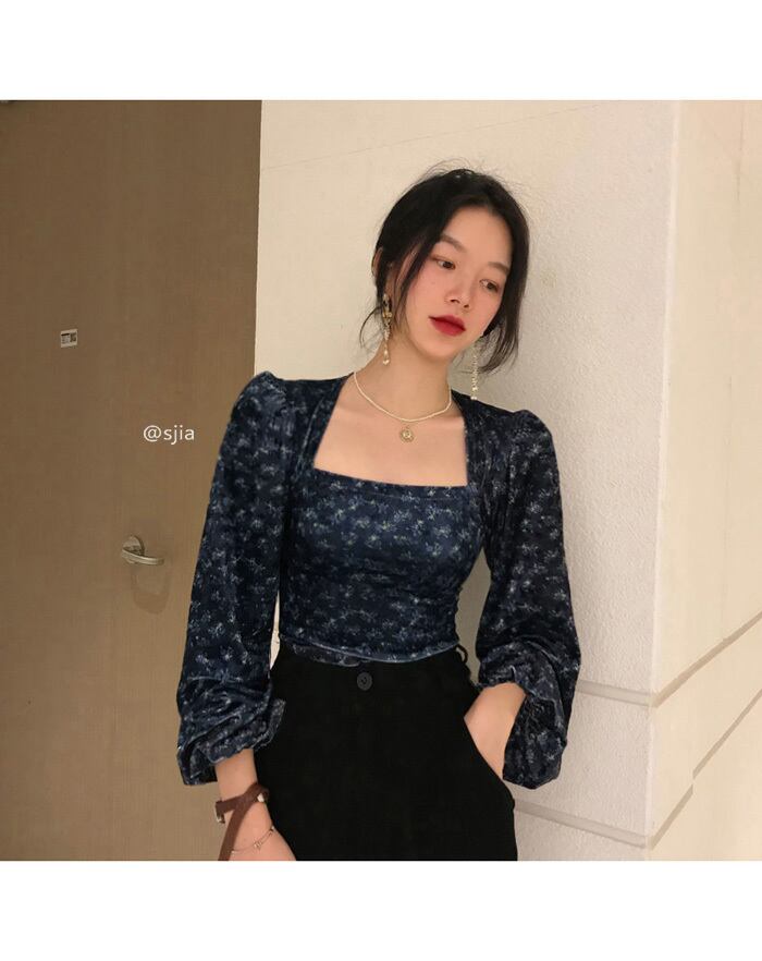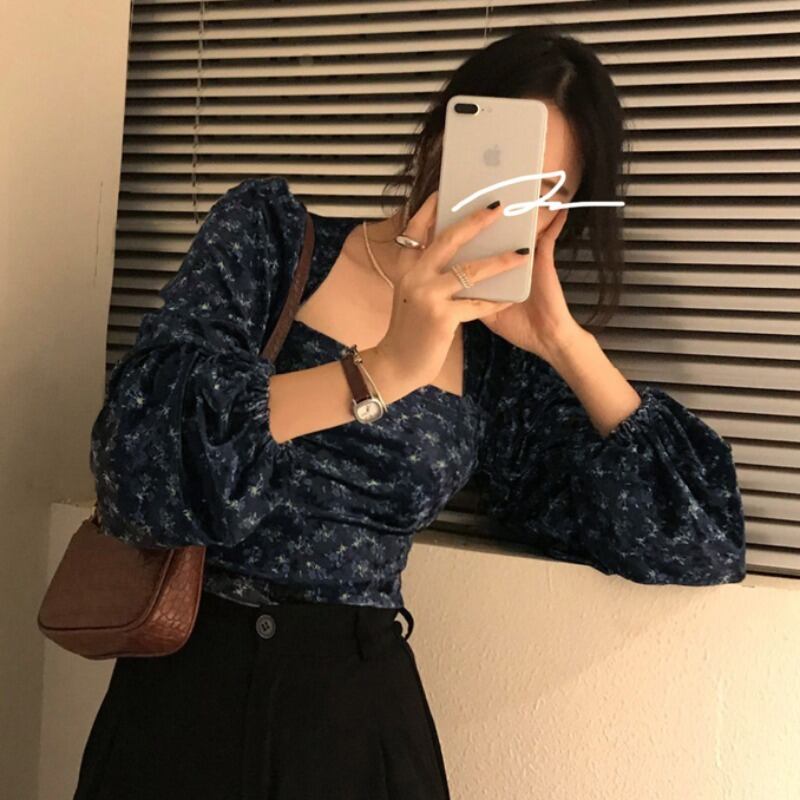 スタンダードカラーフローラルシャツ オータム長袖スリーブショートトップス ロング レトロ 秋物 花柄 スクウェア YY-ファッション11601338683