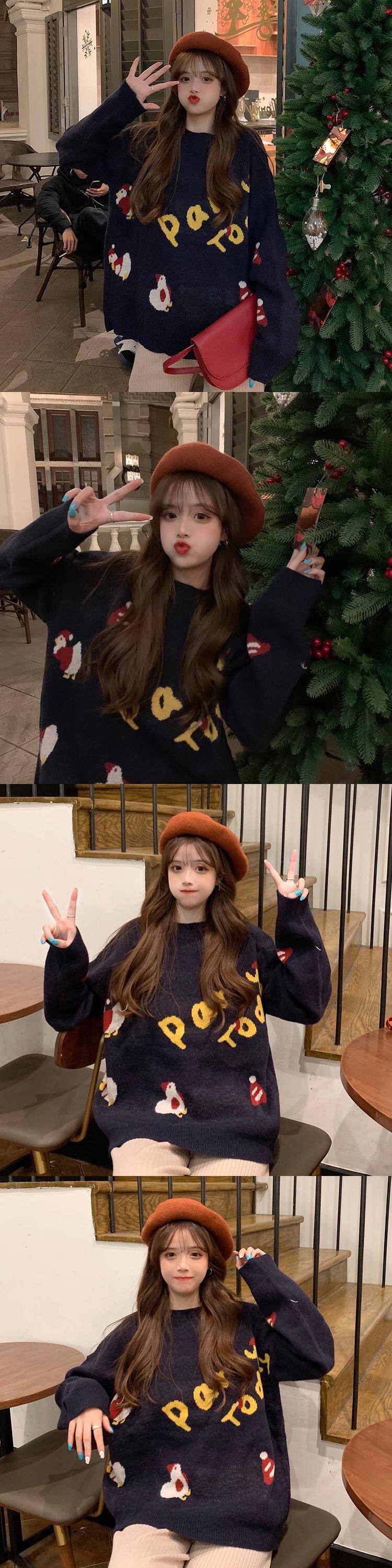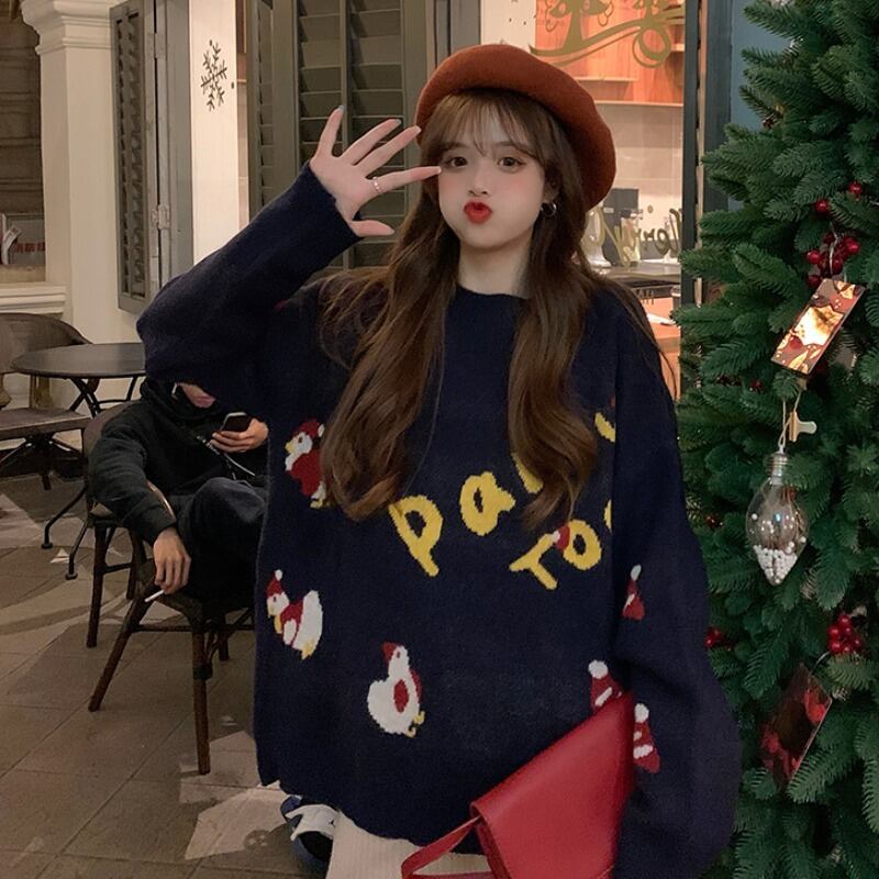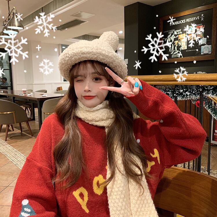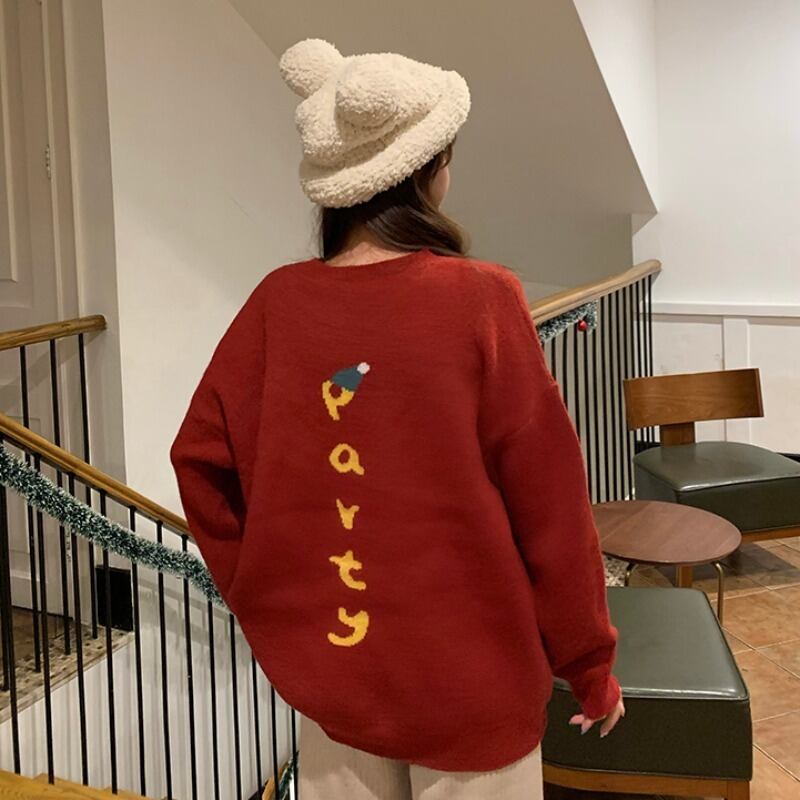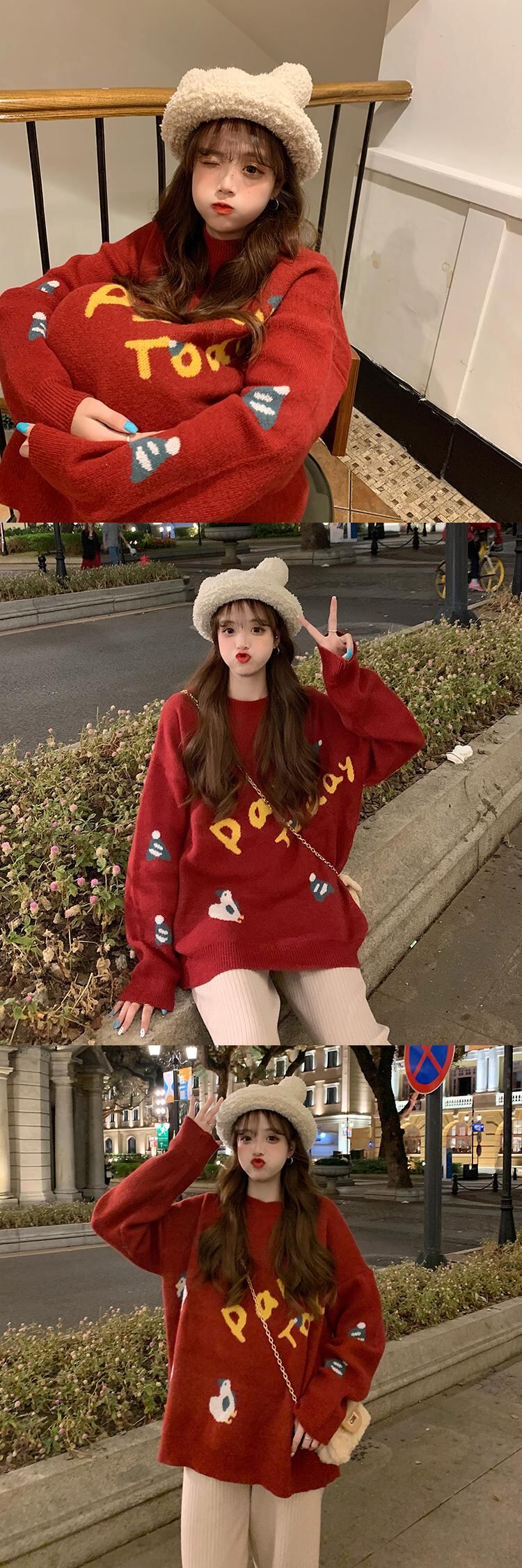 レッドセーター レディースルーズニットトップス オータム 秋物 ウィンター 冬物 YY-ファッション5020125140