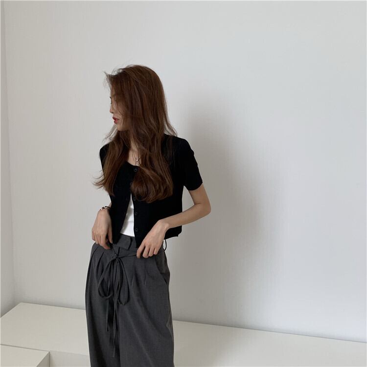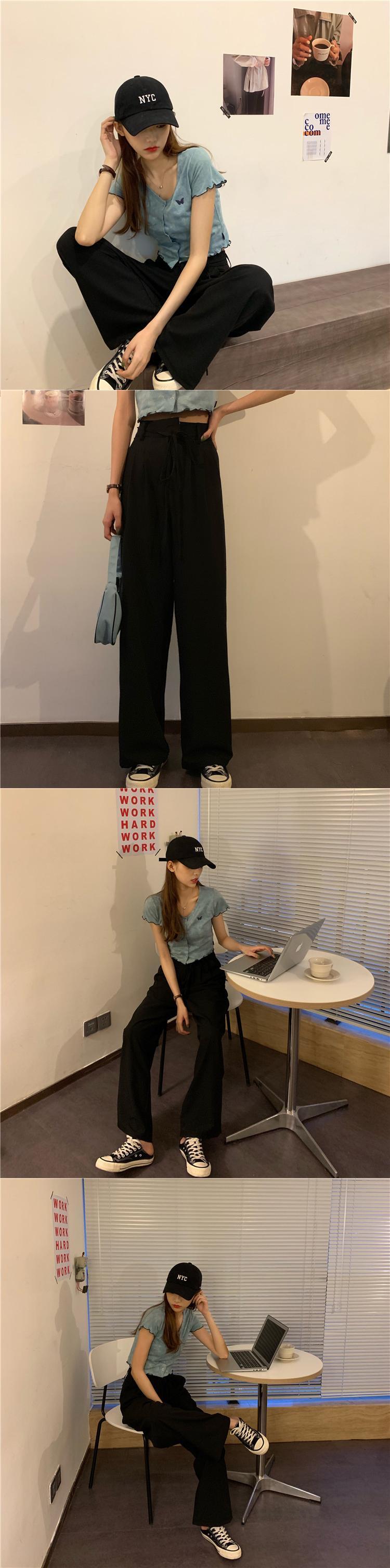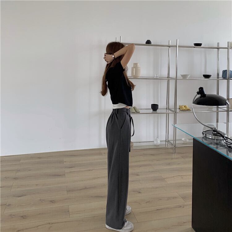 グレーパンツ ルーズハイウェストウェストサマー薄手カジュアル 夏物 YY-ファッション25590980171