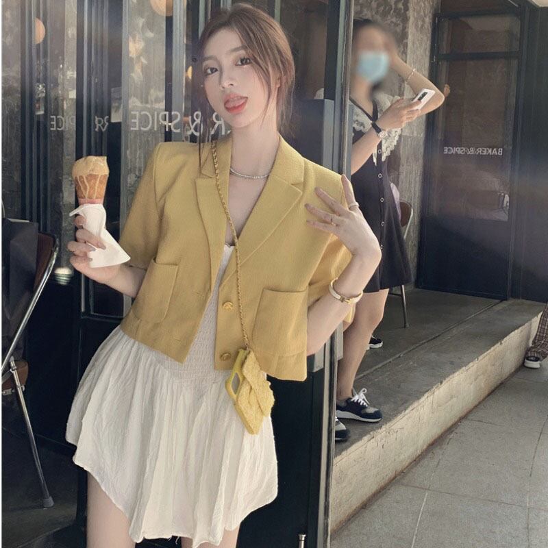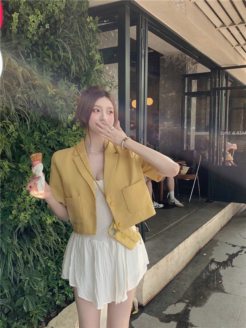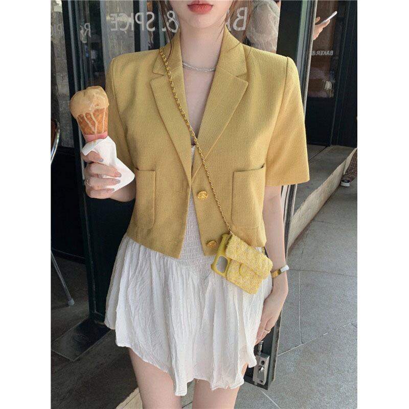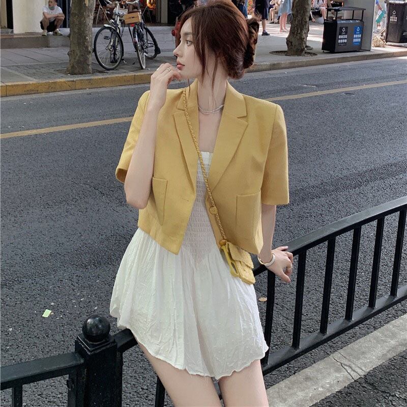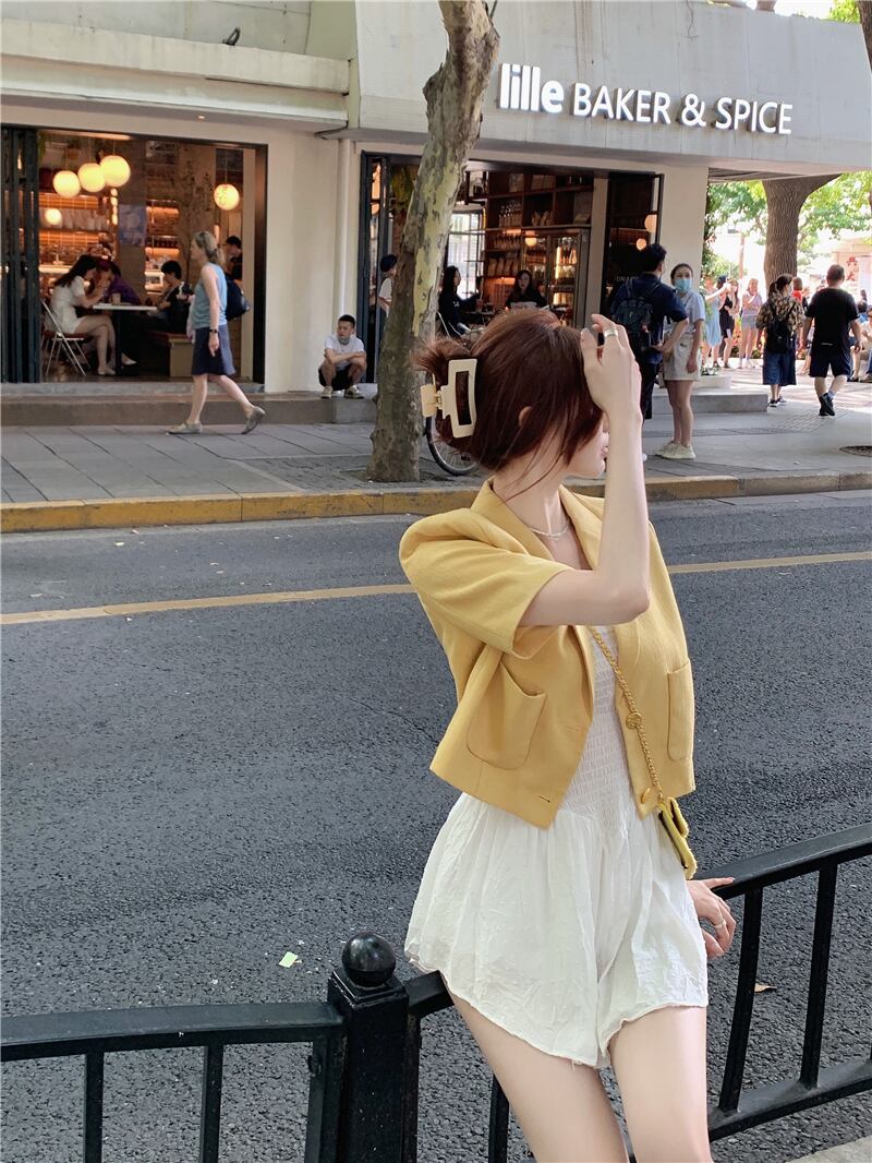 カジュアルジャケット サマー薄手ショートイエロートップス 夏物 YY-ファッション86423581048