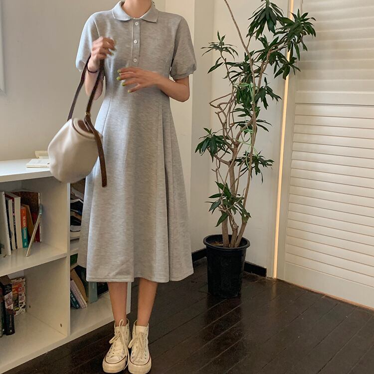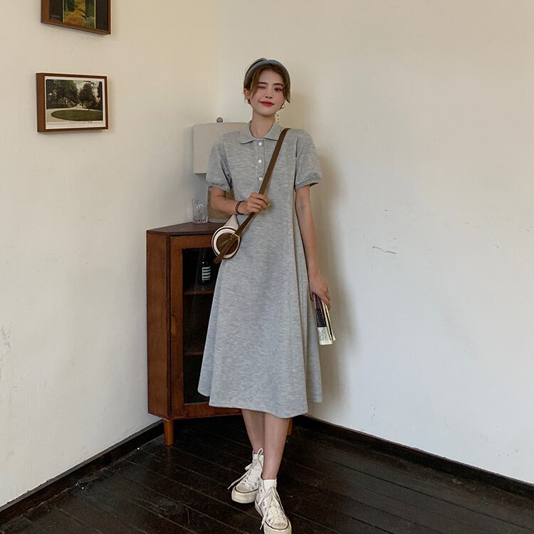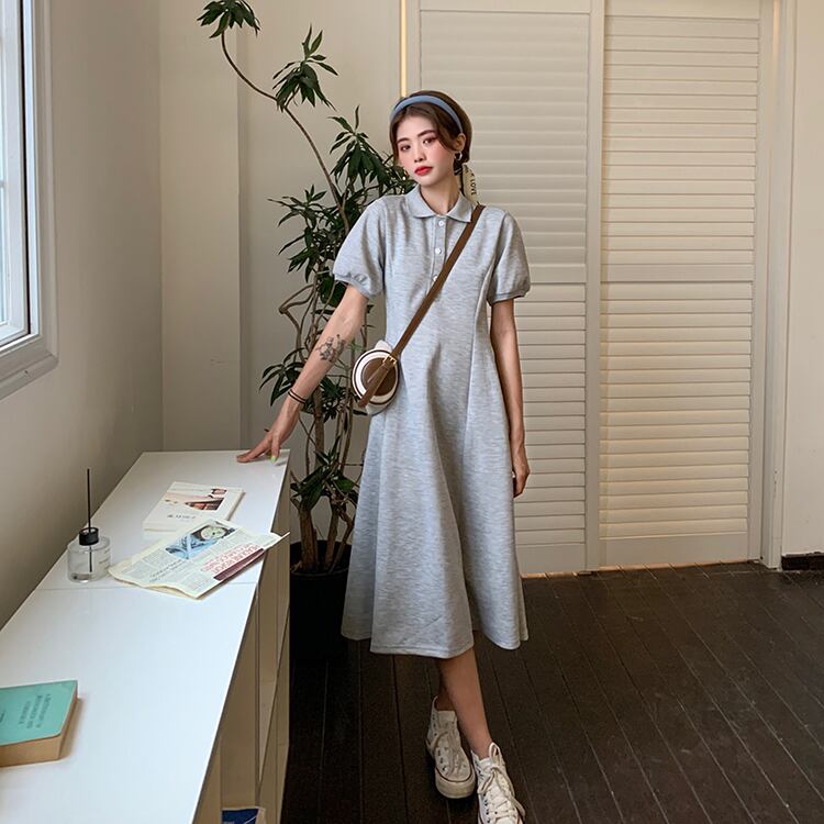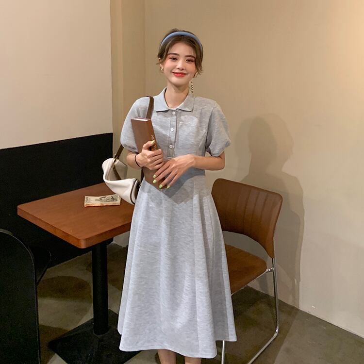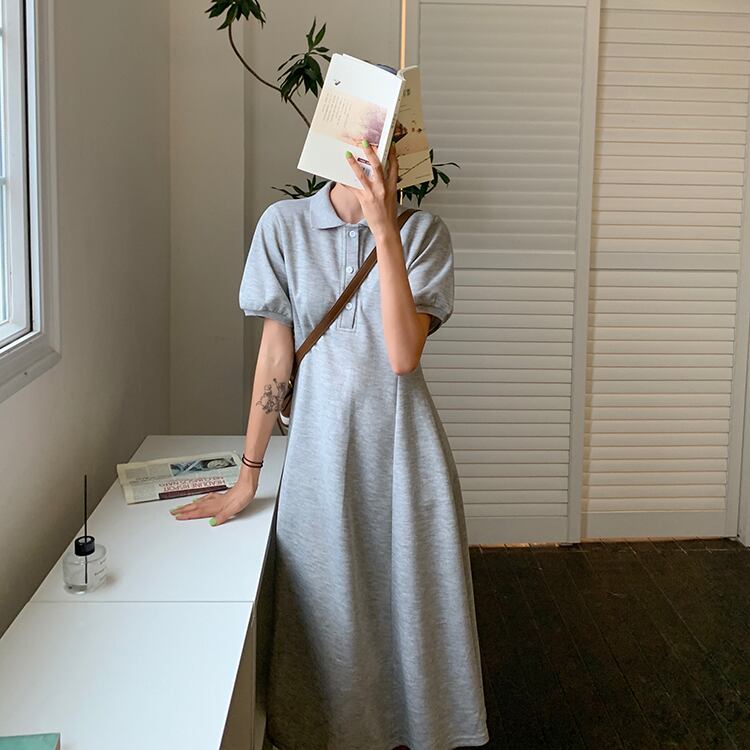 グレーシャツ ドレス サマーウェスト薄手スリーブロングスカート 夏物 YY-ファッション34416519653