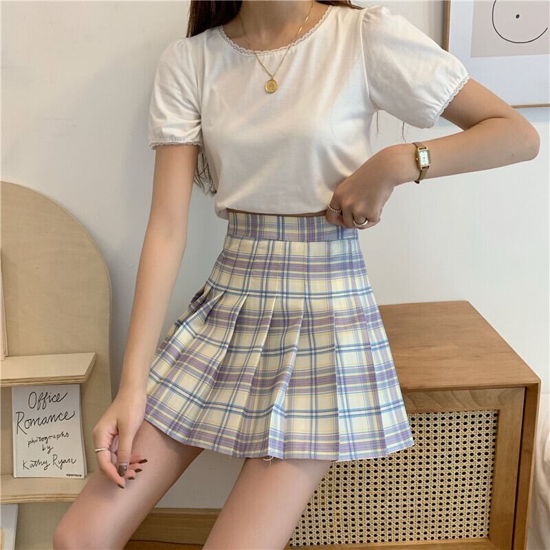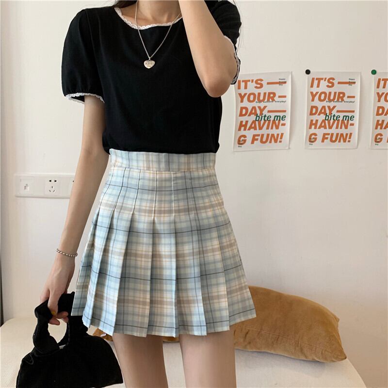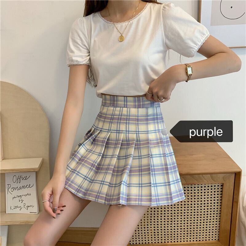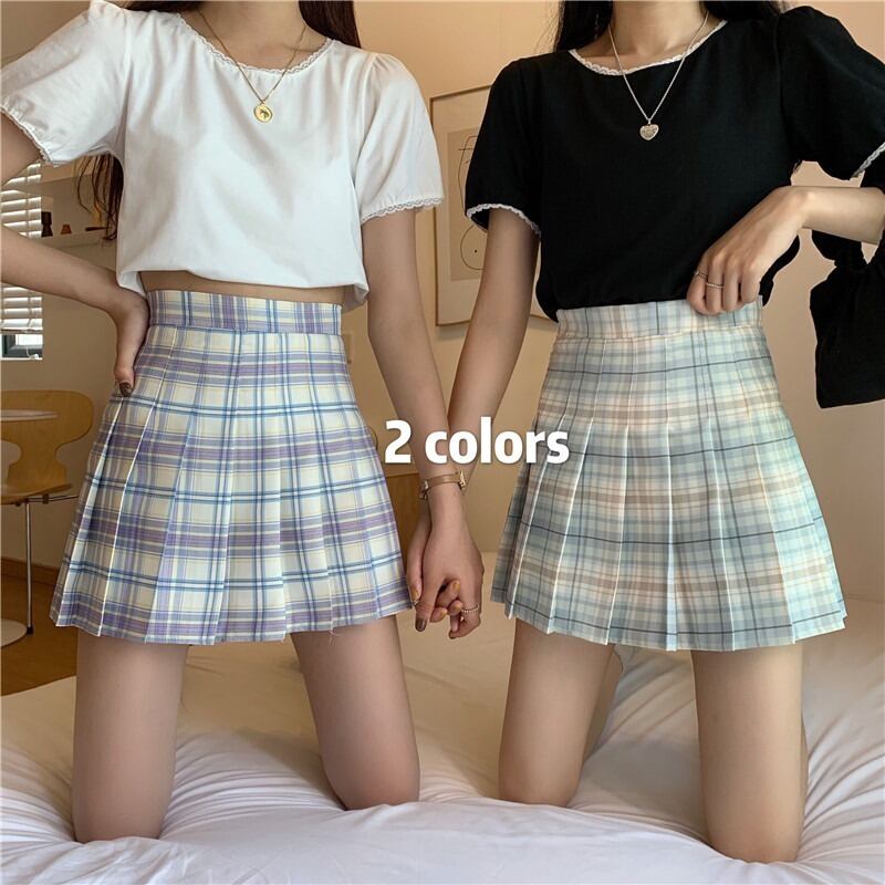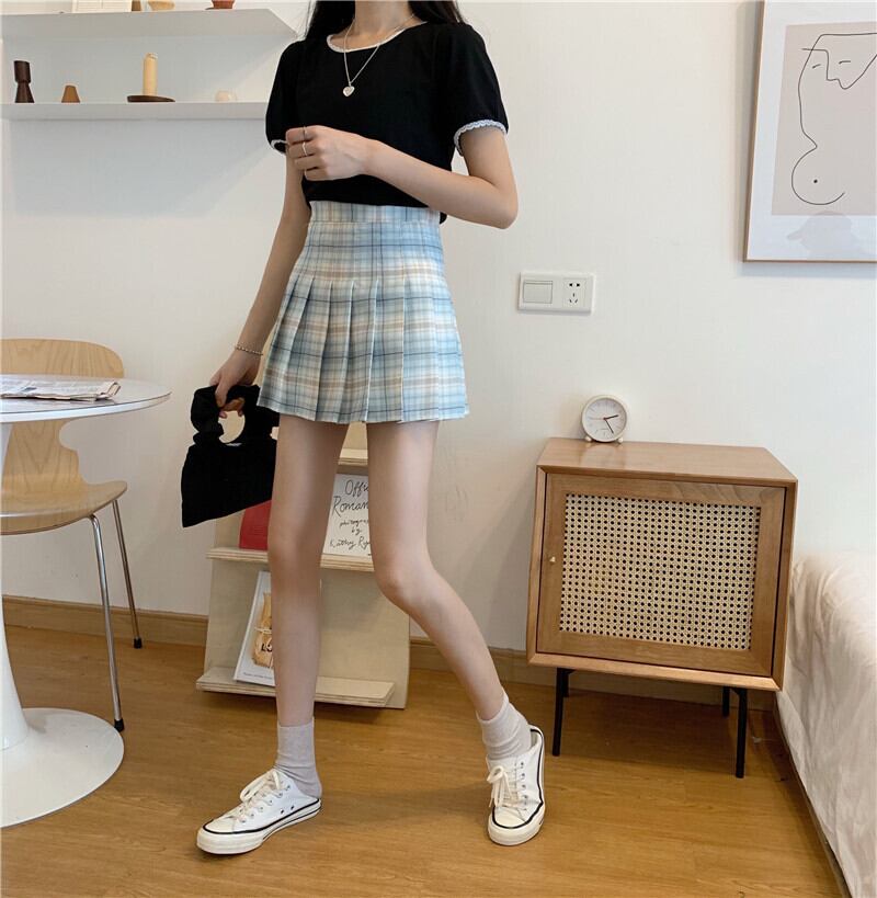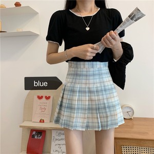 スカート オータムウィンター格子柄プリーツショートハイウェストウェストAライン 大人ガーリー スウィート キュート カジュアル 秋物 冬物 YY-ファッション27498990789