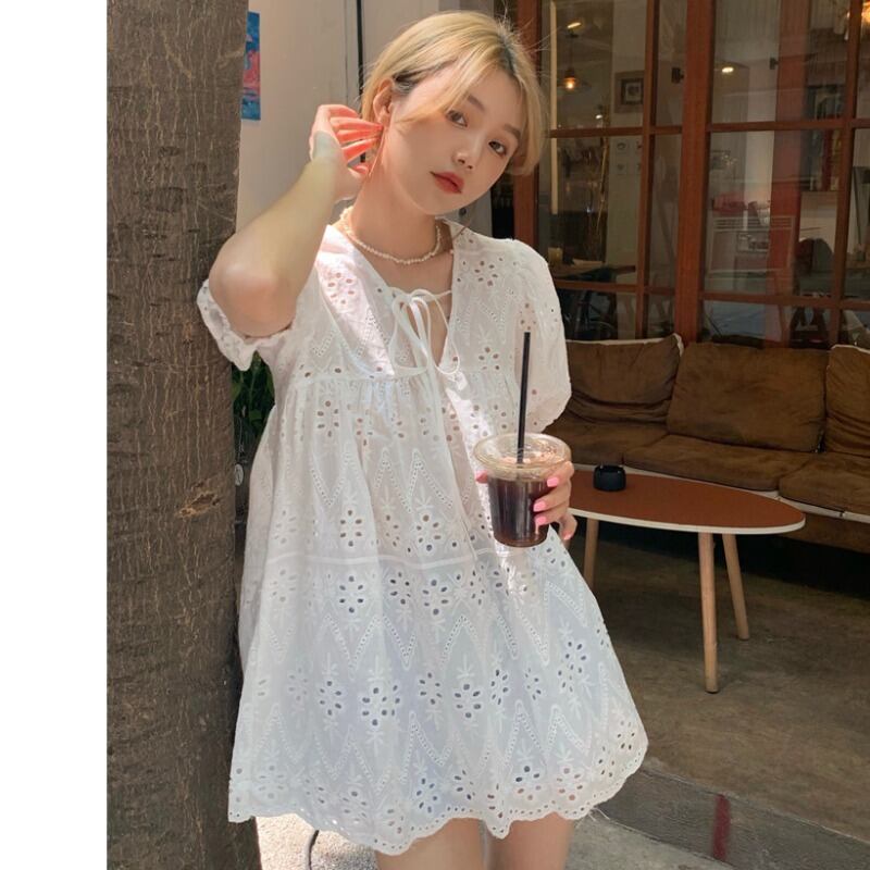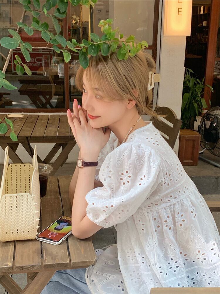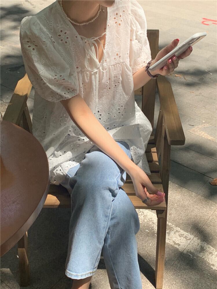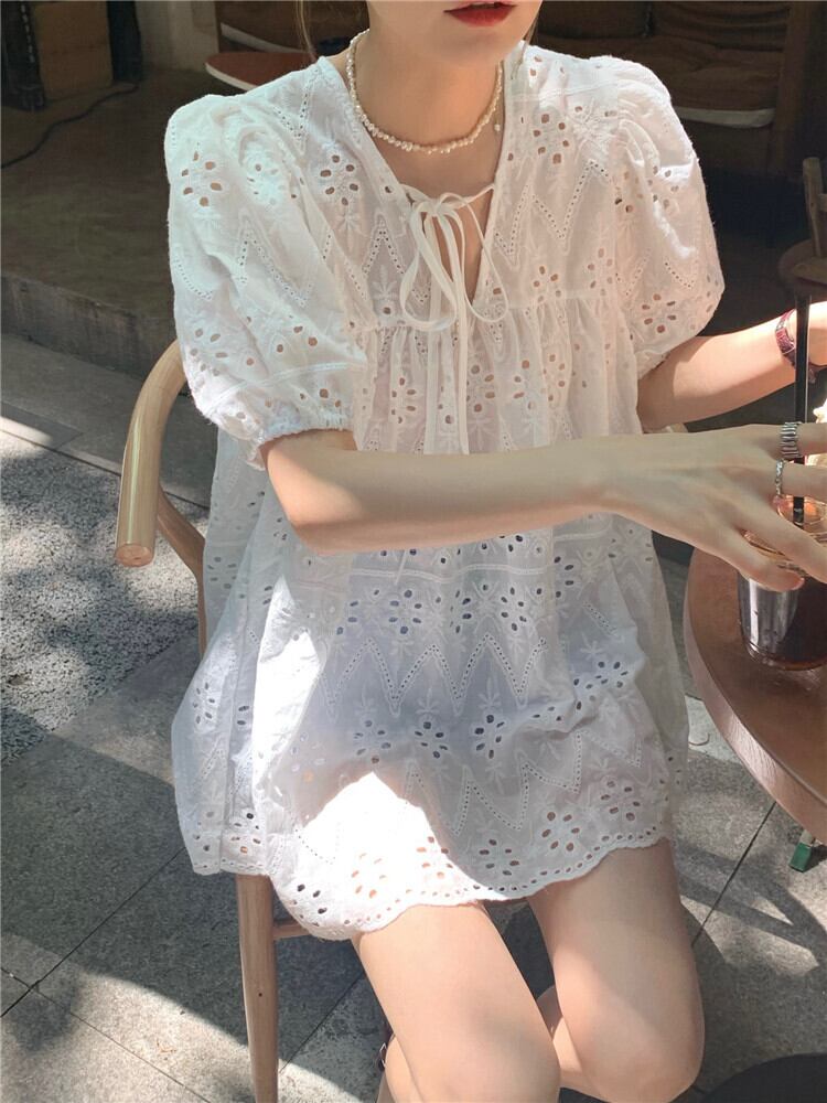 ホワイトレースシャツ 薄手サマー 大人ガーリー スウィート キュート カジュアル 夏物 YY-ファッション60048152831