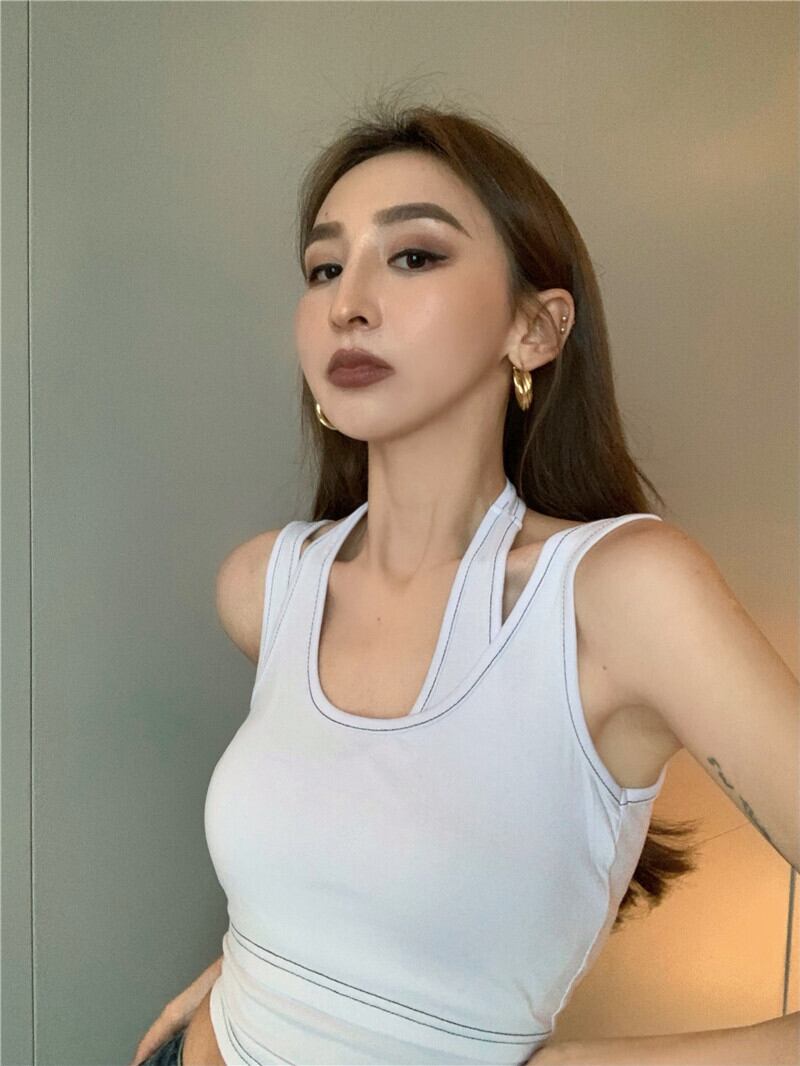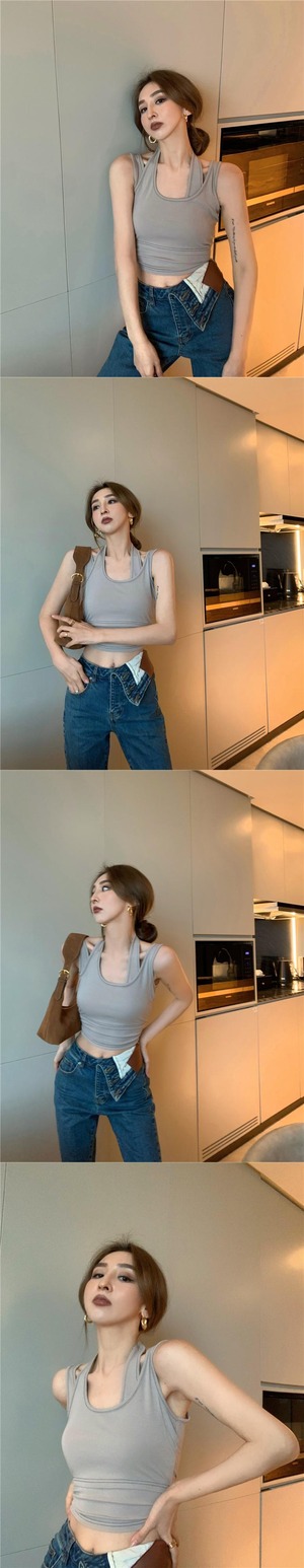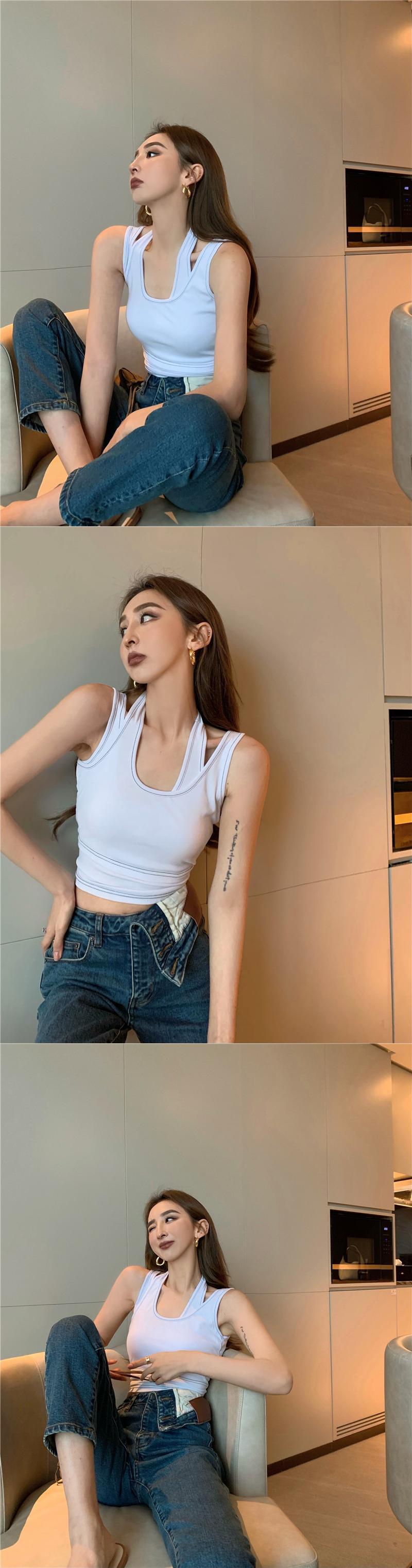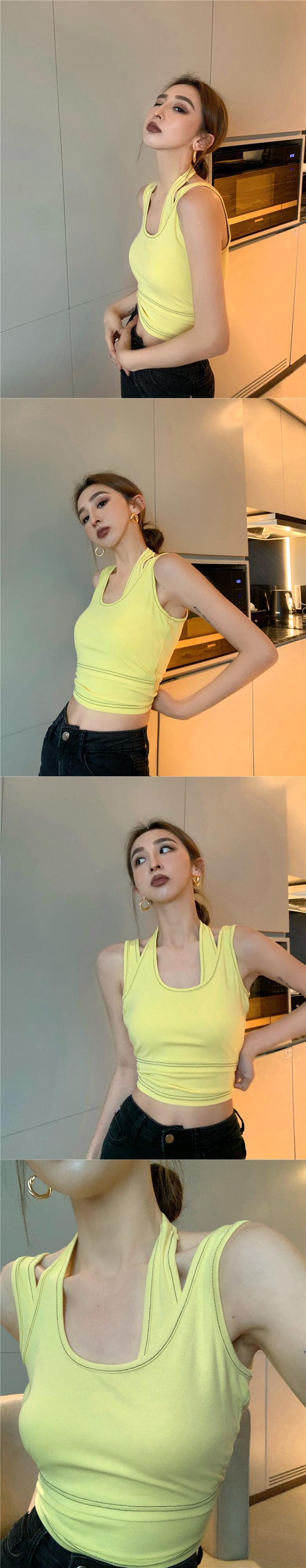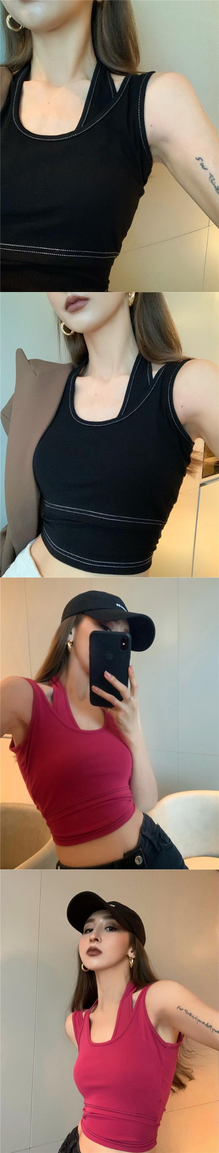 サマーレッドバックノースリーブショートトップス 夏物 YY-ファッション99594290008