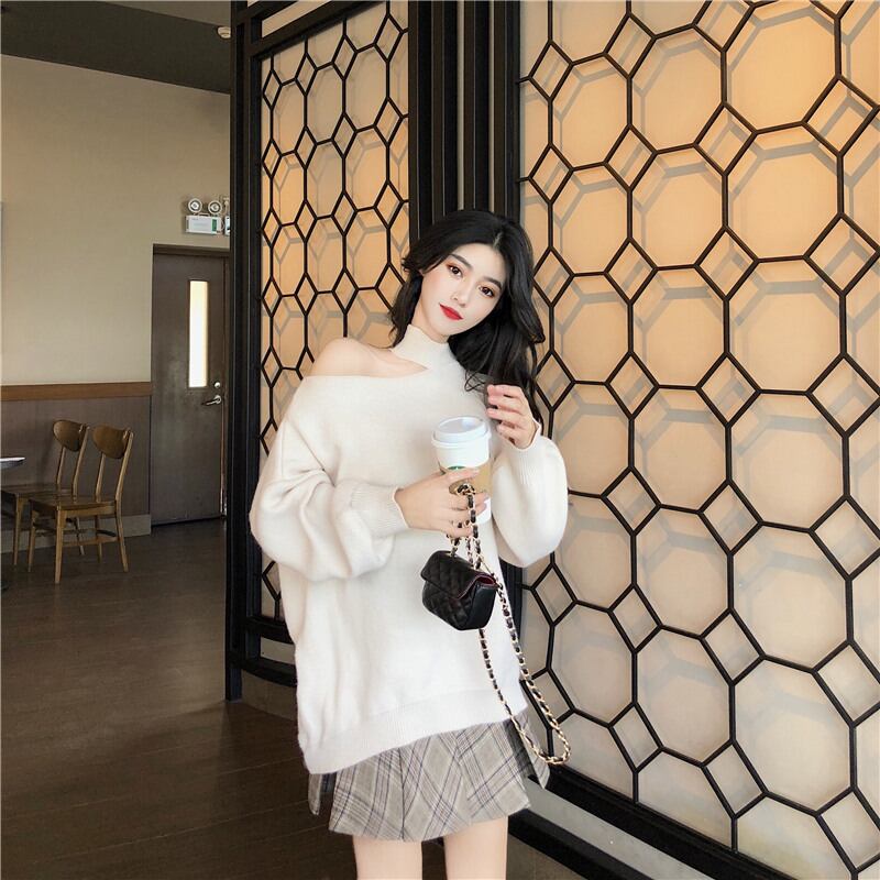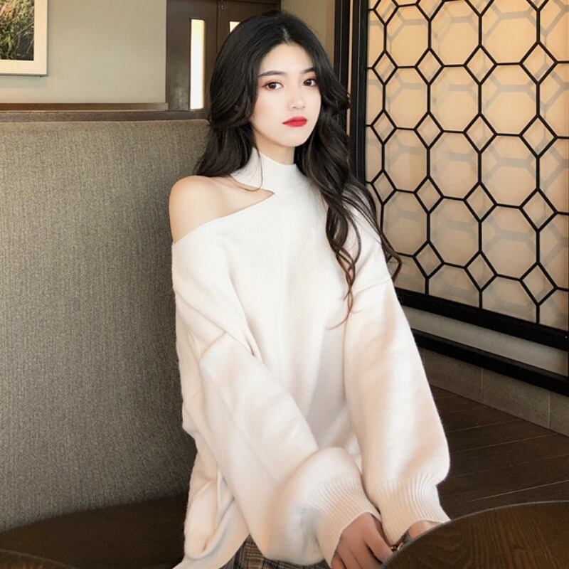 スプリングストラップレスセーター ルーズトップス ロング 春物 YY-ファッション24929987626