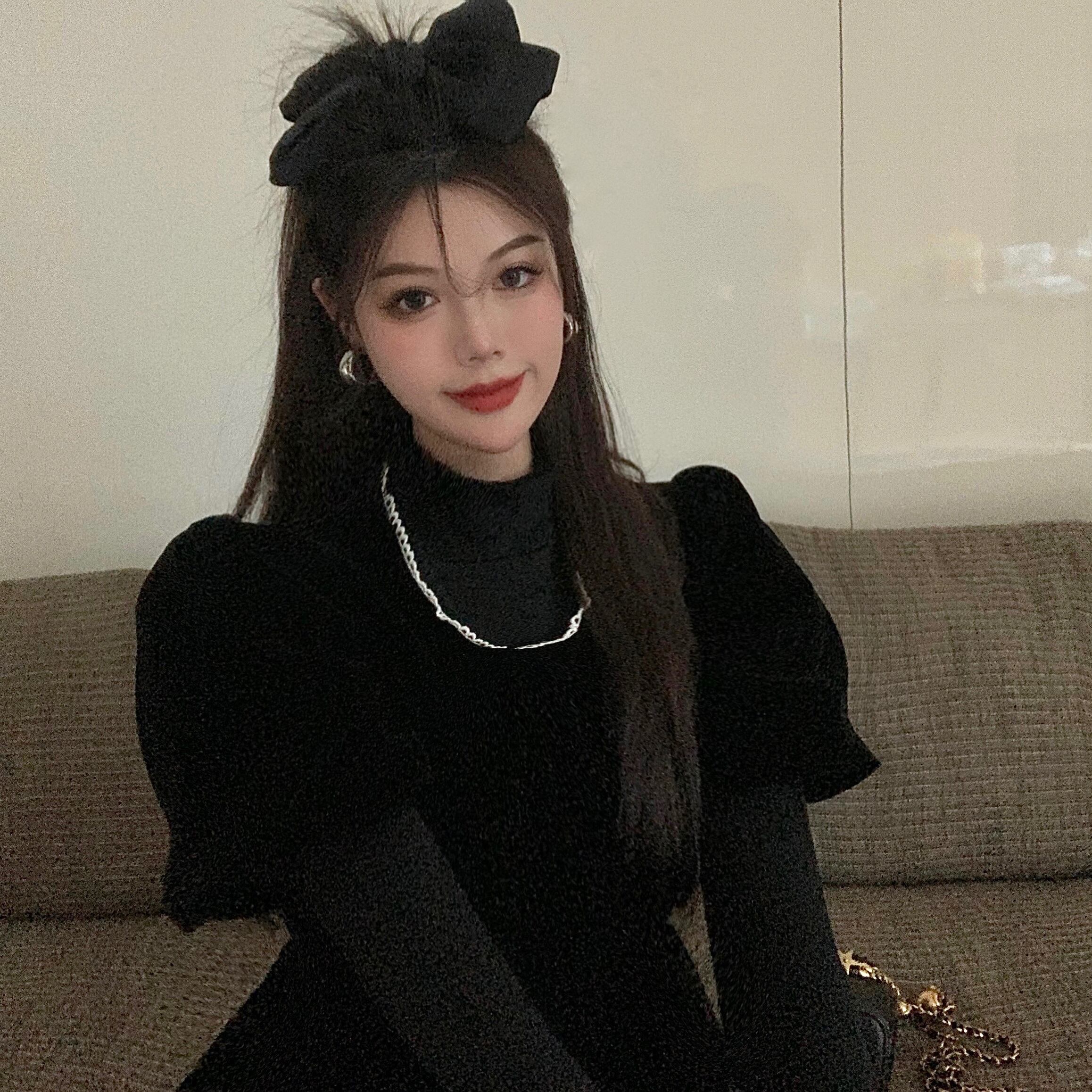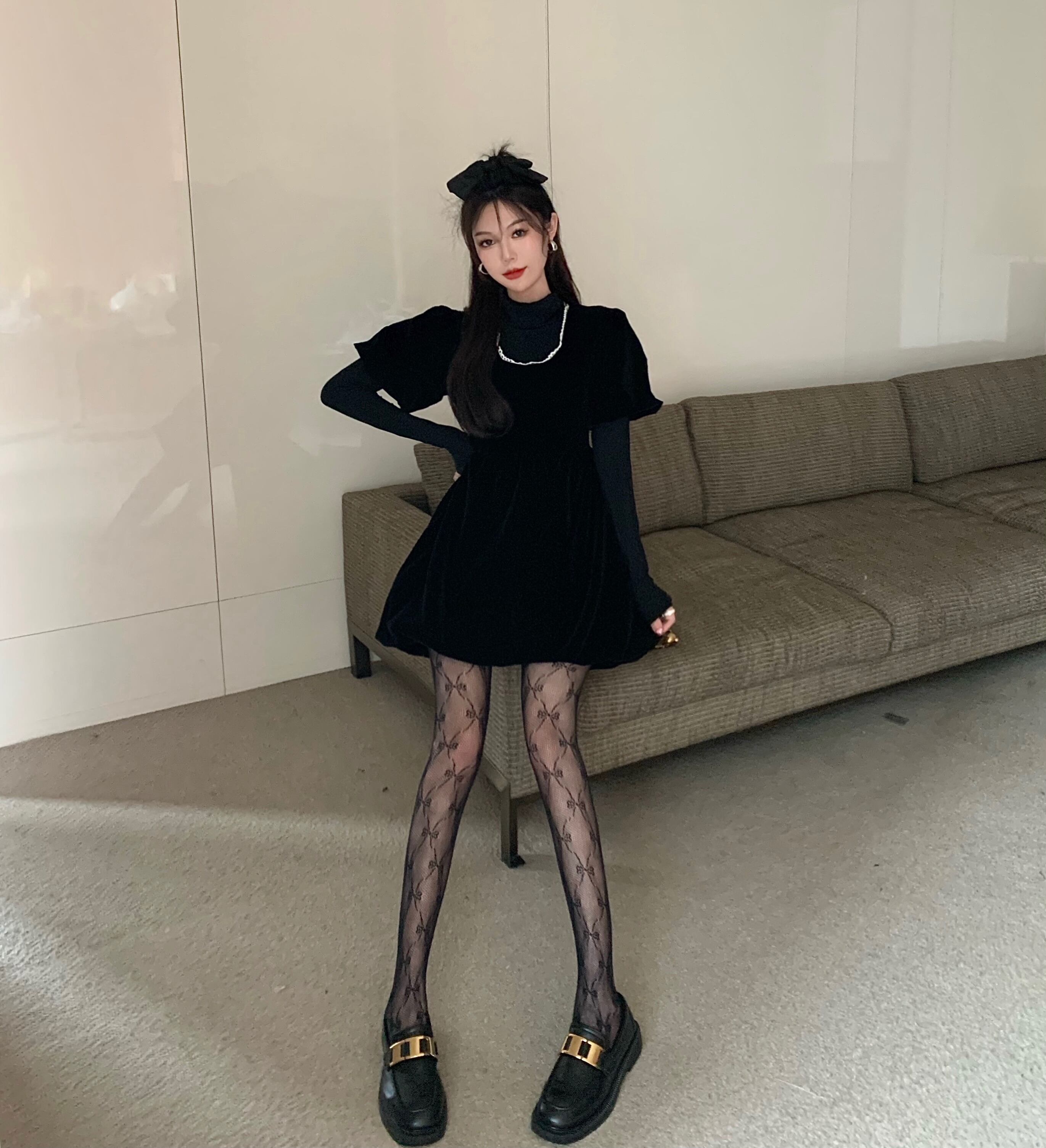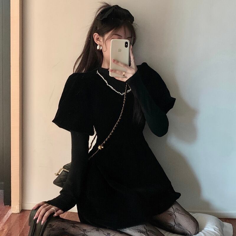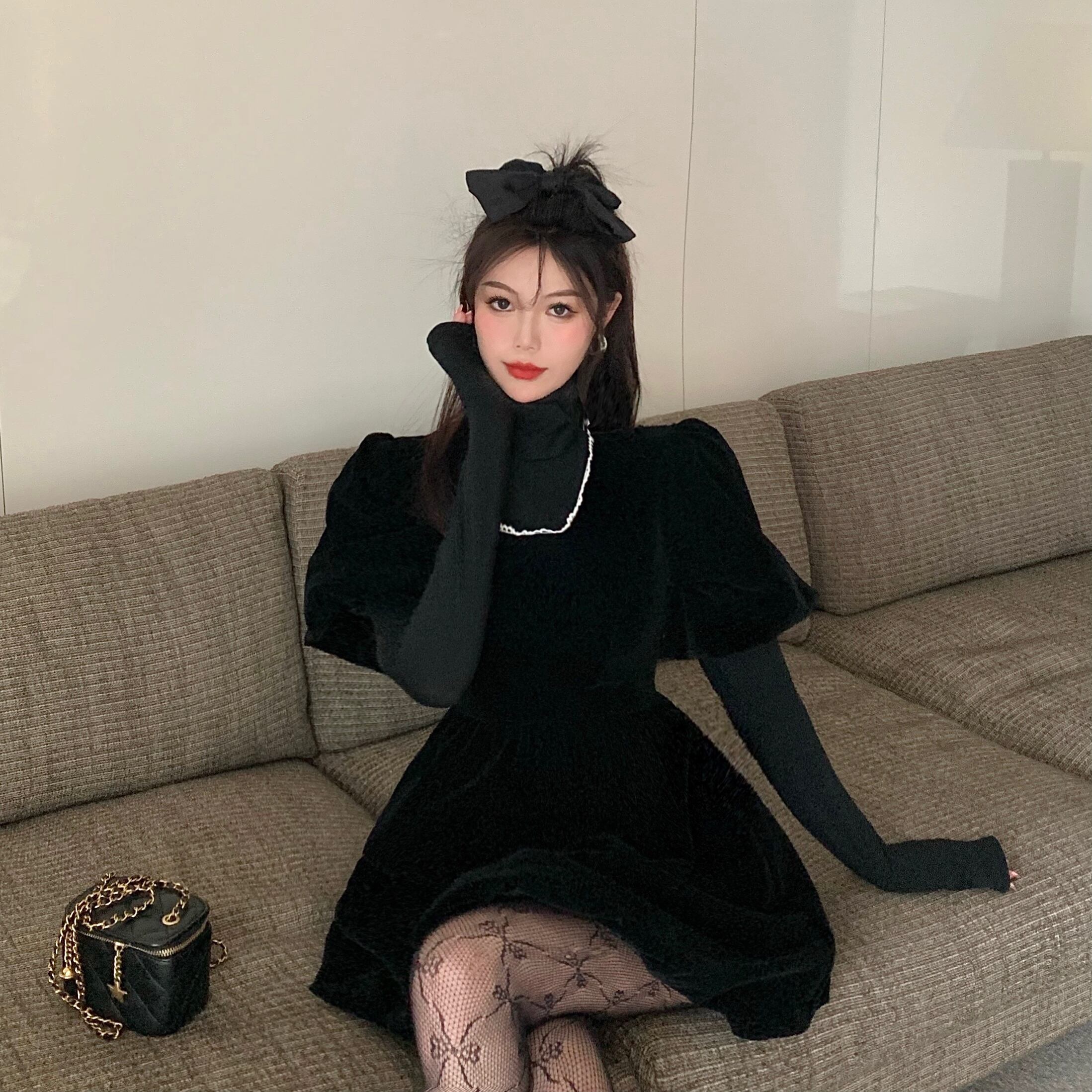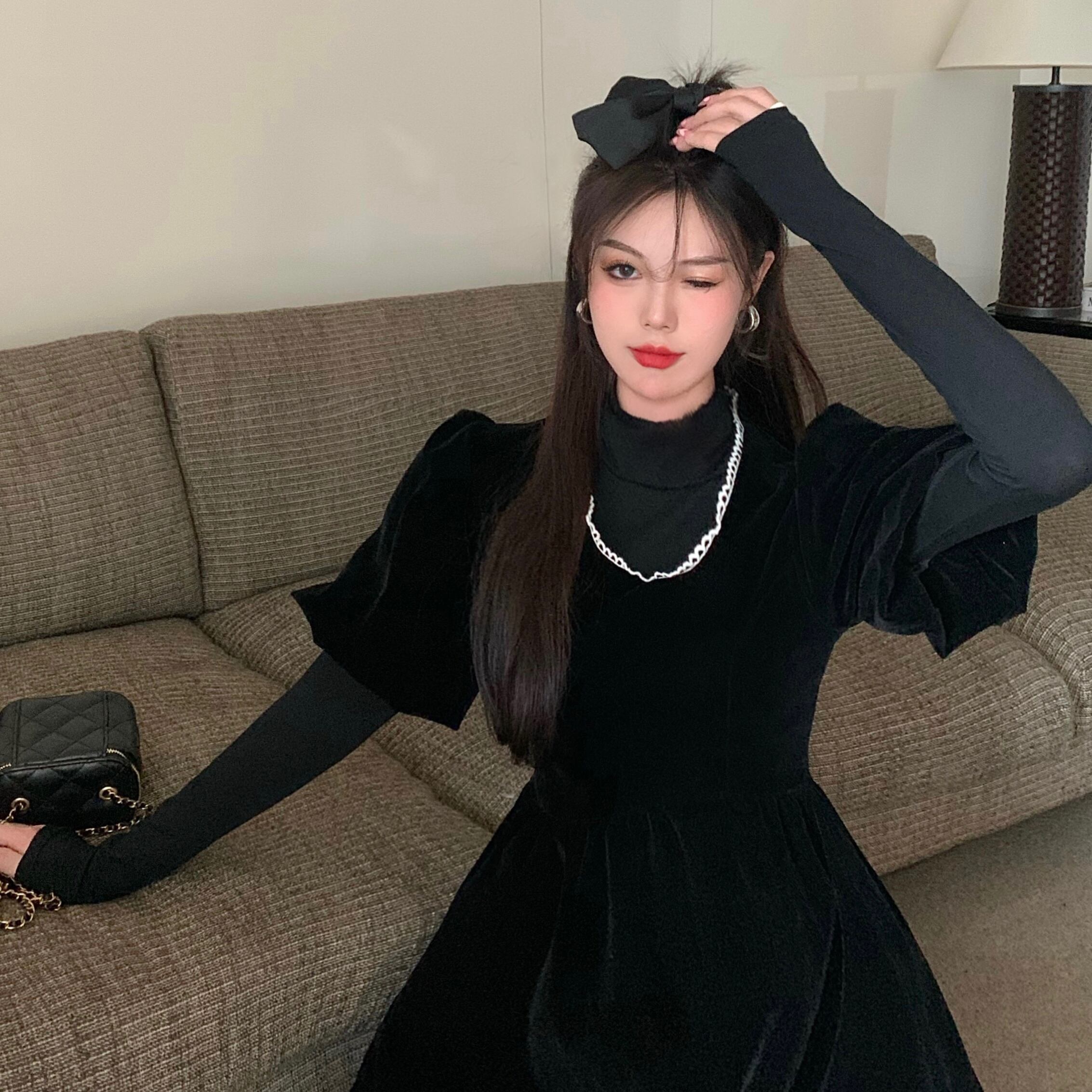 ベルベットドレス レディースオータムウィンタールーズスタンダードブラックウェストスリムシャツ レトロ 秋物 冬物 YY-ファッション158024567