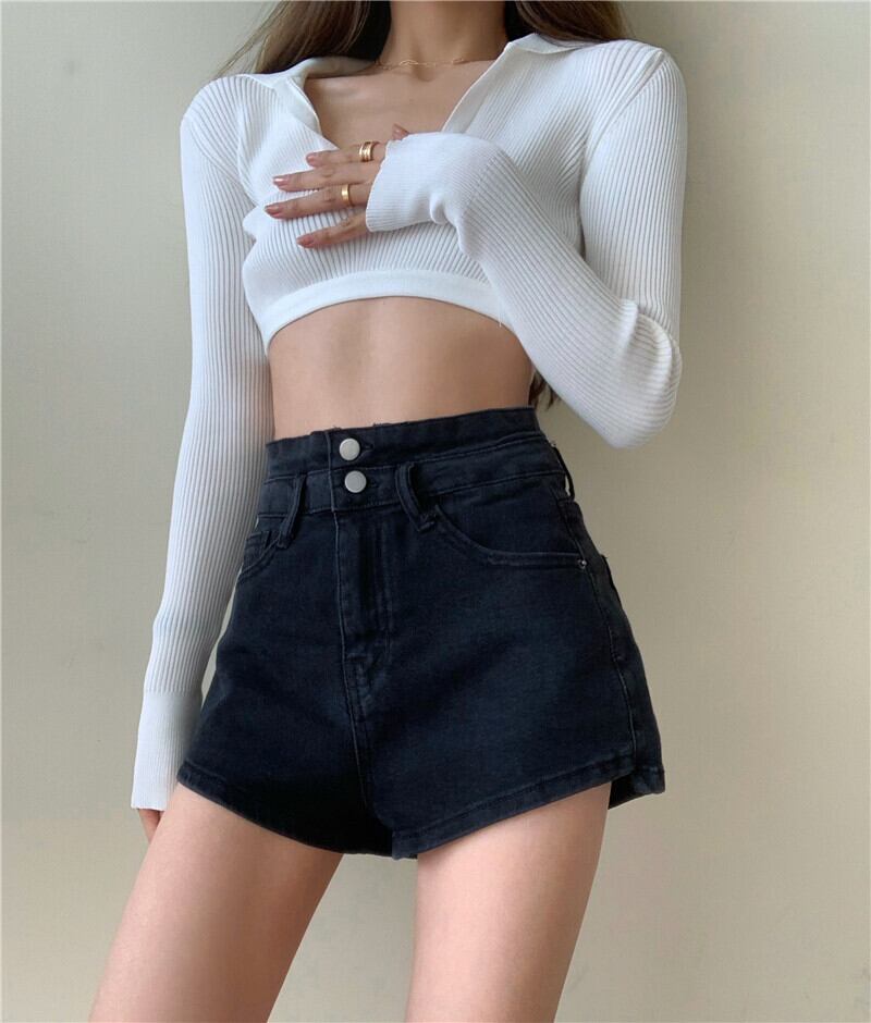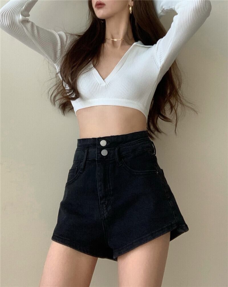 パンツ レディースブラック薄手ハイウェストジーンズ ショーツ ロング ブルマー YY-ファッション16242672072