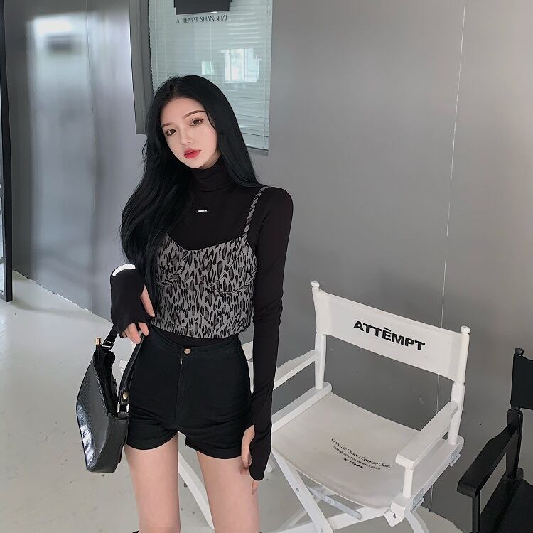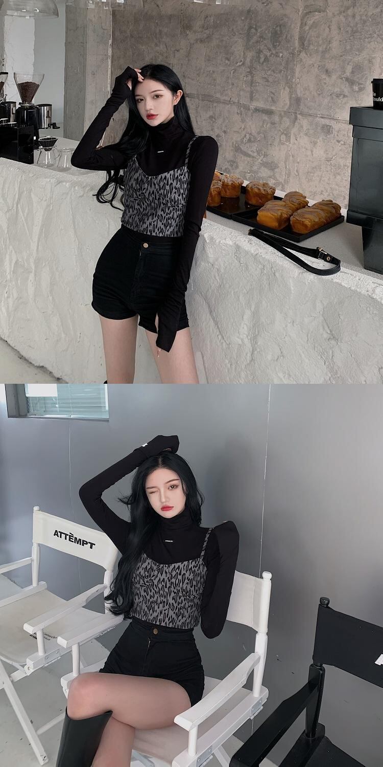 オータムウィンターショートスリムレオパードプリント柄ノースリーブグレートップス 秋物 冬物 YY-ファッション40661596090