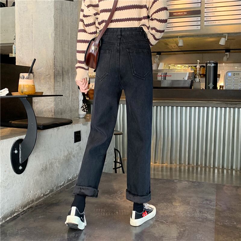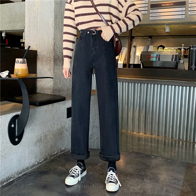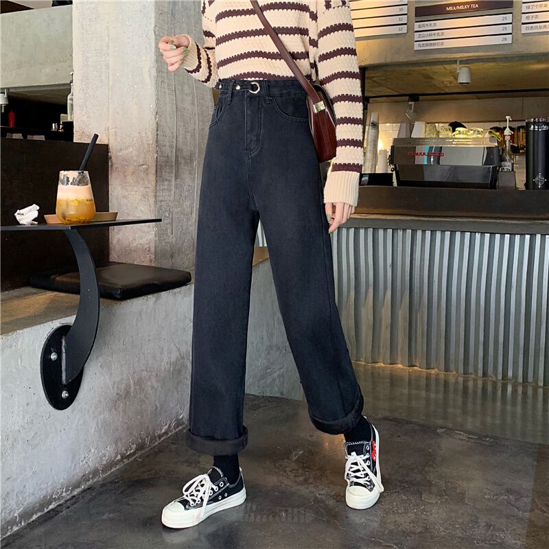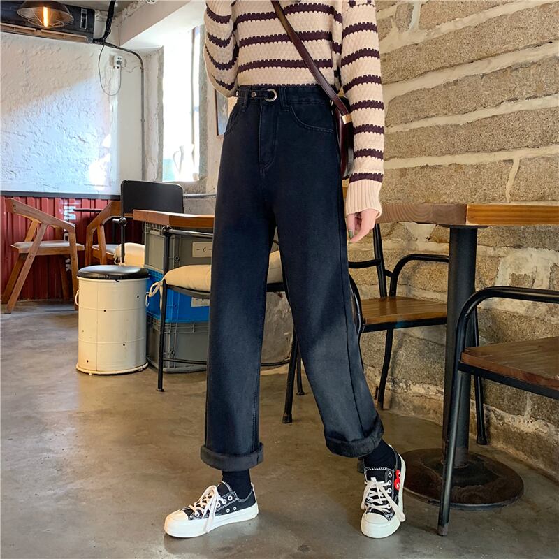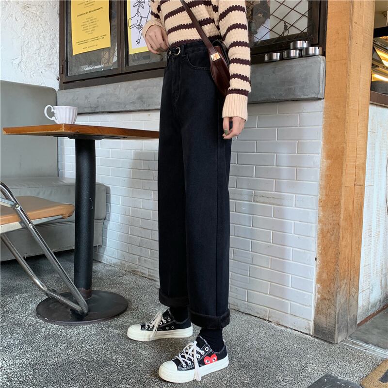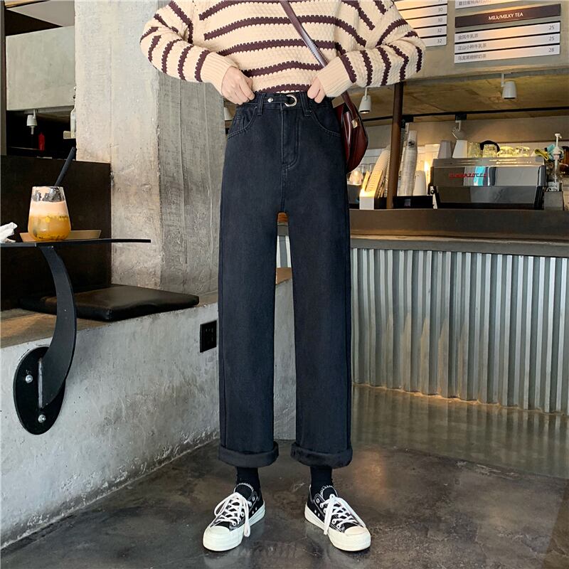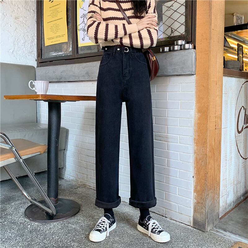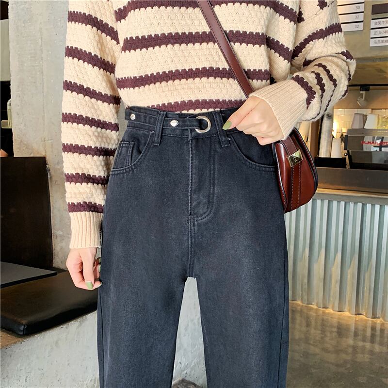 ジーンズ スプリングオータムハイウェストベルベットブラックロングパンツ 春物 秋物 YY-ファッション68772089047