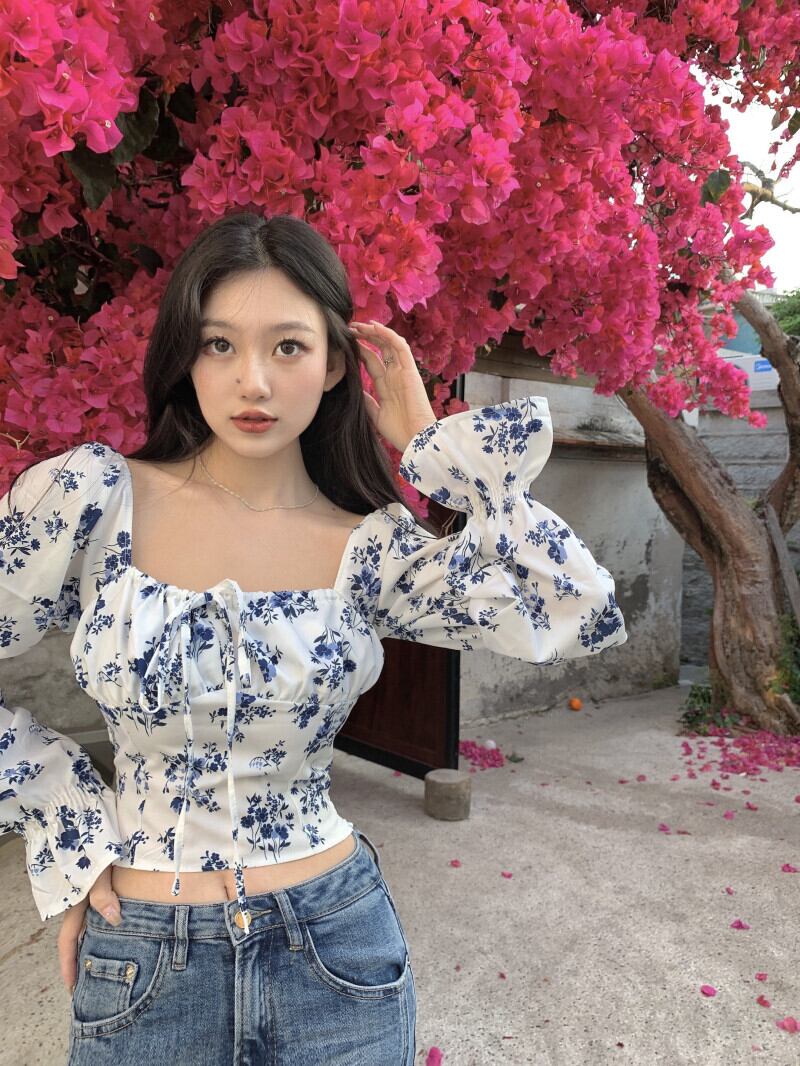 フローラルシャツ スリーブサマーショートクロップド ロング 夏物 花柄 スクウェア YY-ファッション76781337445