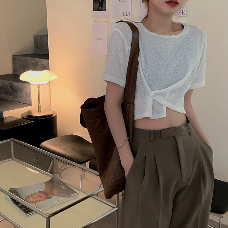 ショートTシャツ サマー薄手ルーズホワイトトップス 夏物 YY-ファッション57119331665
