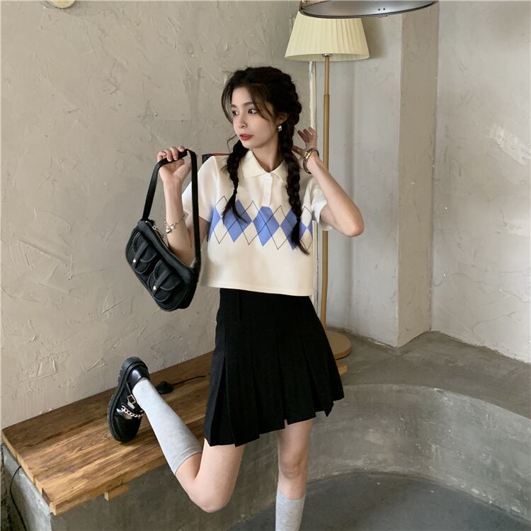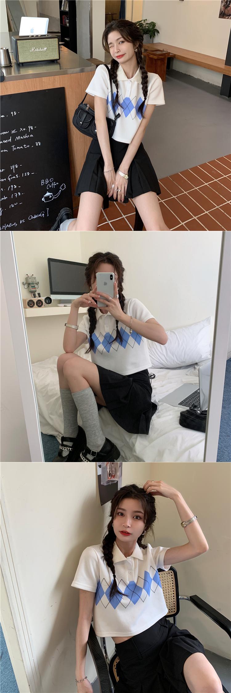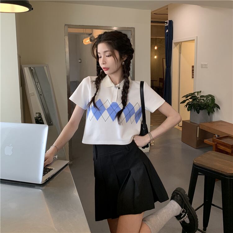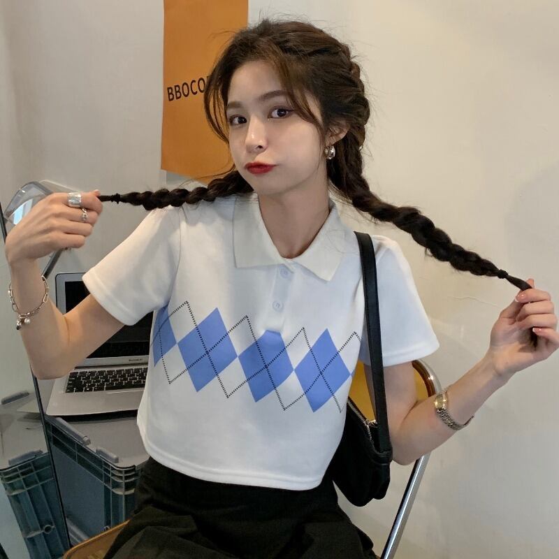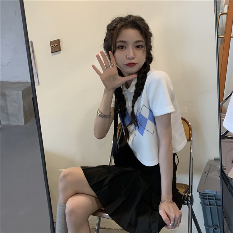 ホワイトカラーショートTシャツ サマーハイウェストトップス 夏物 YY-ファッション60573093999
