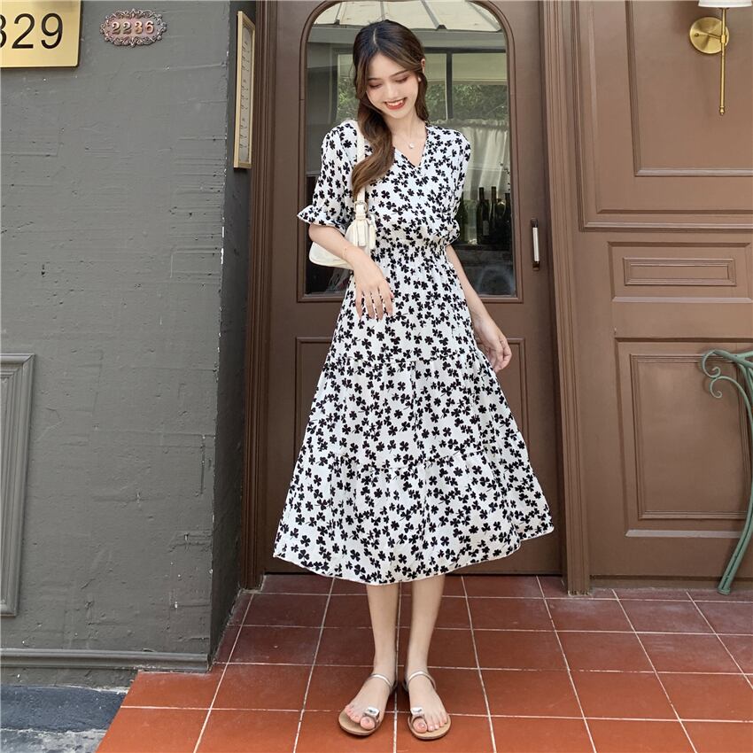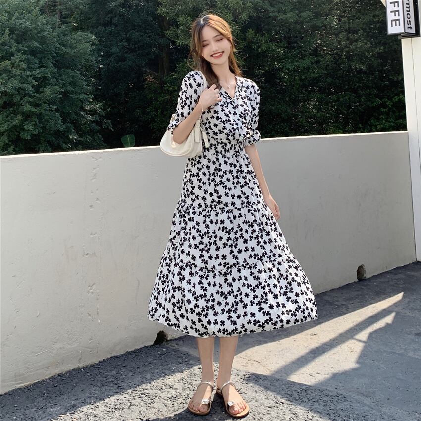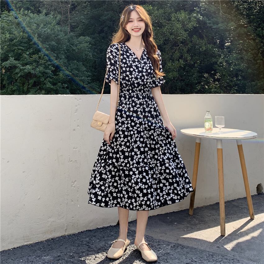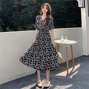 スカート サマードレス フローラルウェストスタンダード レトロ 夏物 花柄 YY-ファッション31840464522
