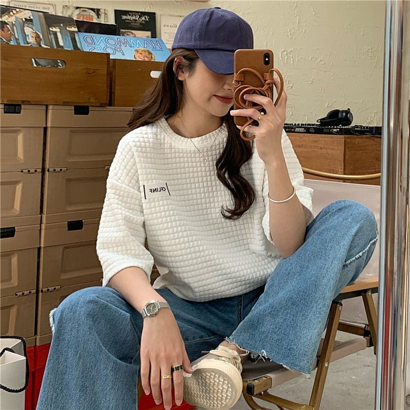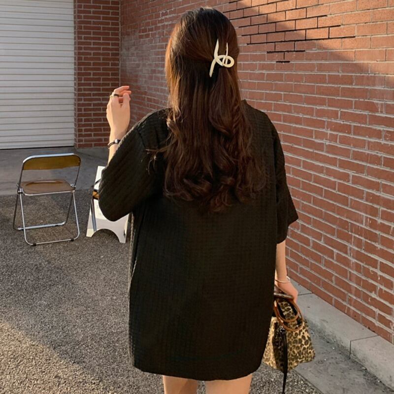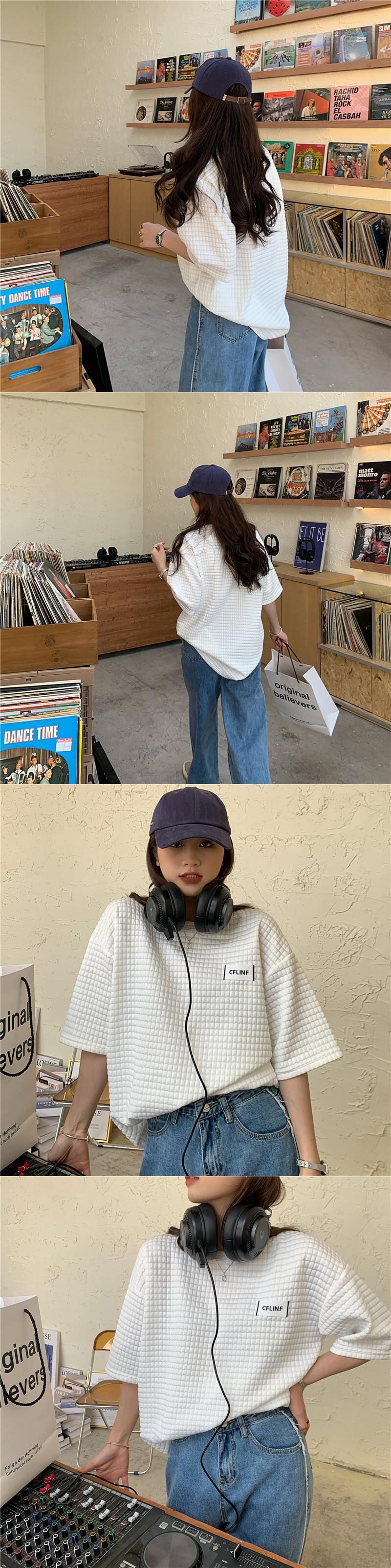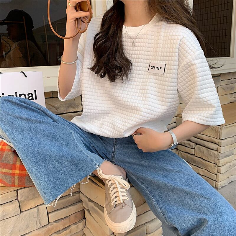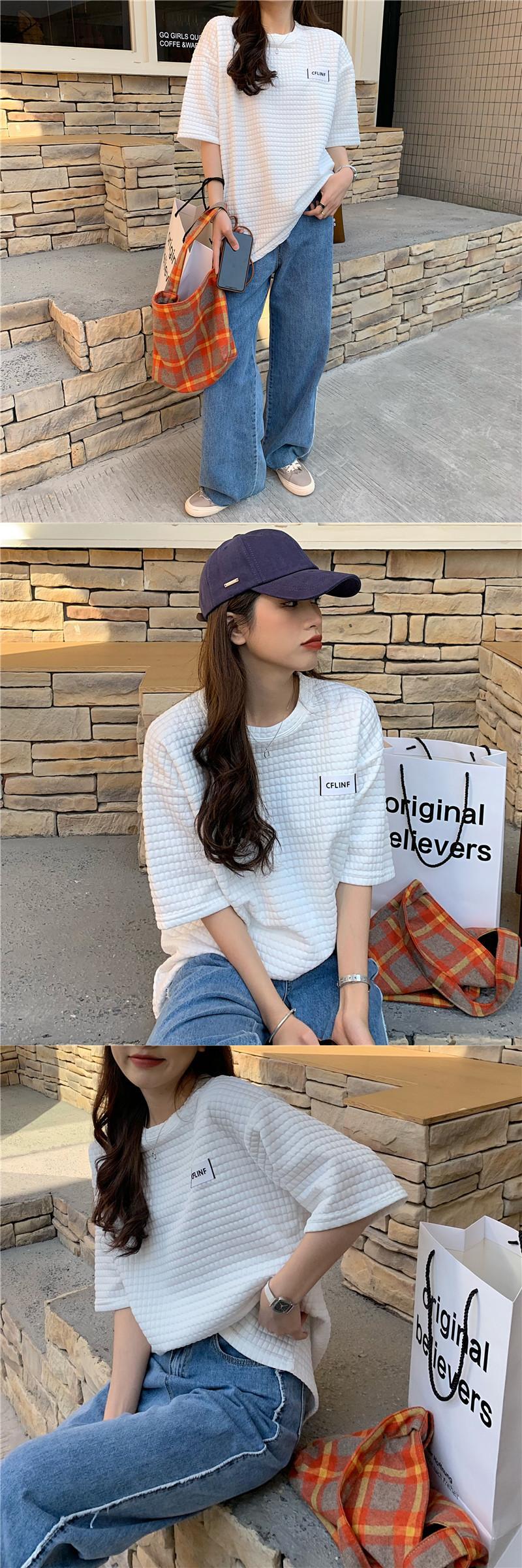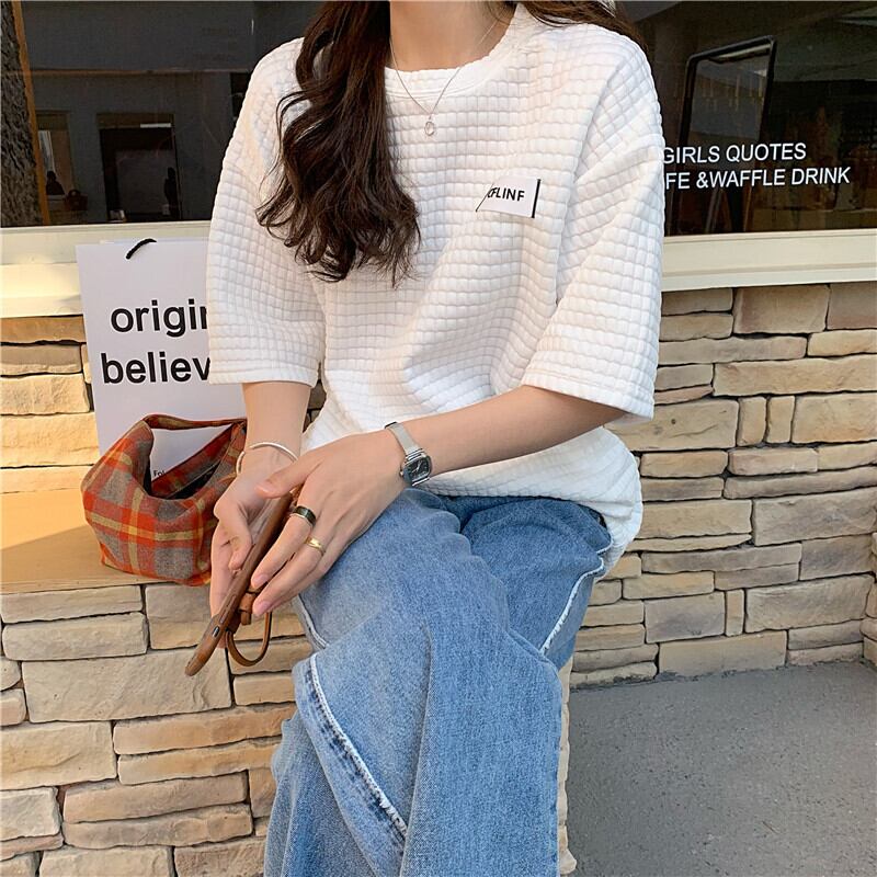 ホワイト格子柄ルーズTシャツ サマースタイルカジュアルトップス 夏物 YY-ファッション63528276713