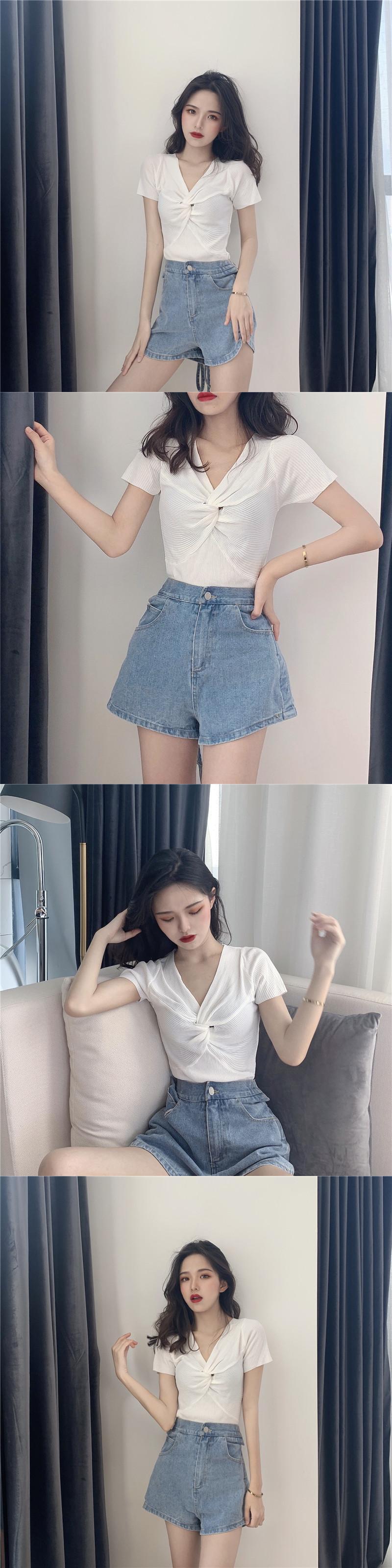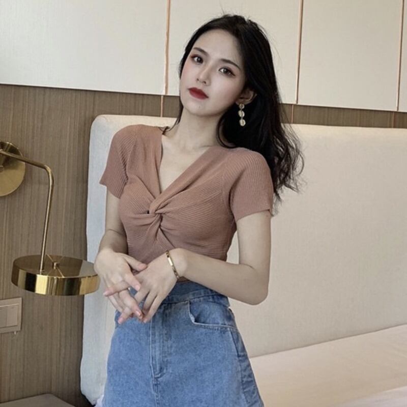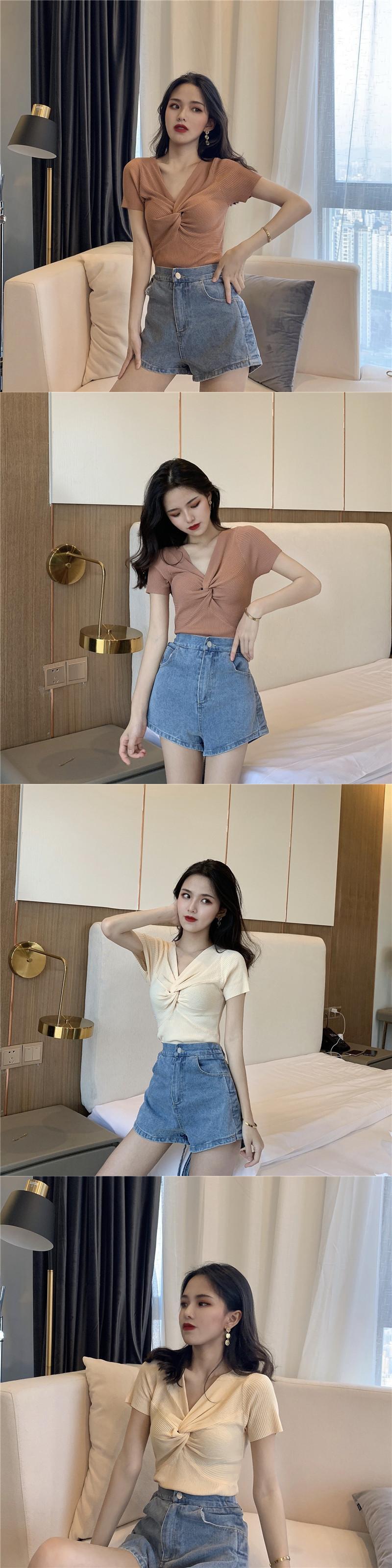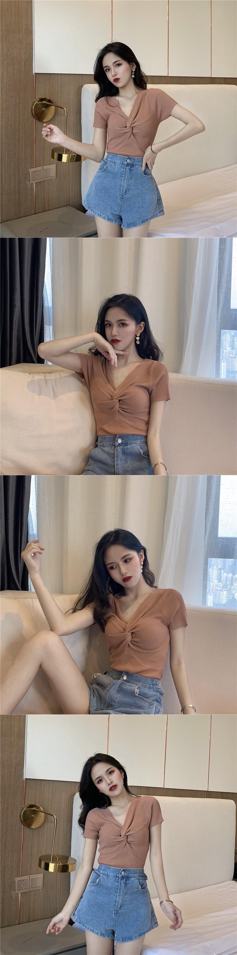 スタンダード薄手ソリッド カラーVネックセーター スプリングスタイルトップス レトロ 春物 ソリッドカラー YY-ファッション44708107327