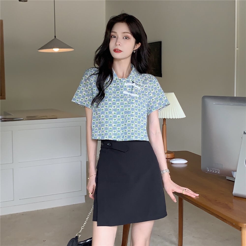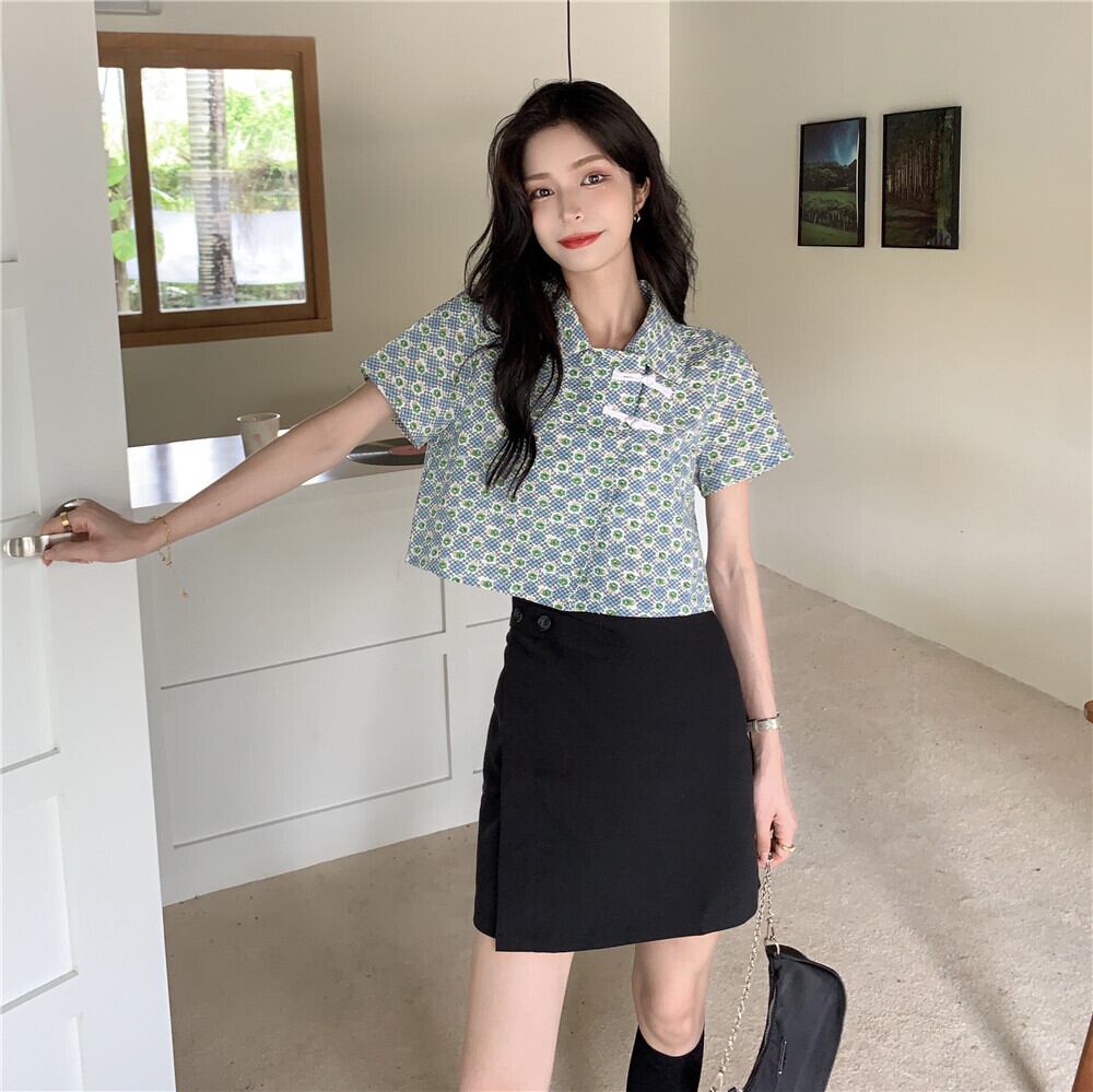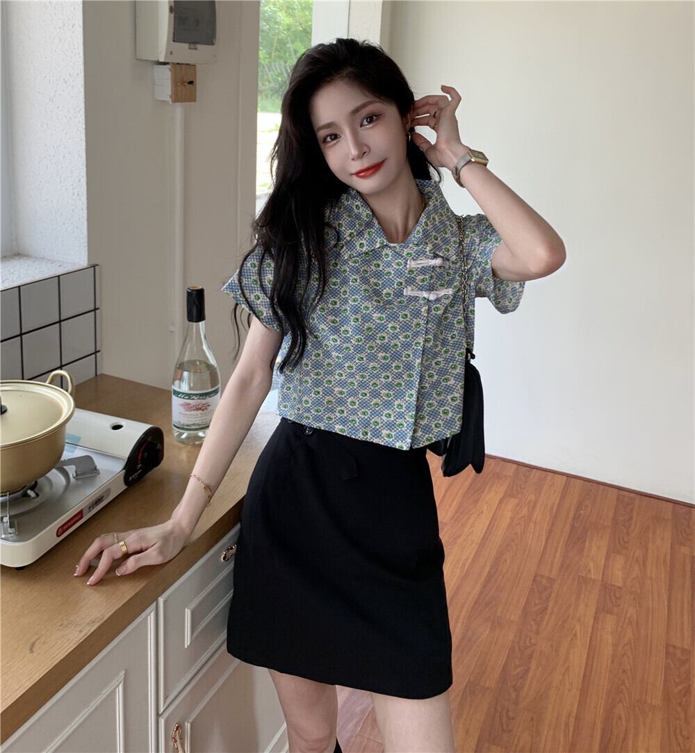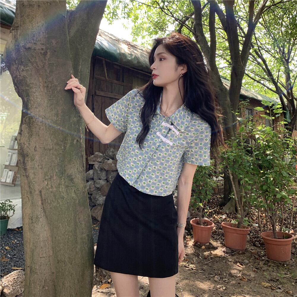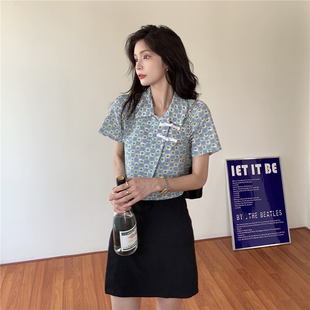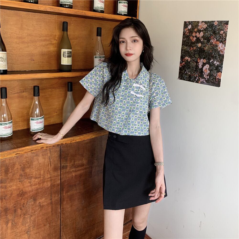 ショートフローラルシャツ サマースタンダードトップス レトロ 夏物 花柄 YY-ファッション18190845720