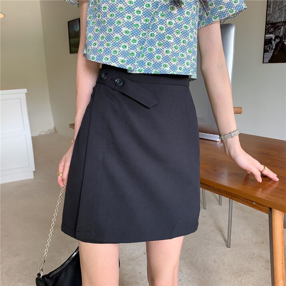 色:ボタン付きトップ,黒スカート