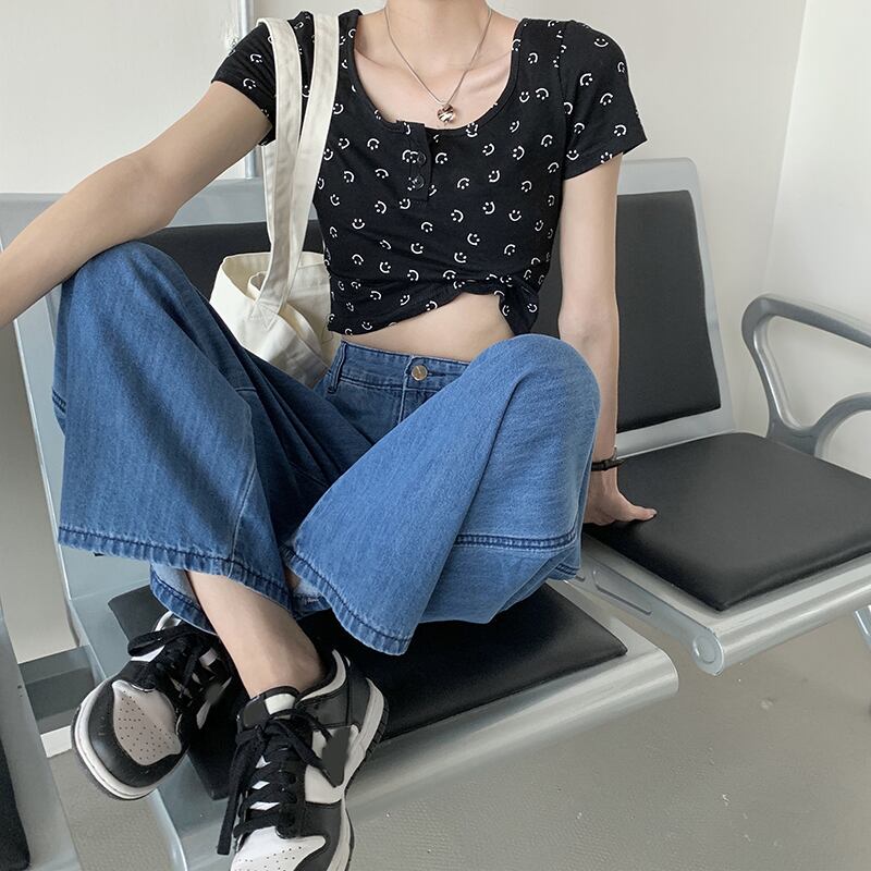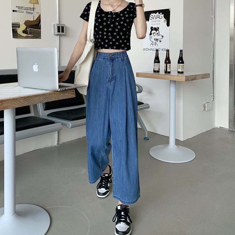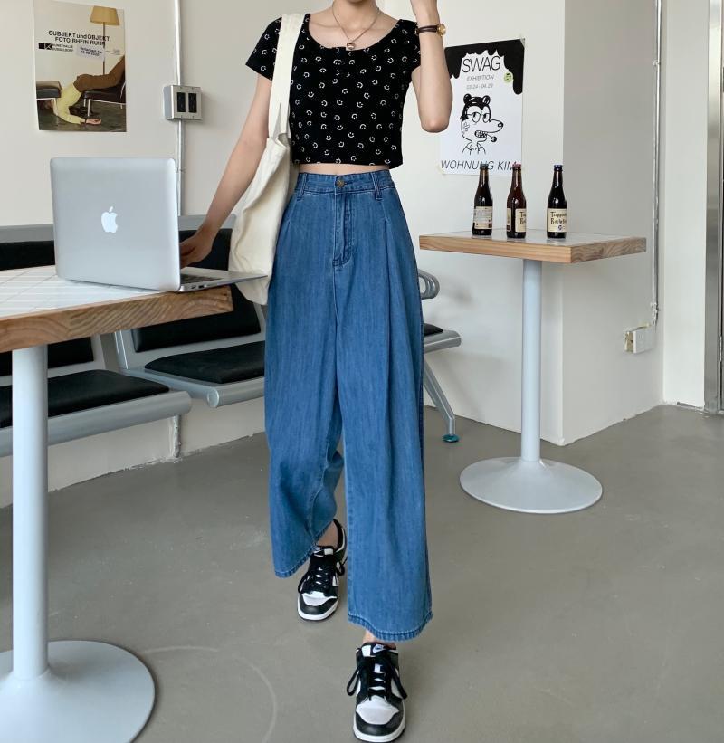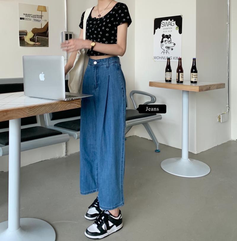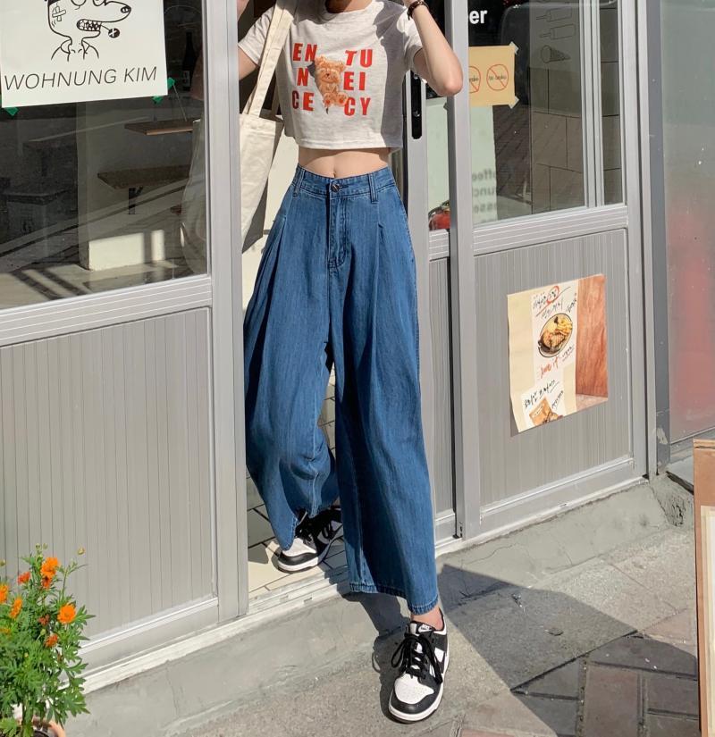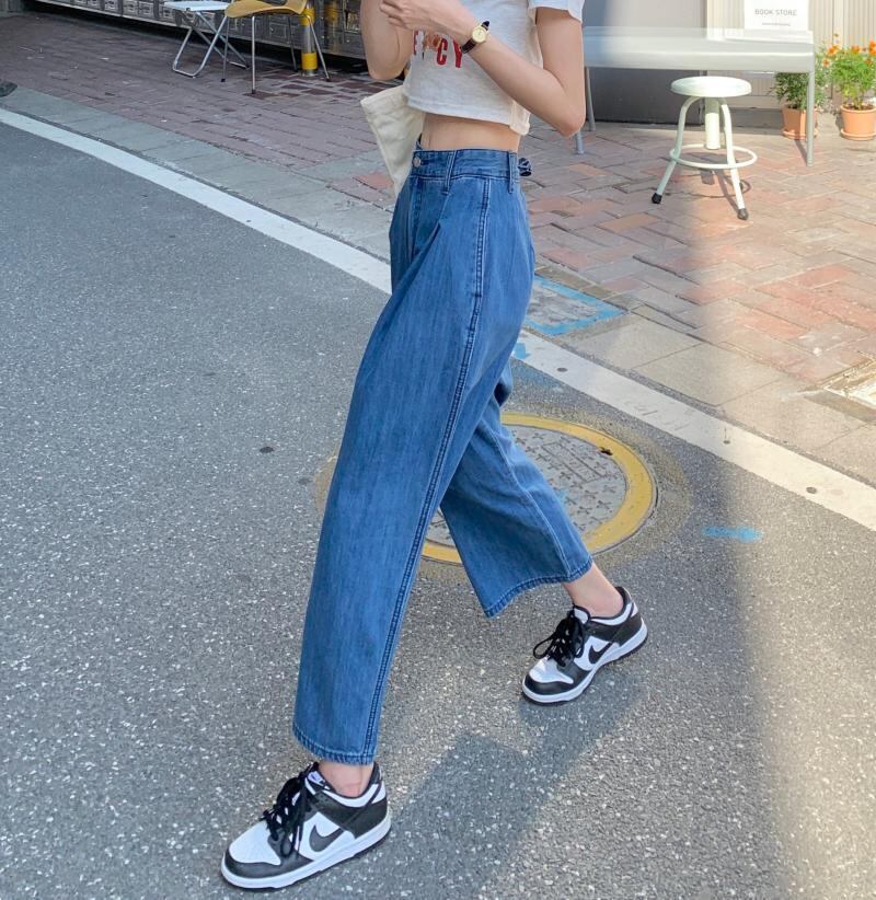 スタンダードハイウェストウェストスリムワイドレッグパンツ サマールーズジーンズ レトロ 夏物 ワイドパンツ YY-ファッション17248675212