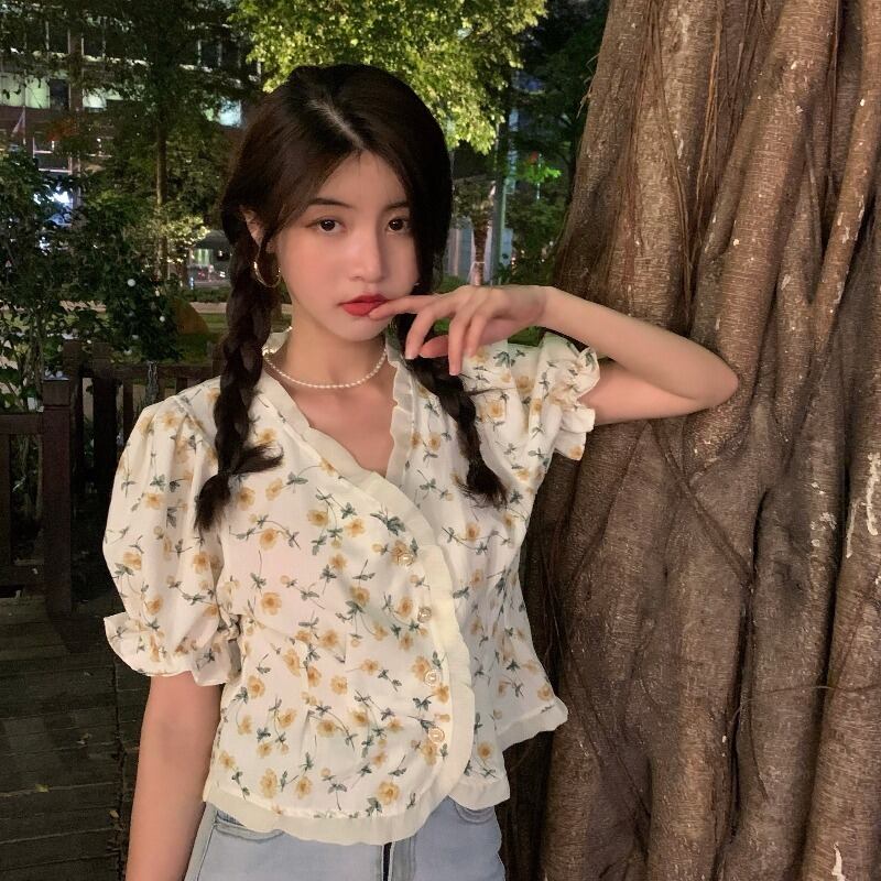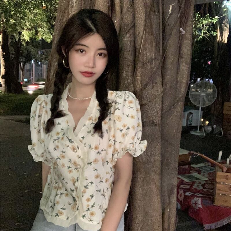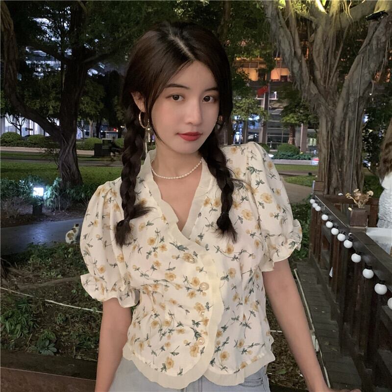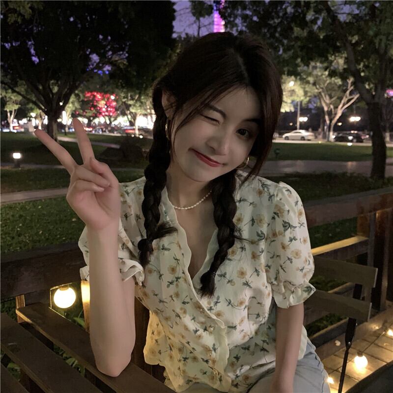 サマースタイルフローラルブラウス シャツ Vネックカーディガンレディース 夏物 花柄 YY-ファッション84635446285