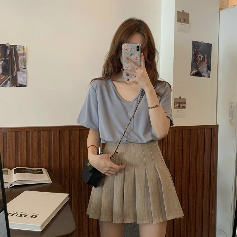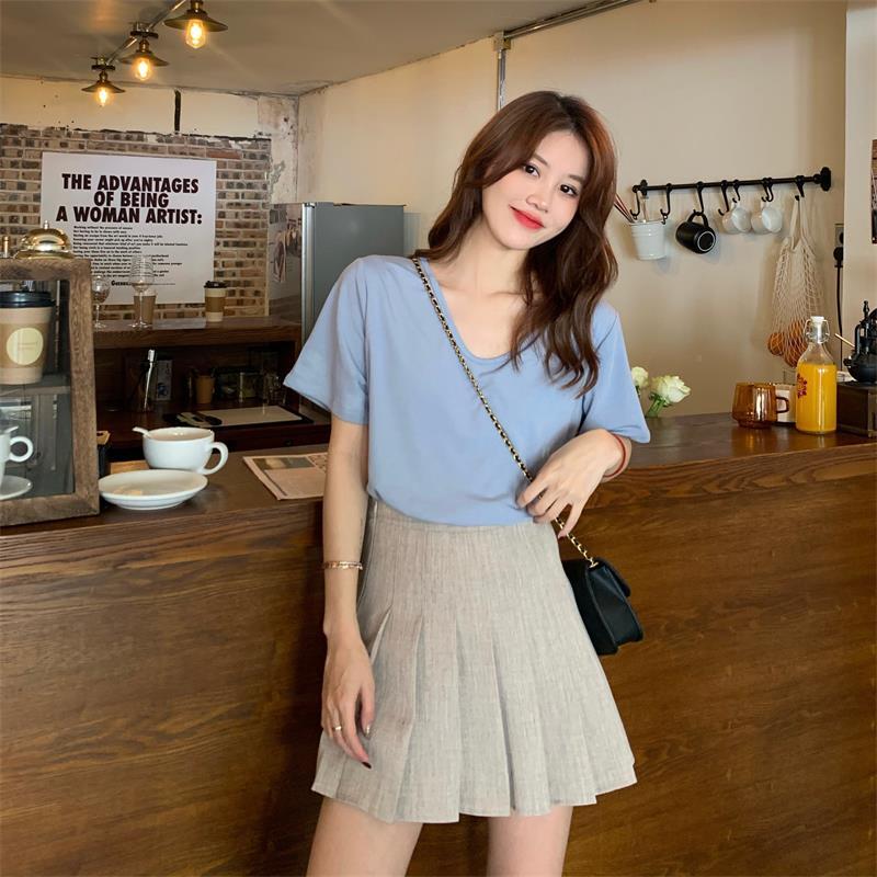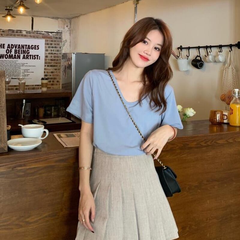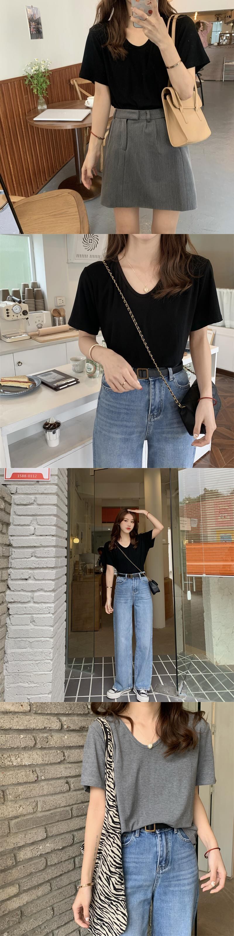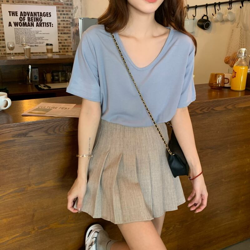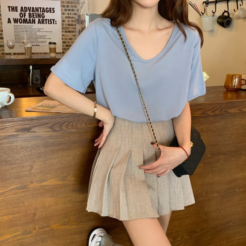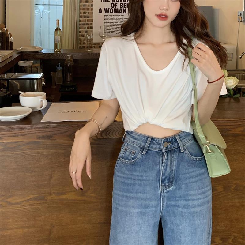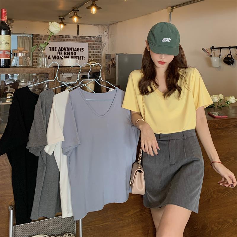 ホワイトTシャツ 薄手サマーVネックルーズトップス 夏物 YY-ファッション20283710657