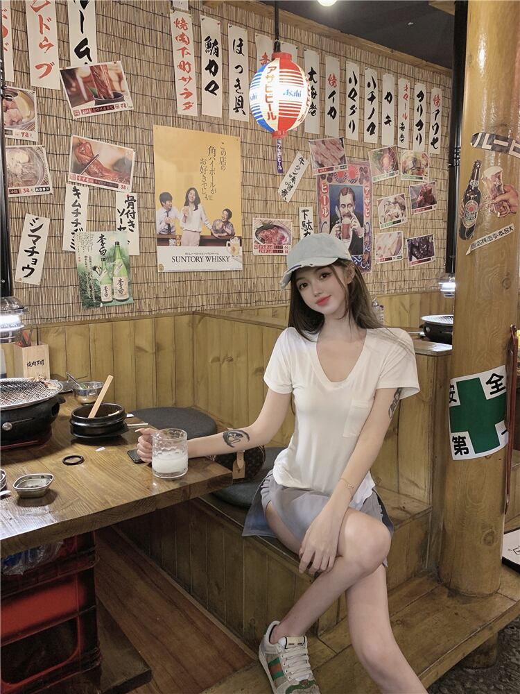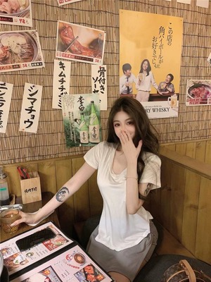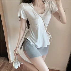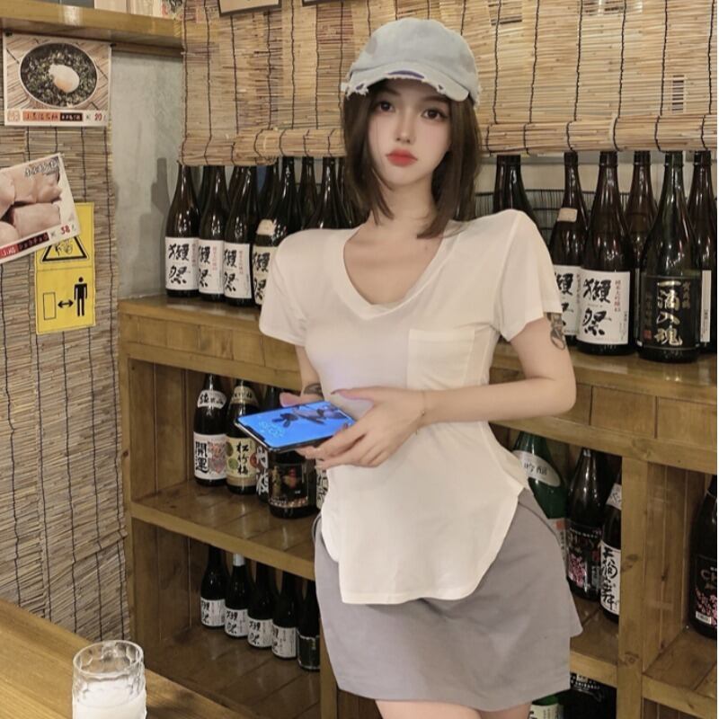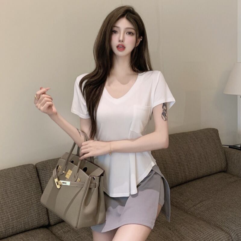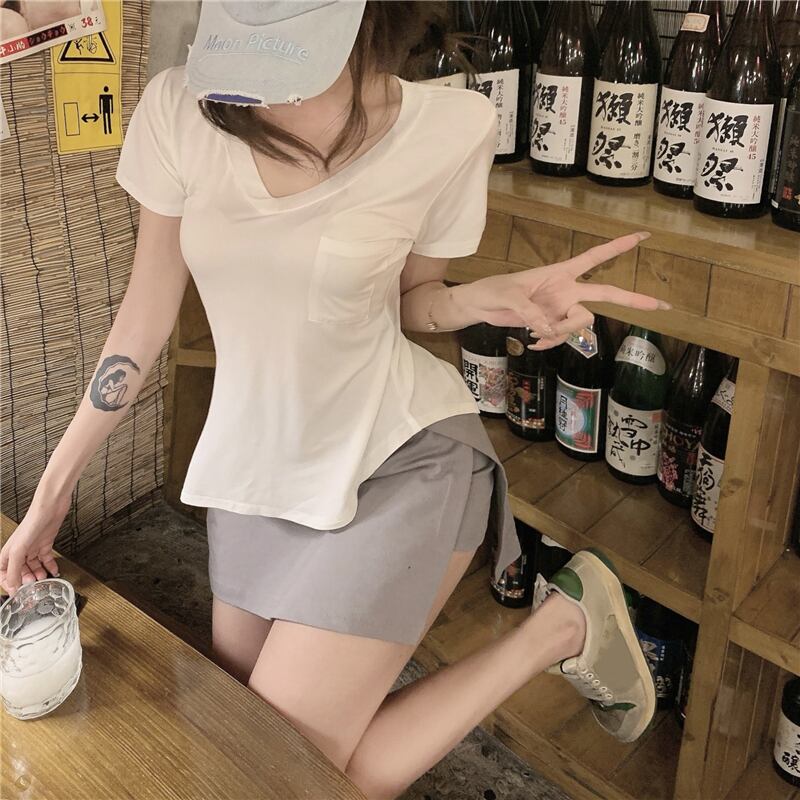 スリムホワイトトップス サマーVネック薄手Tシャツ 夏物 YY-ファッション58831082186