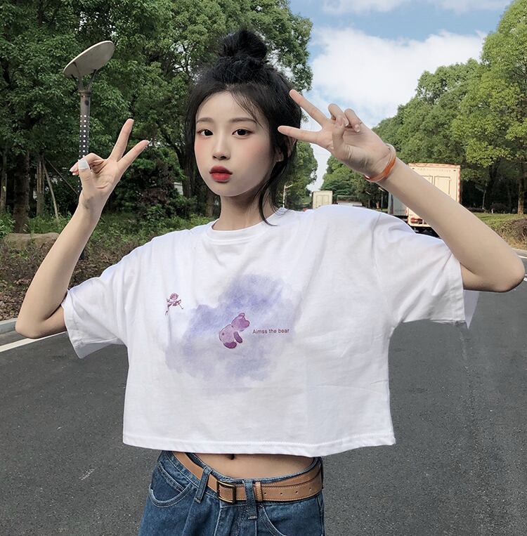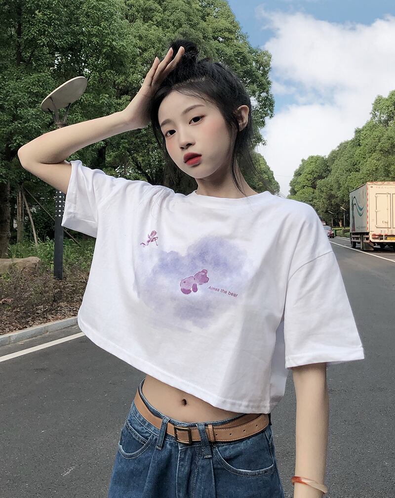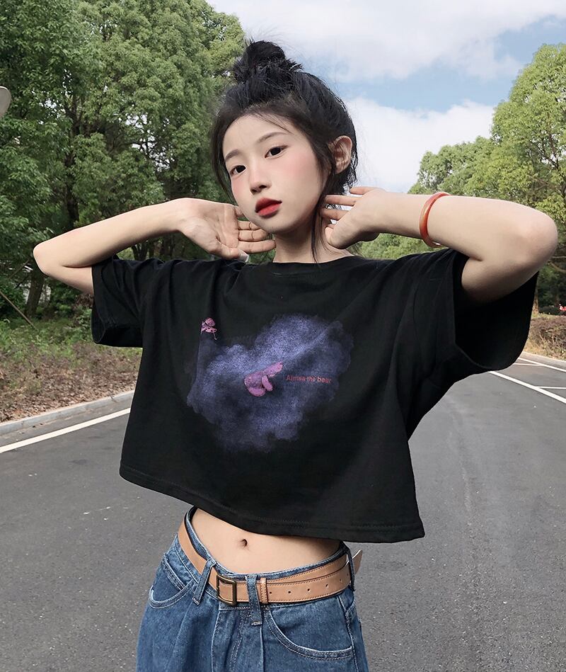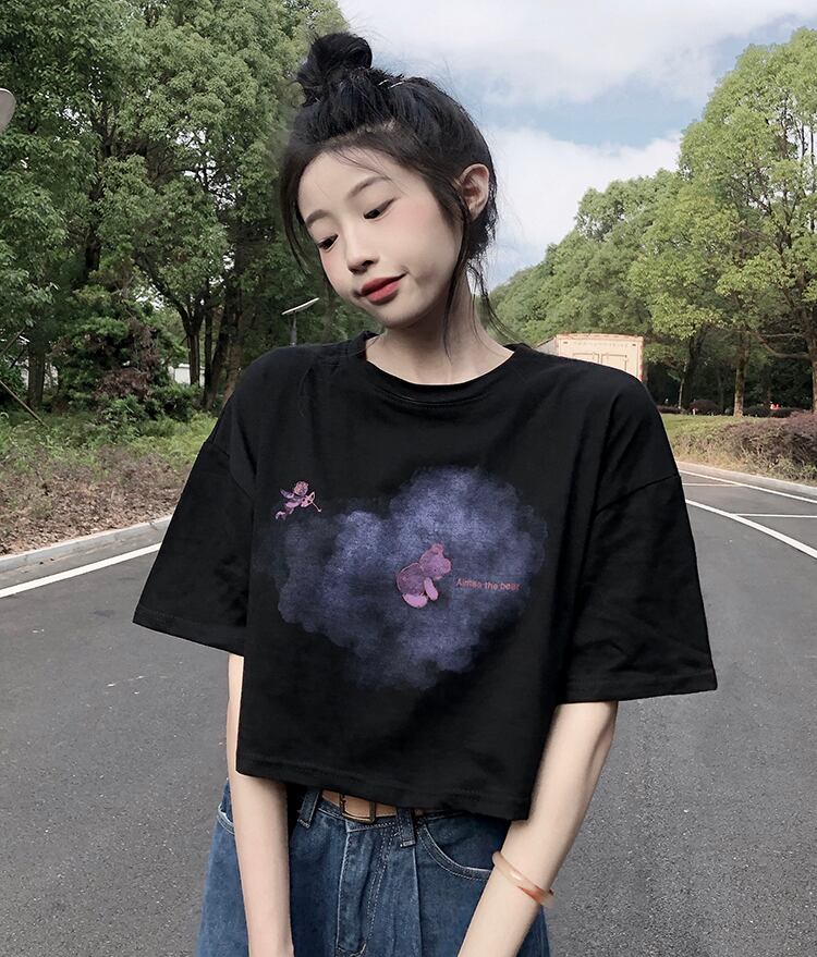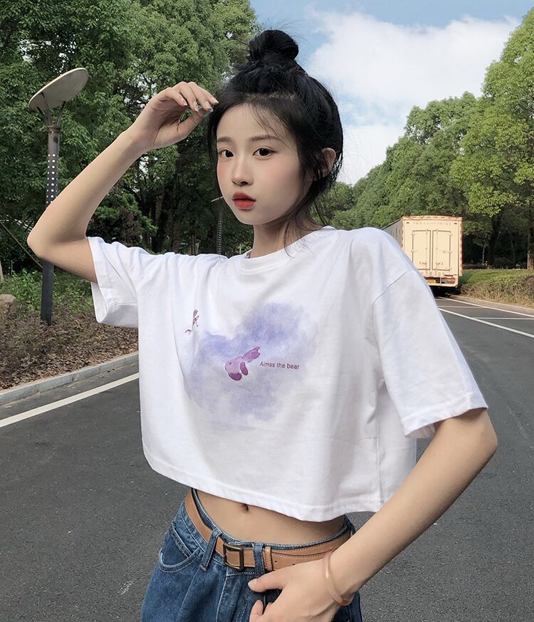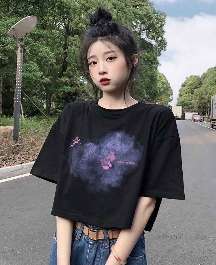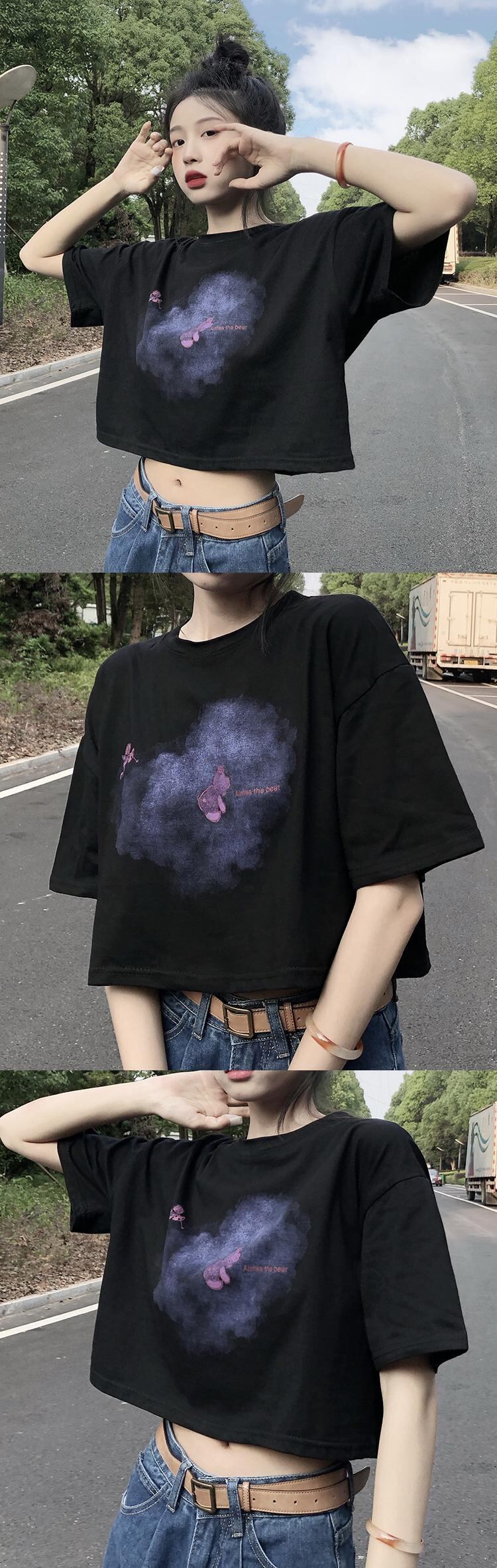 Tシャツ サマースタンダードプリントルーズクロップトップ トップス レトロ 大人ガーリー スウィート キュート カジュアル 夏物 YY-ファッション69952729445