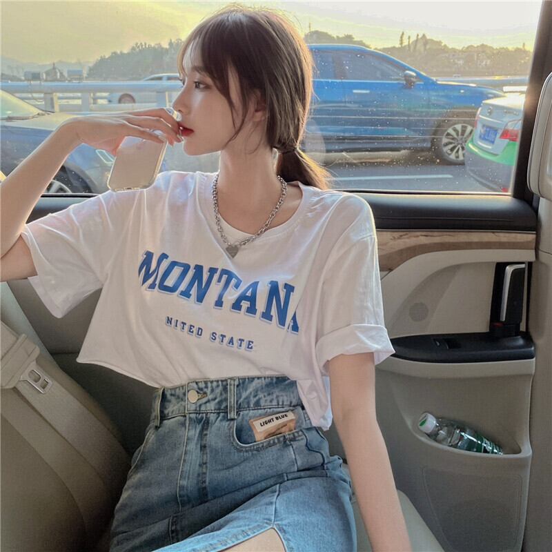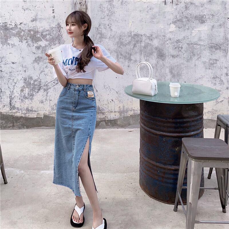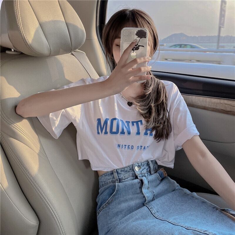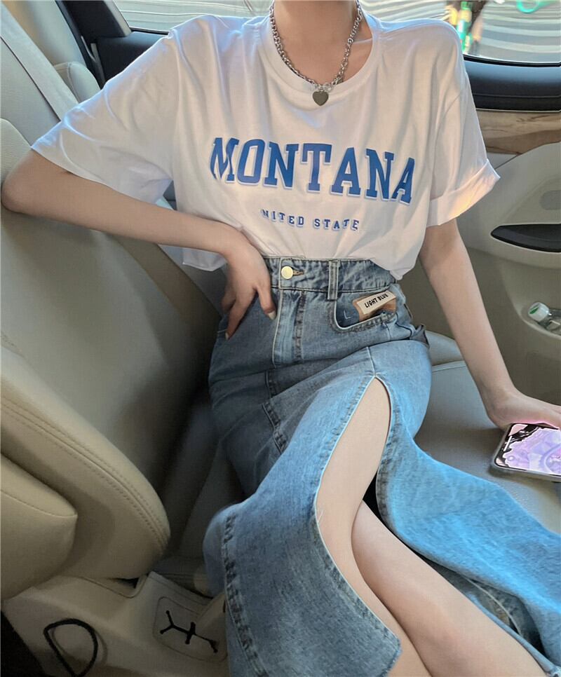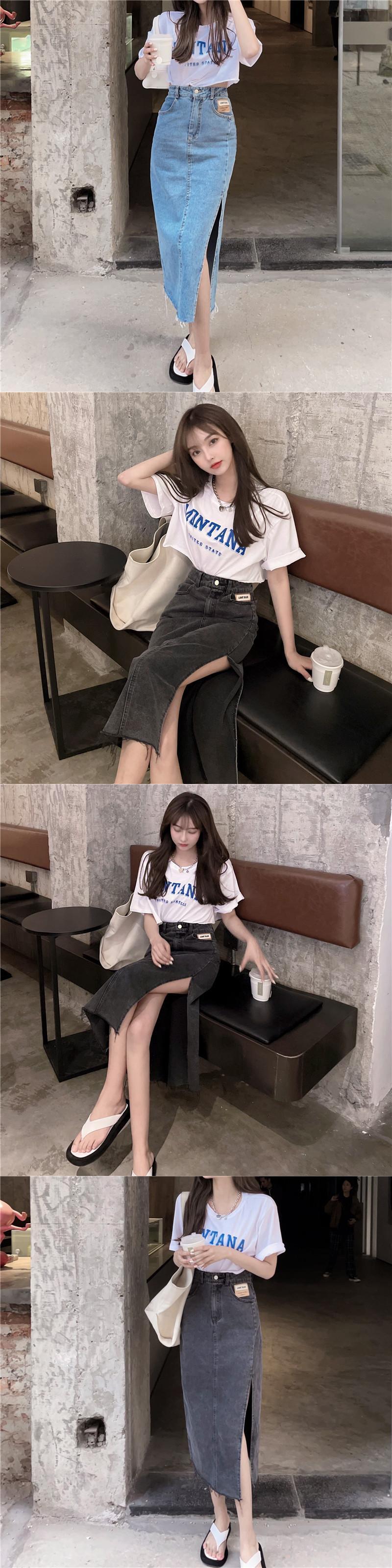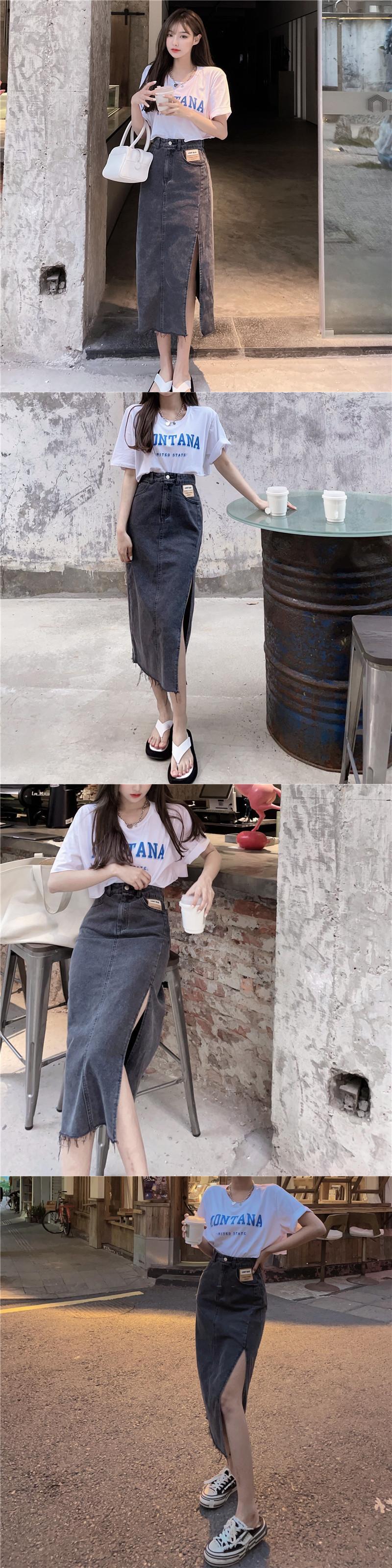 色:レター半袖,デニムブルースカート,デニムブラックスカート