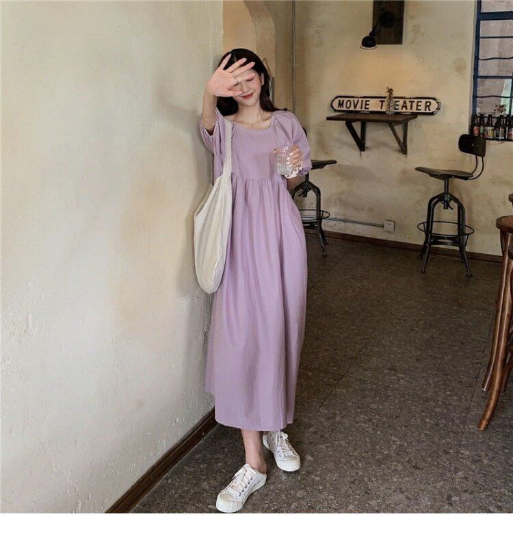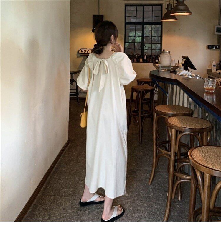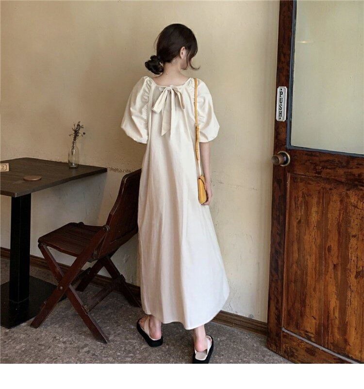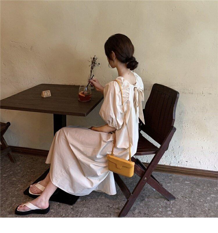 スリーブドレス サマースタンダード薄手ロングスカート レトロ 夏物 スクウェア YY-ファッション80277143637