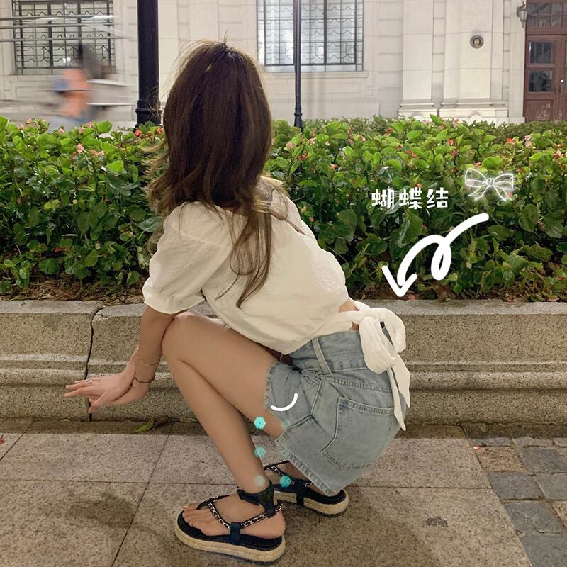スタイルシャツ ソリッド カラートップス ショートリボンストラップレスレディースサマー 夏物 ソリッドカラー YY-ファッション79705615413