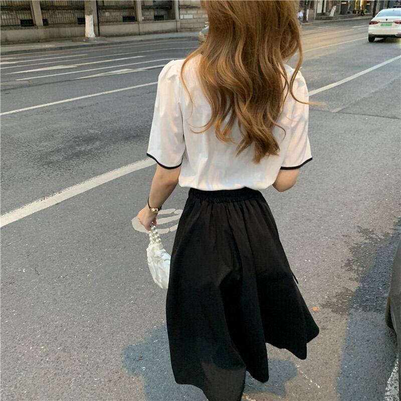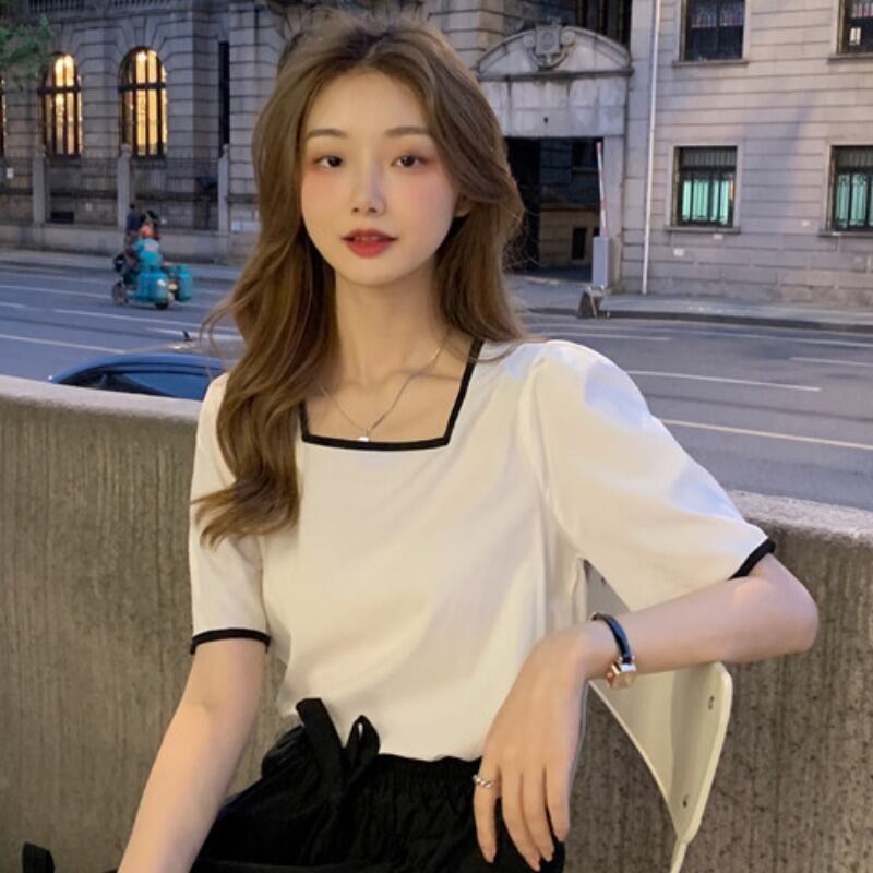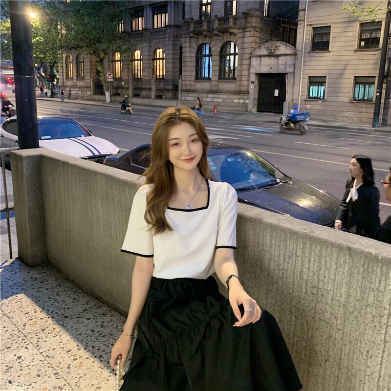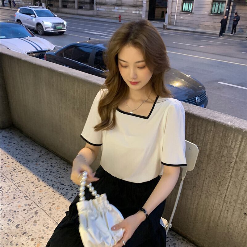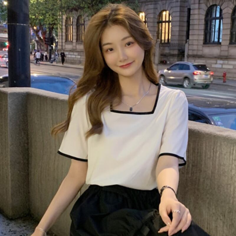 カラーホワイトショートTシャツ サマースリムトップス 夏物 スクウェア YY-ファッション91068957975
