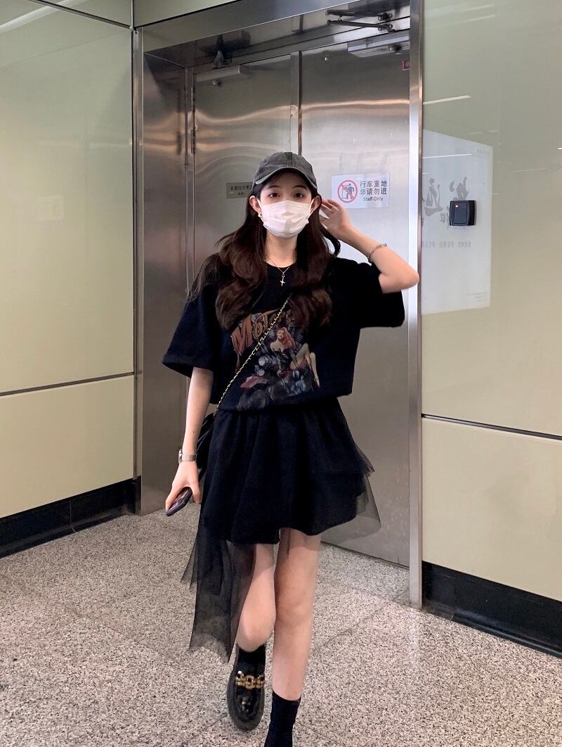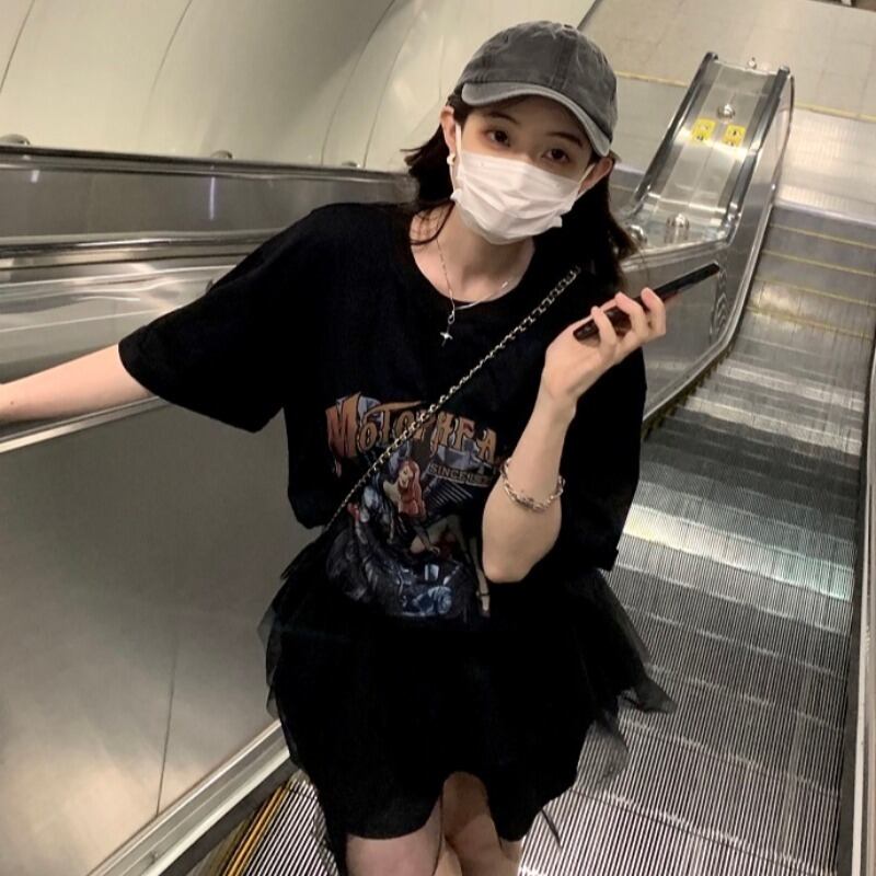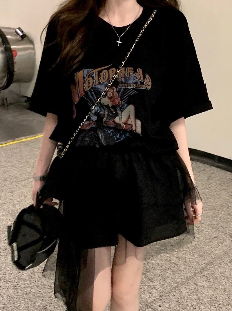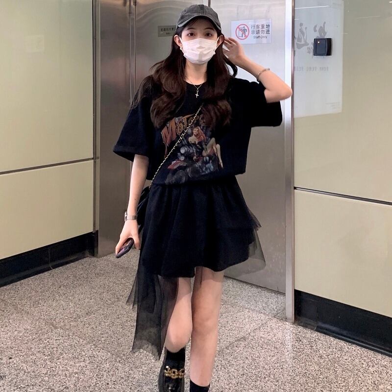 サマースタイルプリントTシャツ ハイウェストウェストメッシュスカート レディース 夏物 YY-ファッション59531447224