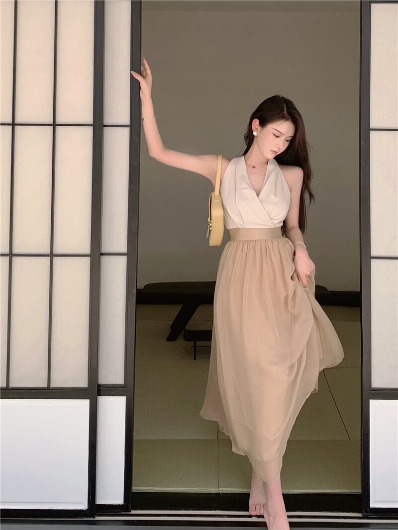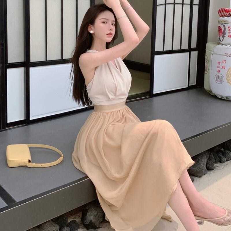 色:0126ブラックビッグスイングスカート,0126シャンパンビッグスカート,01262ブラックホルターネックベスト,01262アプリコットホルターベスト