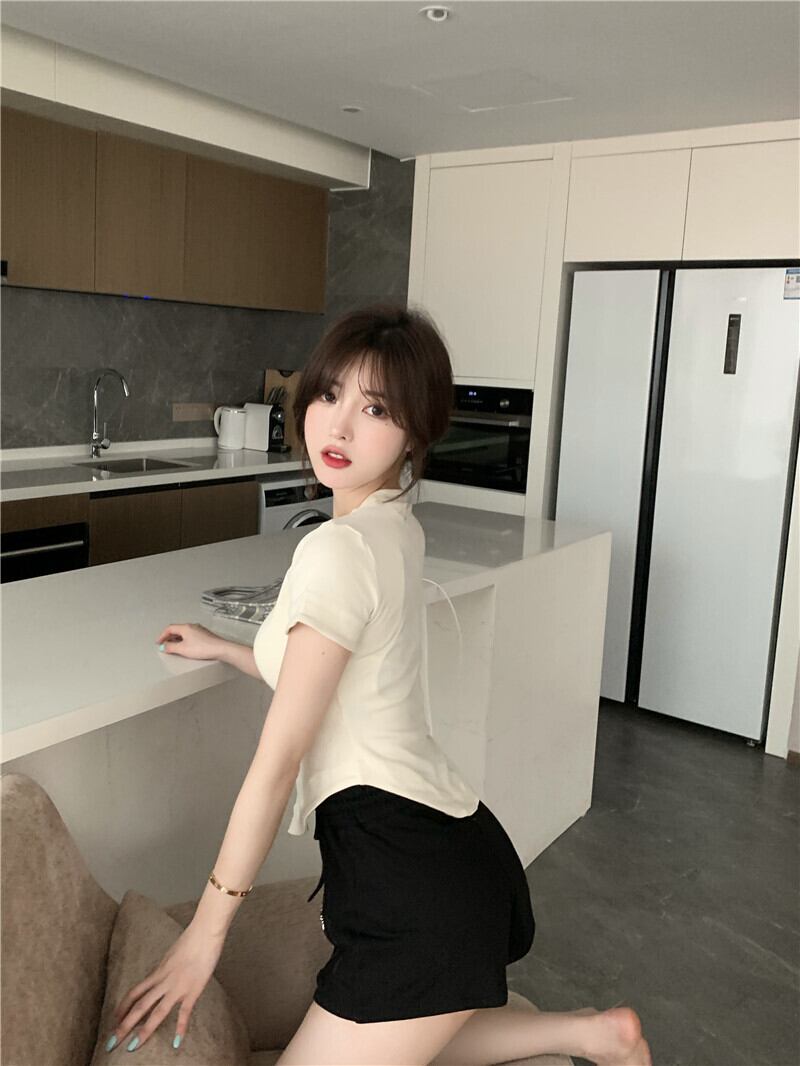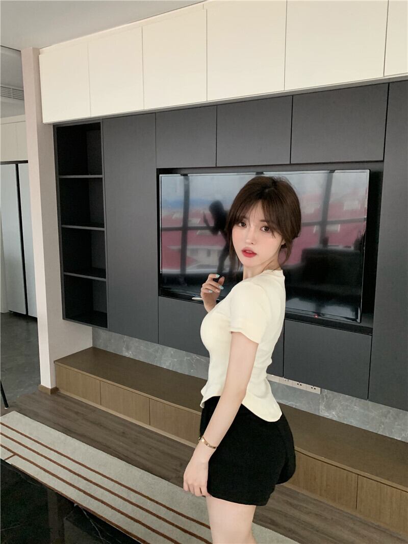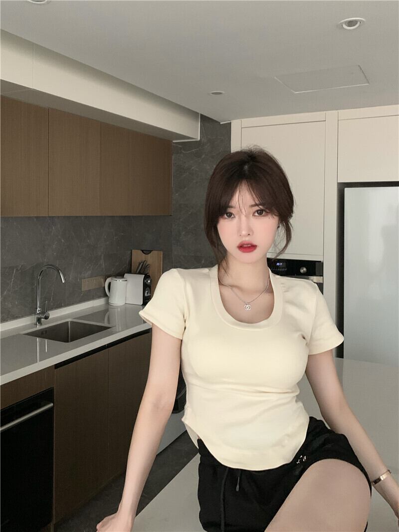 ショートTシャツ サマー薄手スタイルソリッド カラーラウンドネックスリムトップス 夏物 Oネック ピュア ソリッドカラー YY-ファッション36855956182