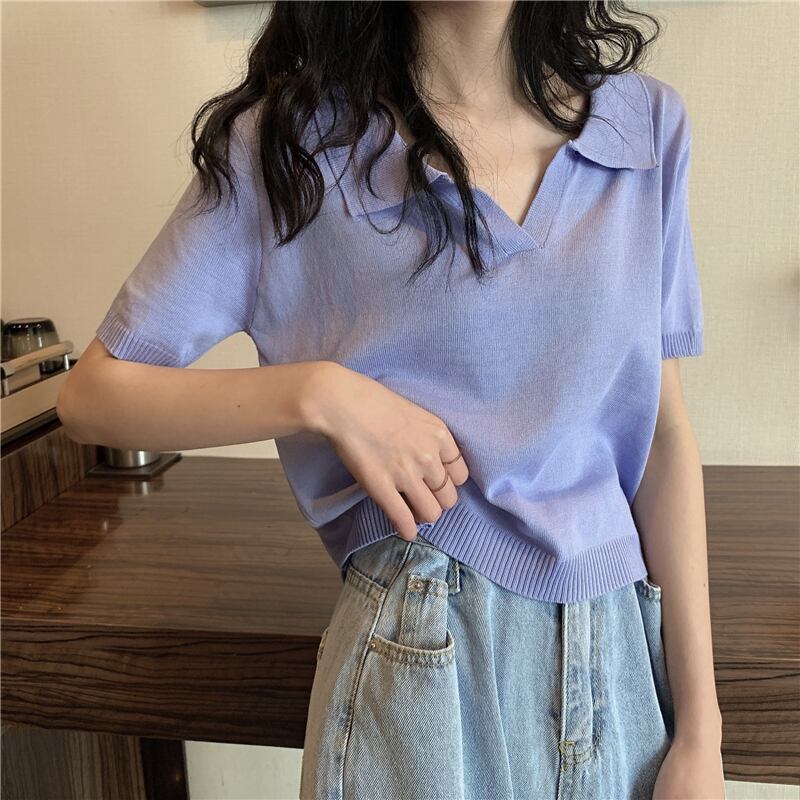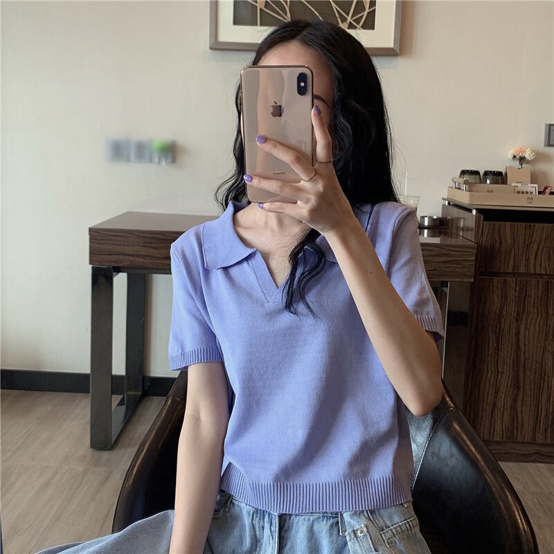 スプリングシャツ カジュアルニットセーター トップス ショートスリムTシャツ 春物 YY-ファッション83557915582