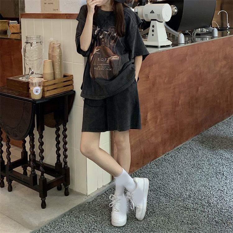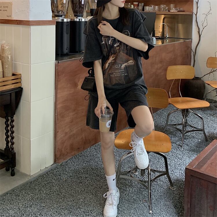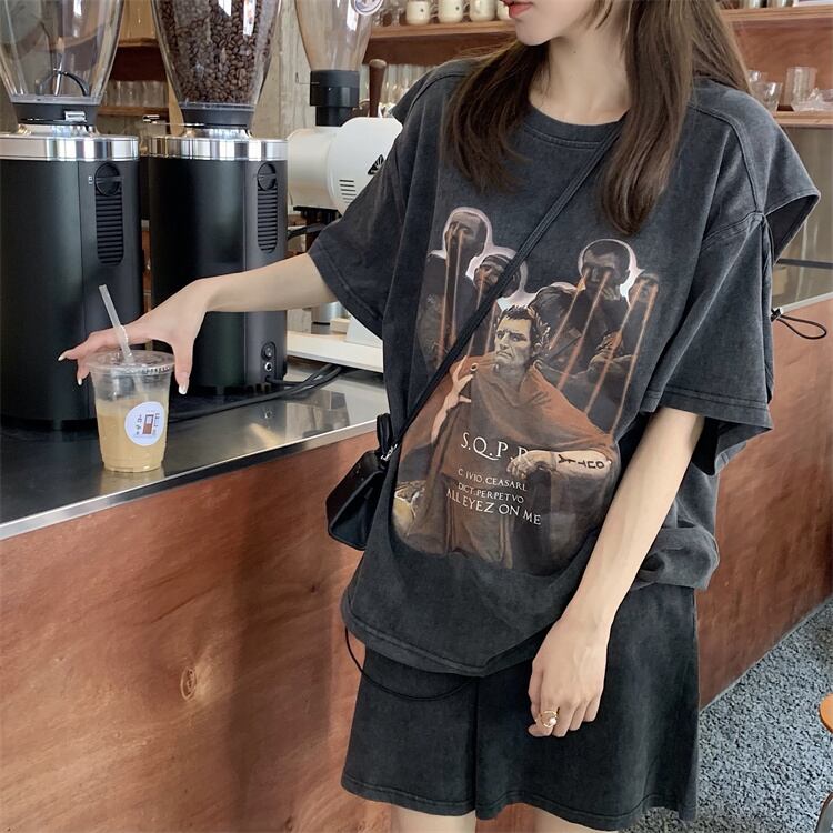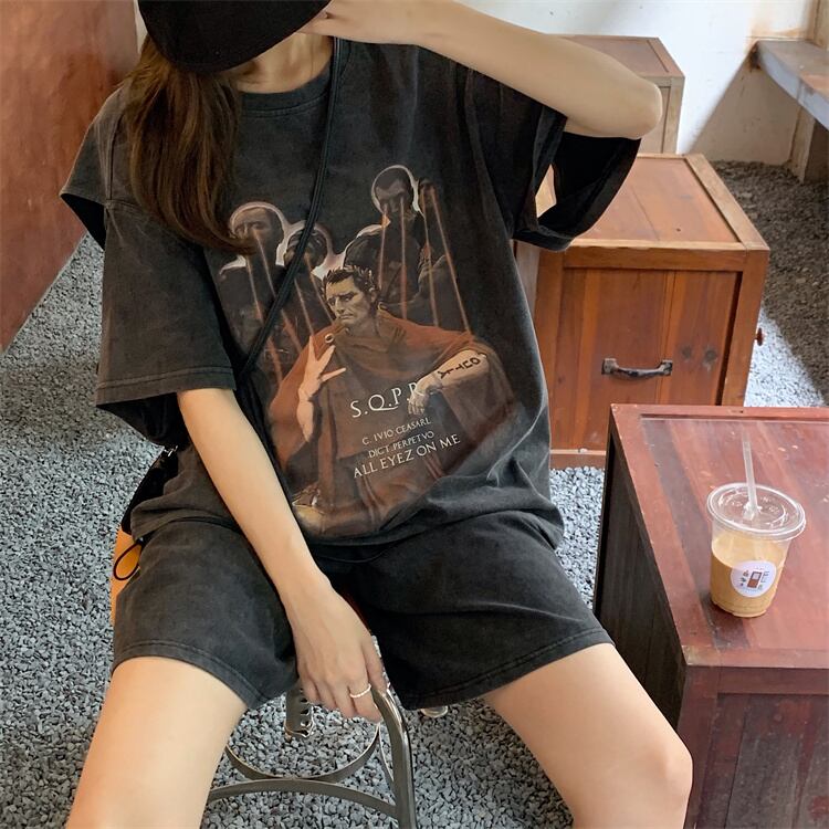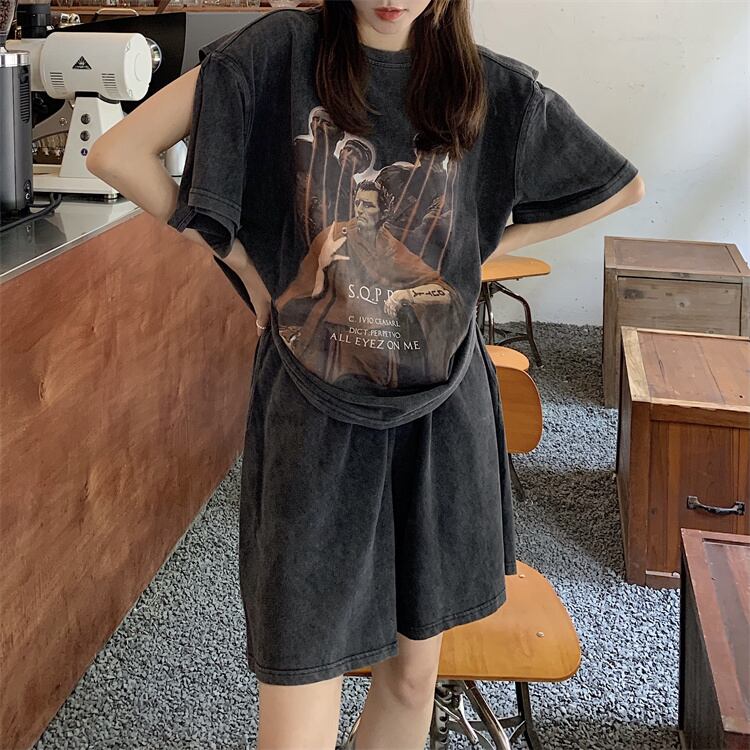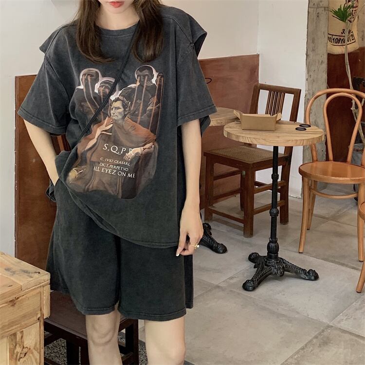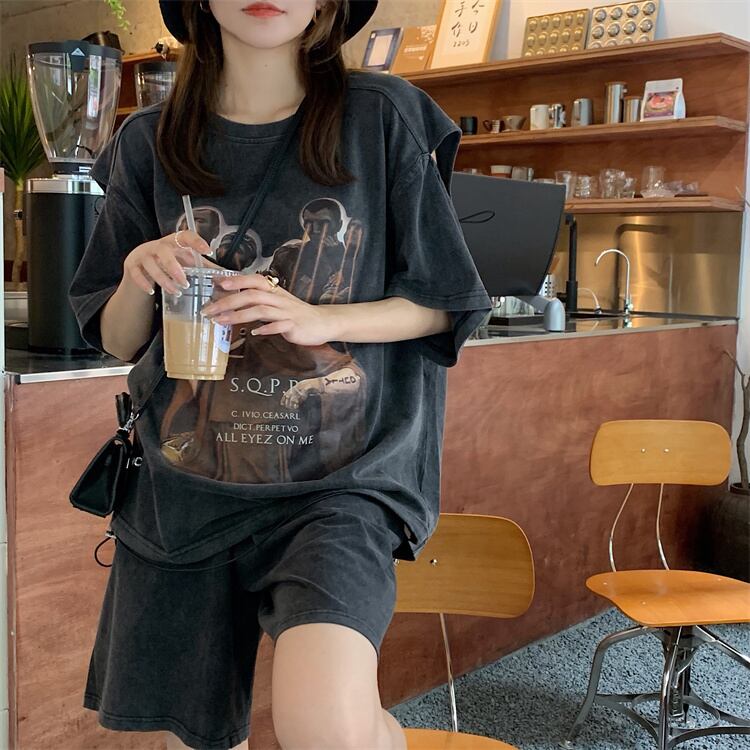 サマースタイルルーズプリントTシャツ ハイウェストカジュアルパンツ レディース 夏物 YY-ファッション62284142011