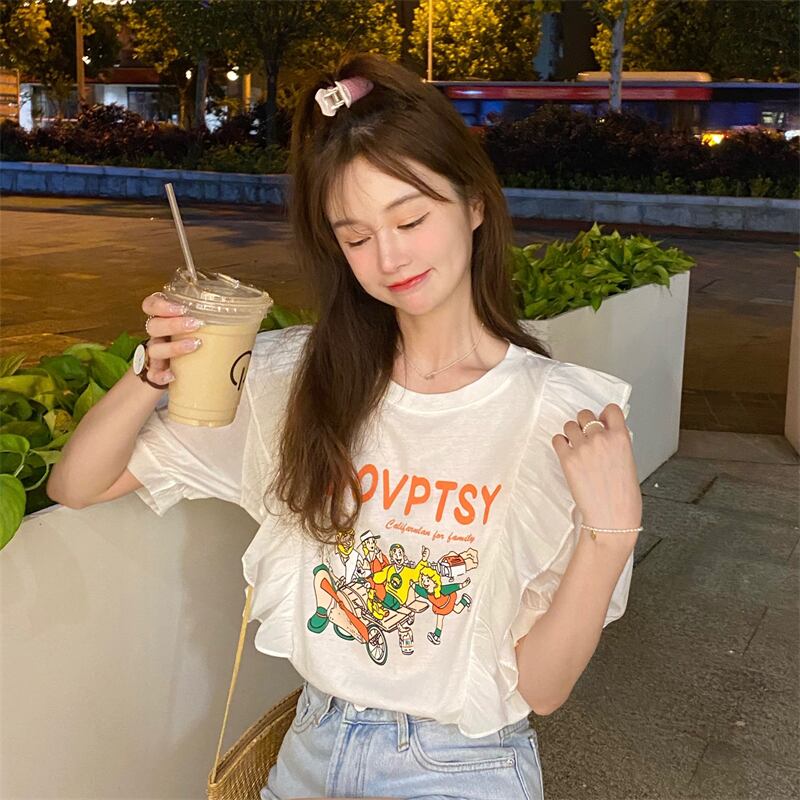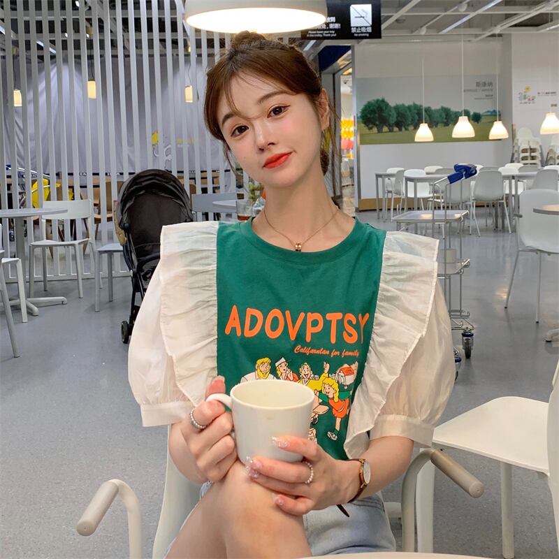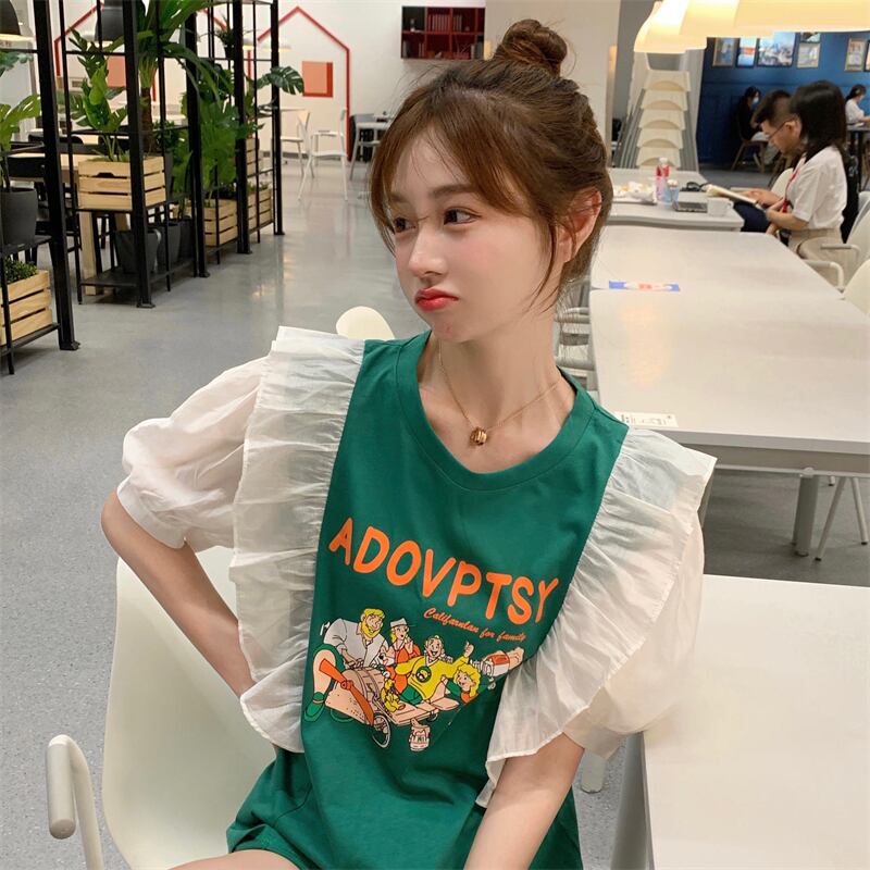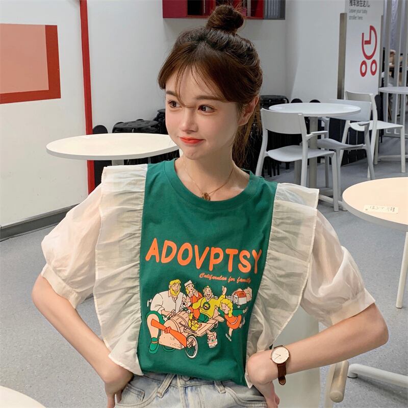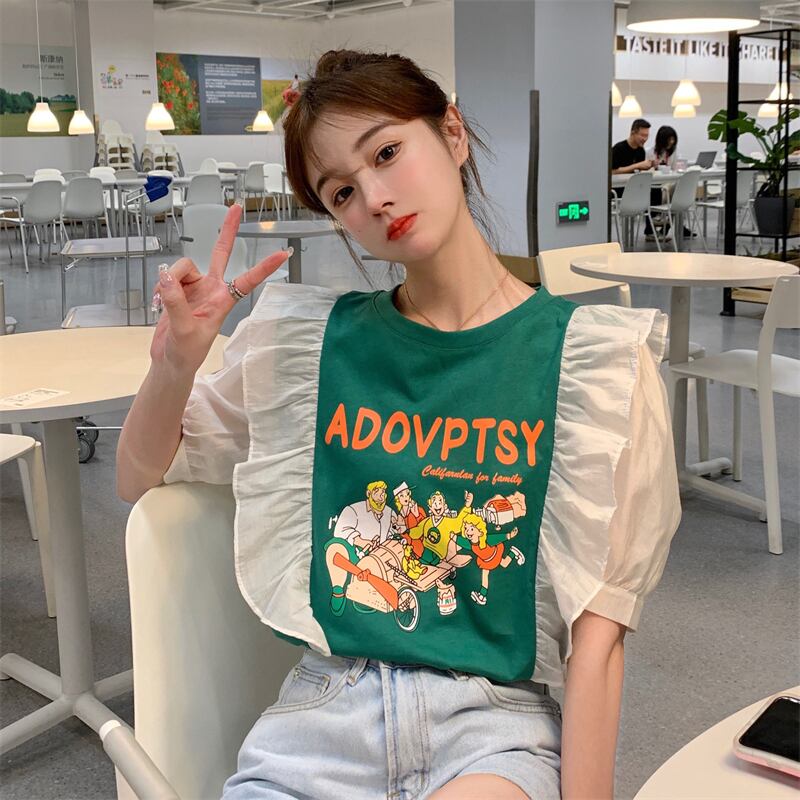 プリント柄スリーブTシャツ レディースサマー薄手ルーズトップス 夏物 YY-ファッション40700804747