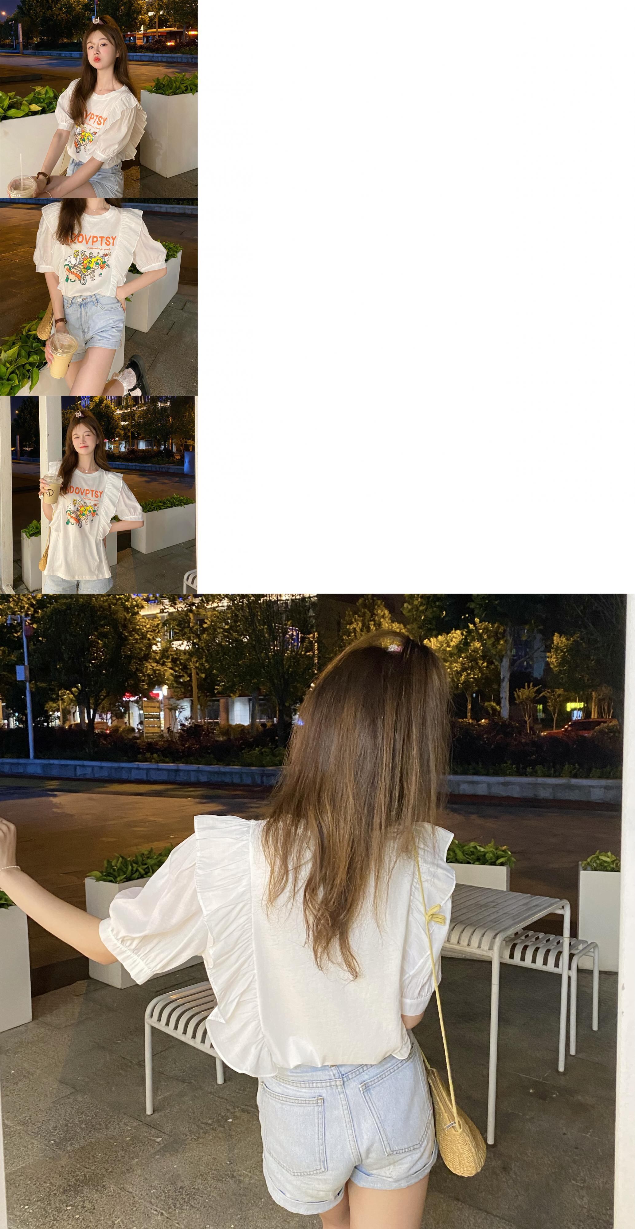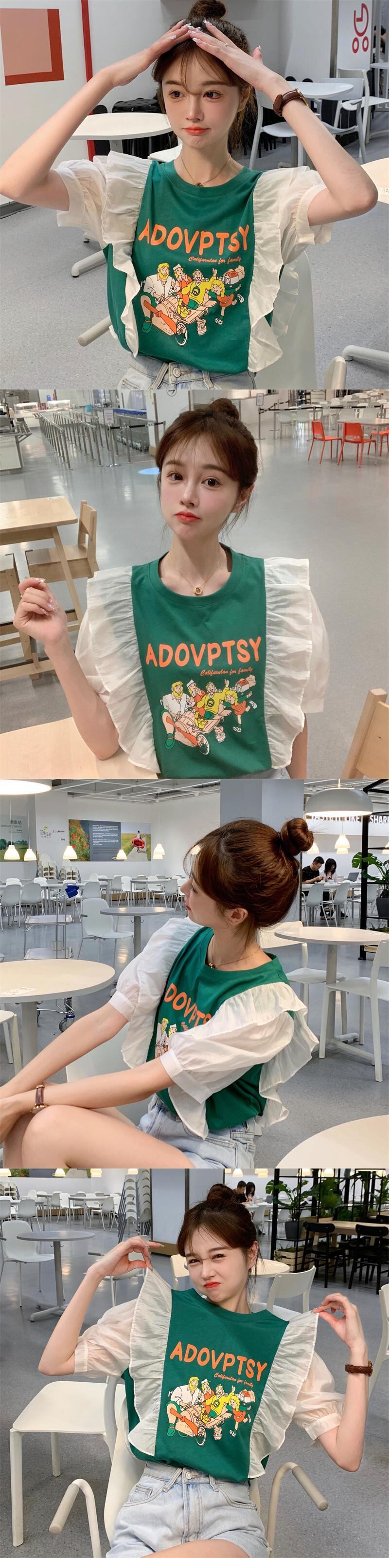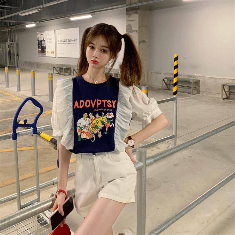 プリント柄スリーブTシャツ レディースサマー薄手ルーズトップス 夏物 YY-ファッション40700804747