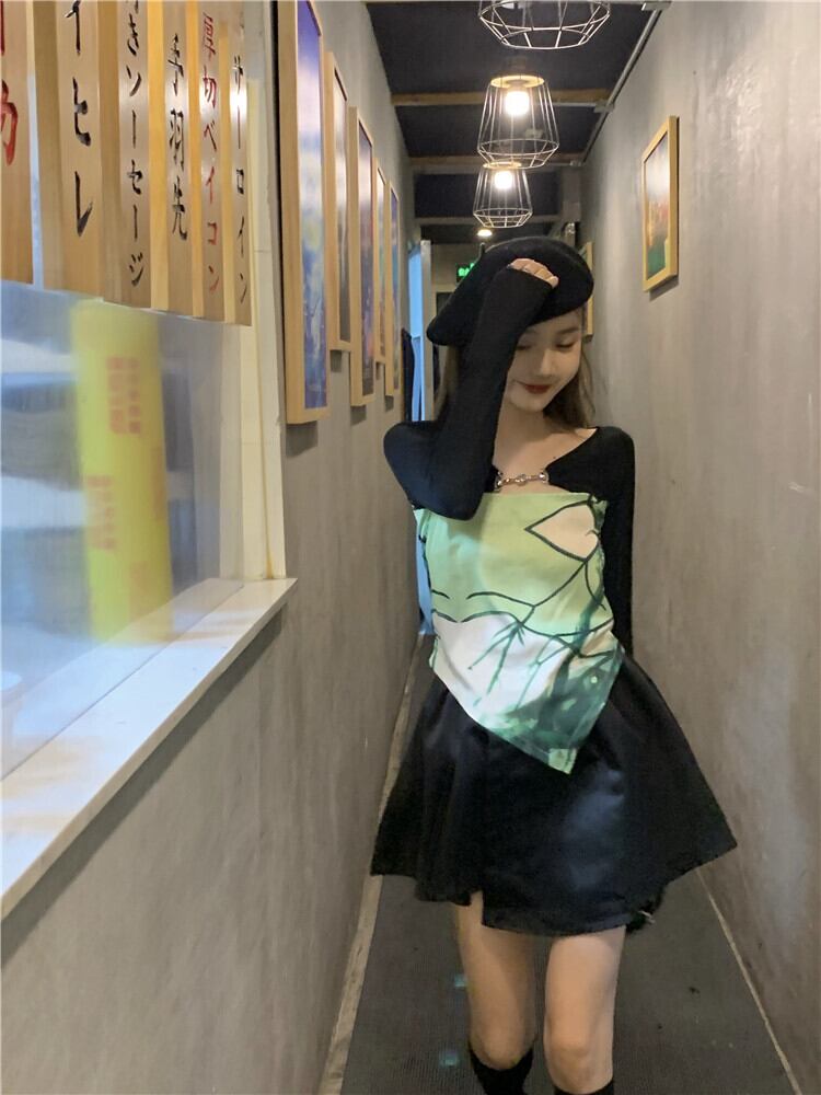 サマーツーピーススリムTシャツ レディースブラックスカート ロング 夏物 パニエ ペチコート YY-ファッション35683361852