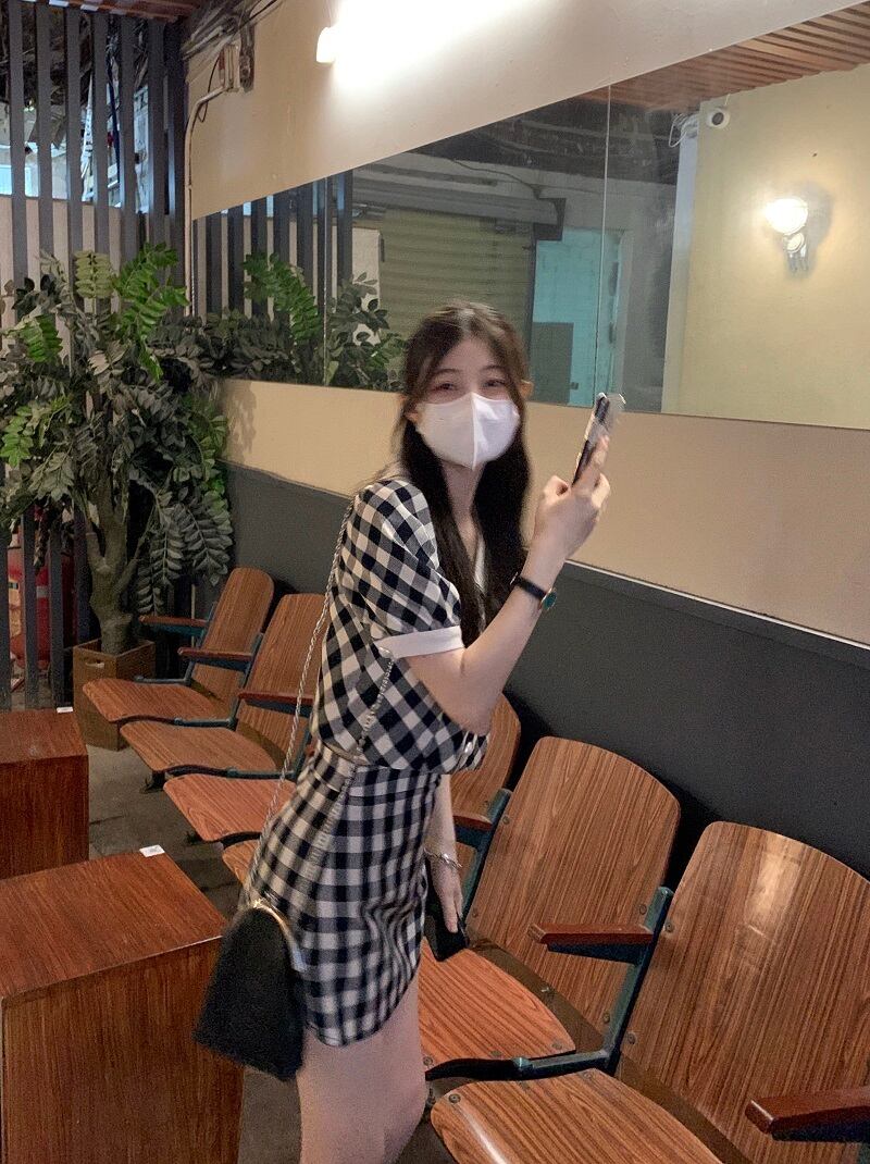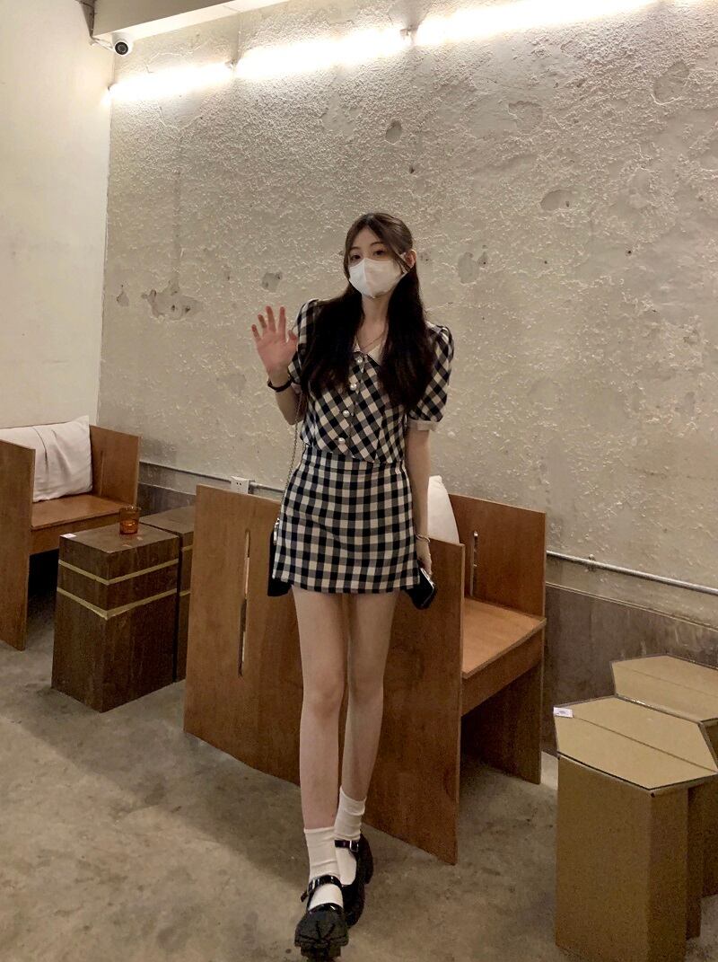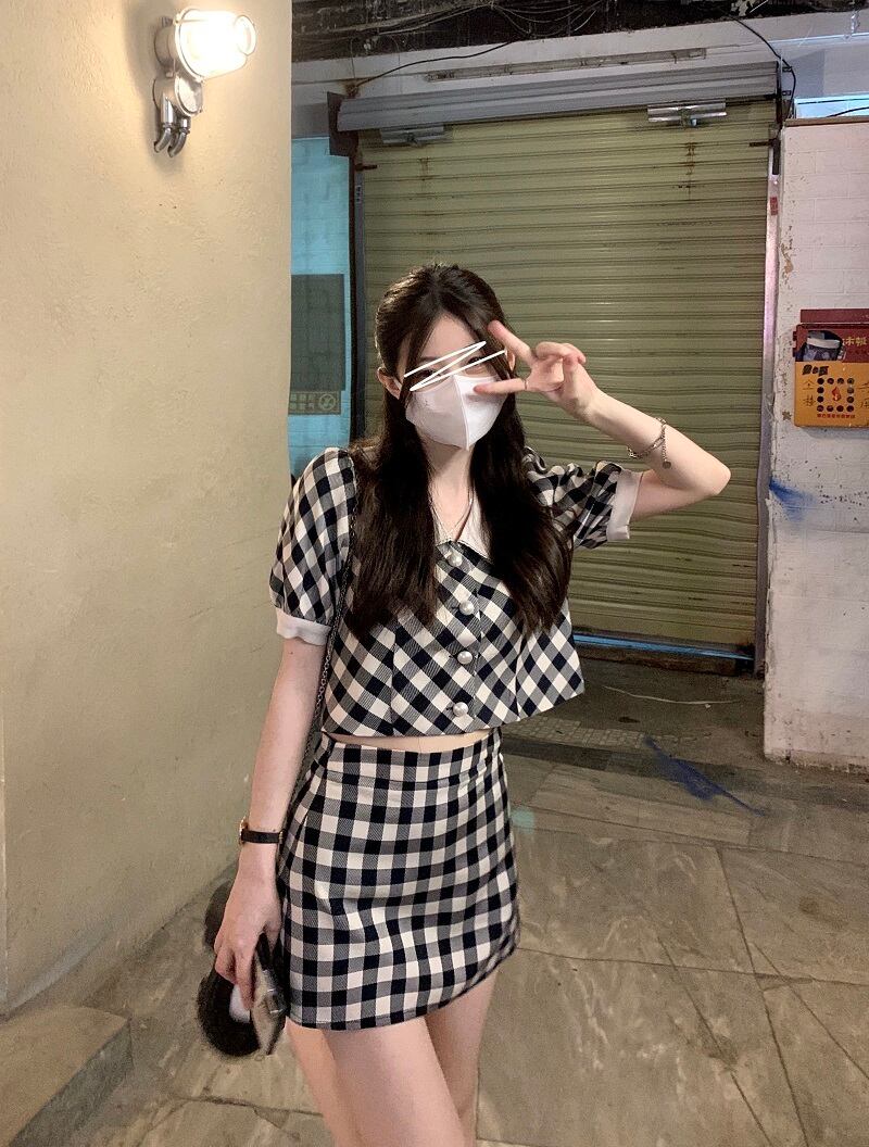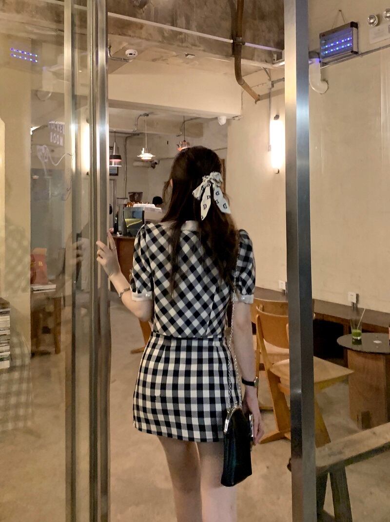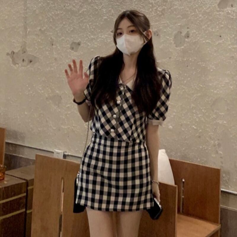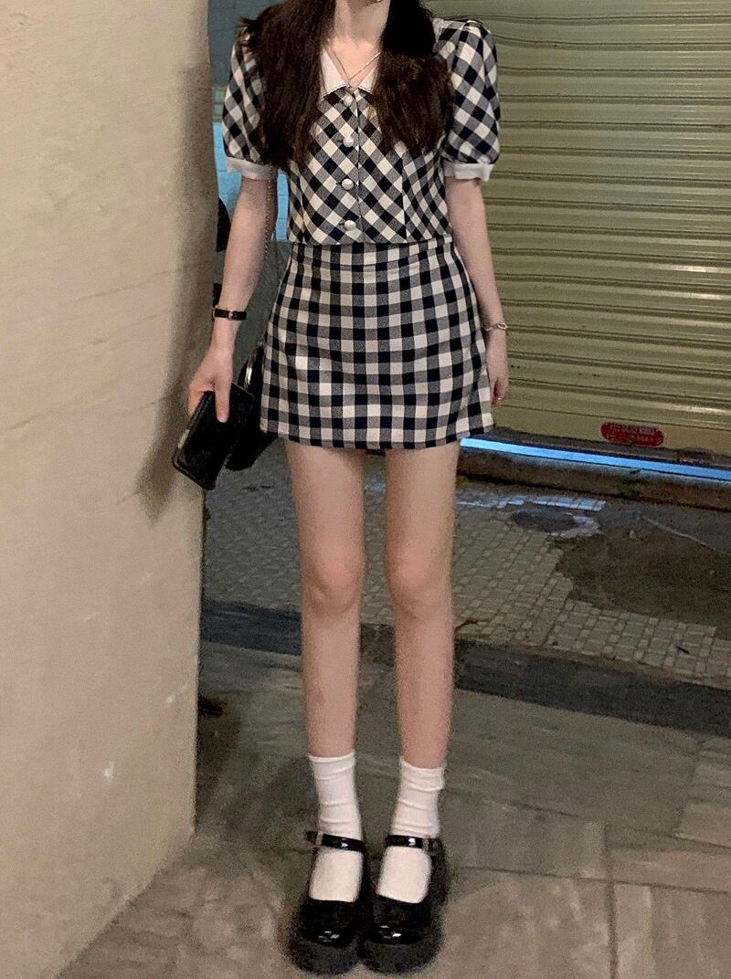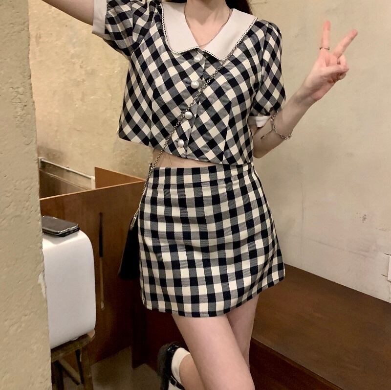 スタンダード格子柄サマーカラートップス スカート レトロ 夏物 YY-ファッション6051163203