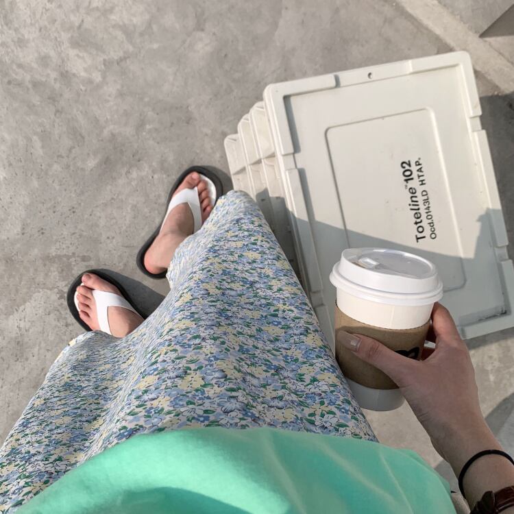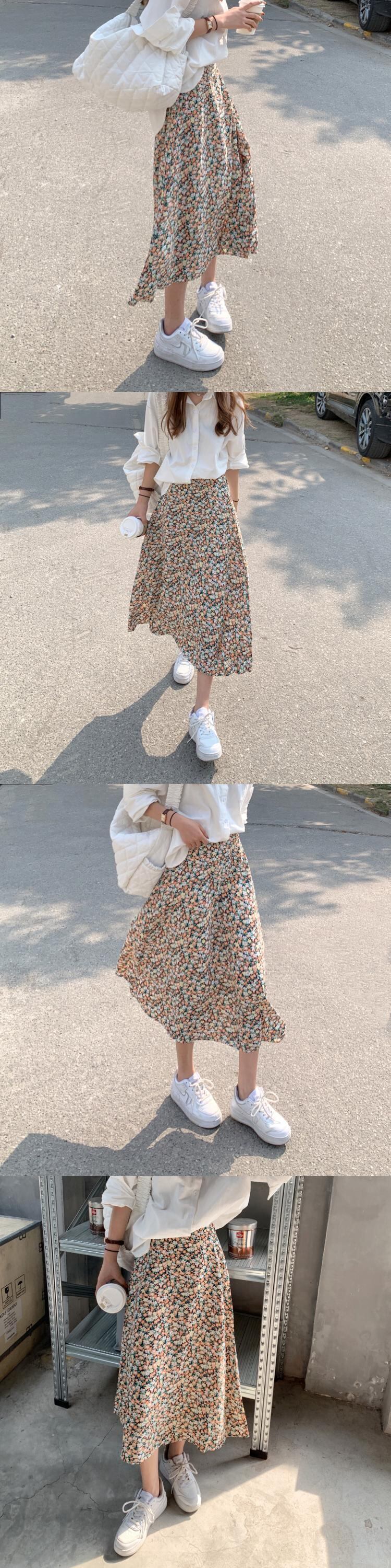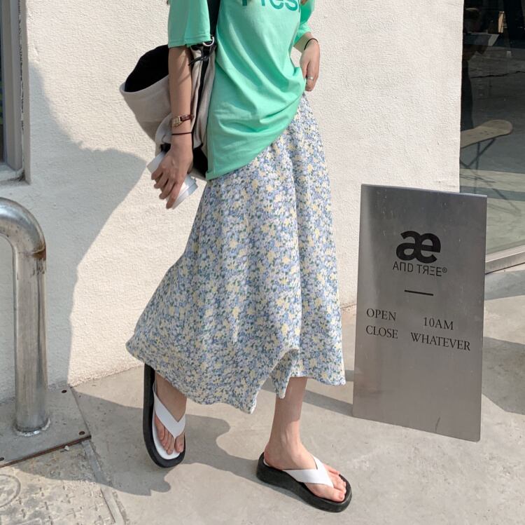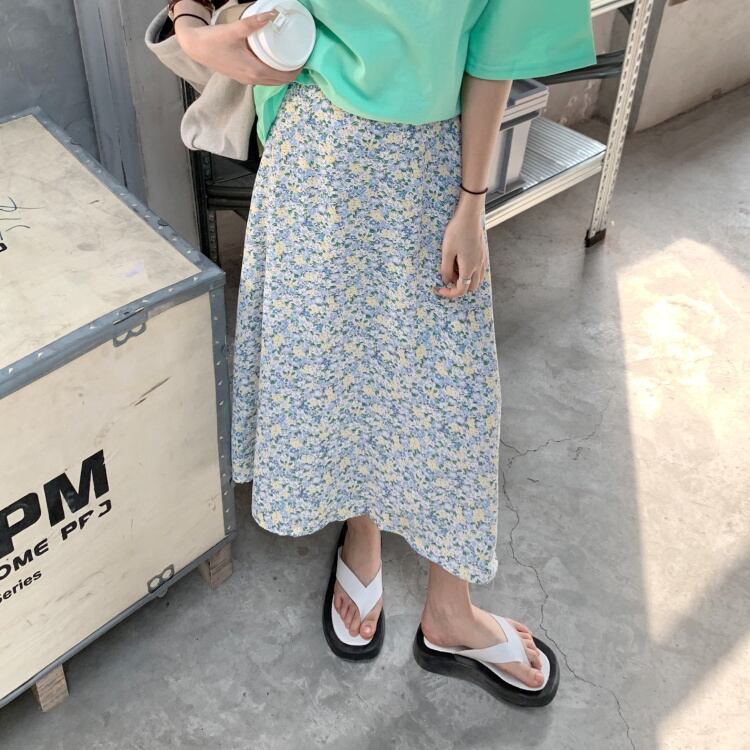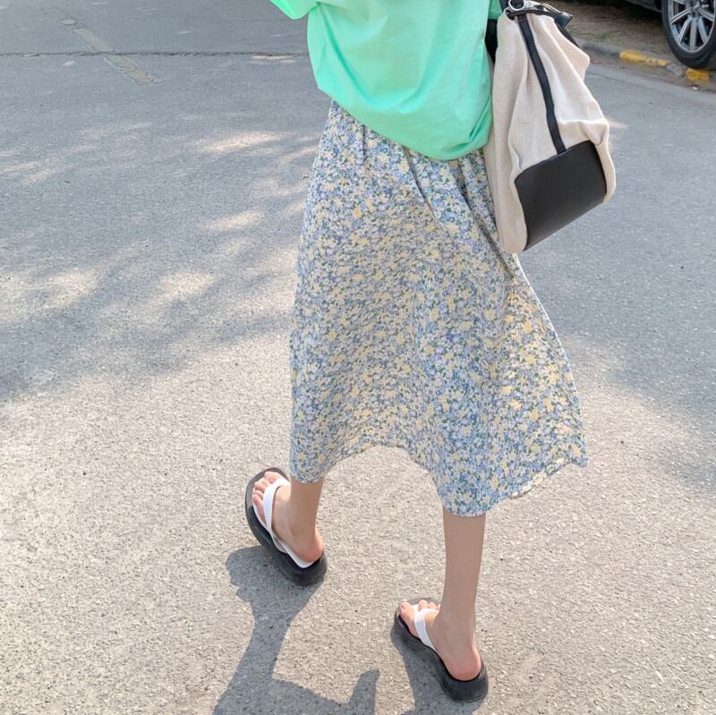 サマーハイウェストウェストフローラルスカート シフォンAライン薄手 大人ガーリー スウィート キュート カジュアル 夏物 花柄 YY-ファッション82622406533