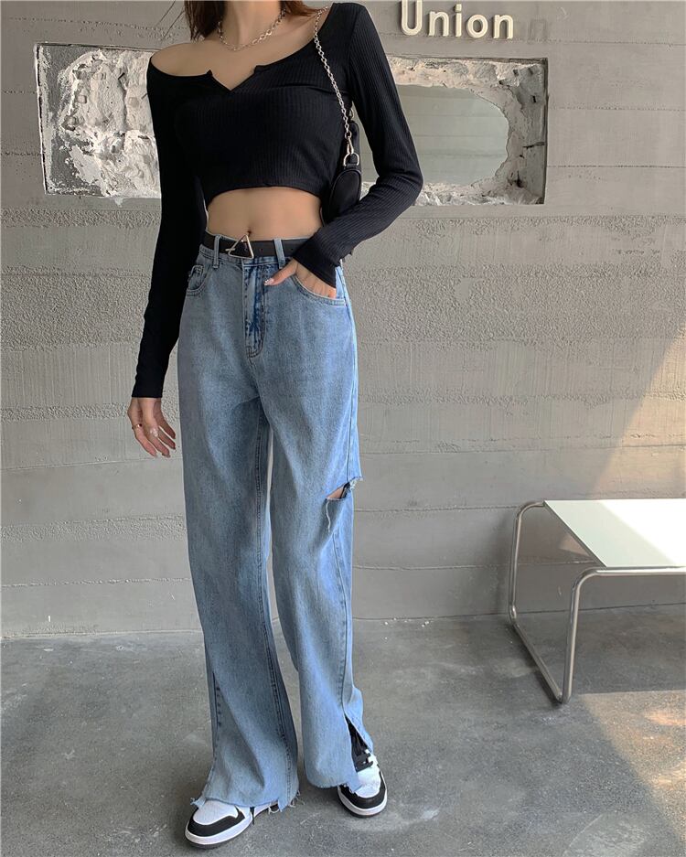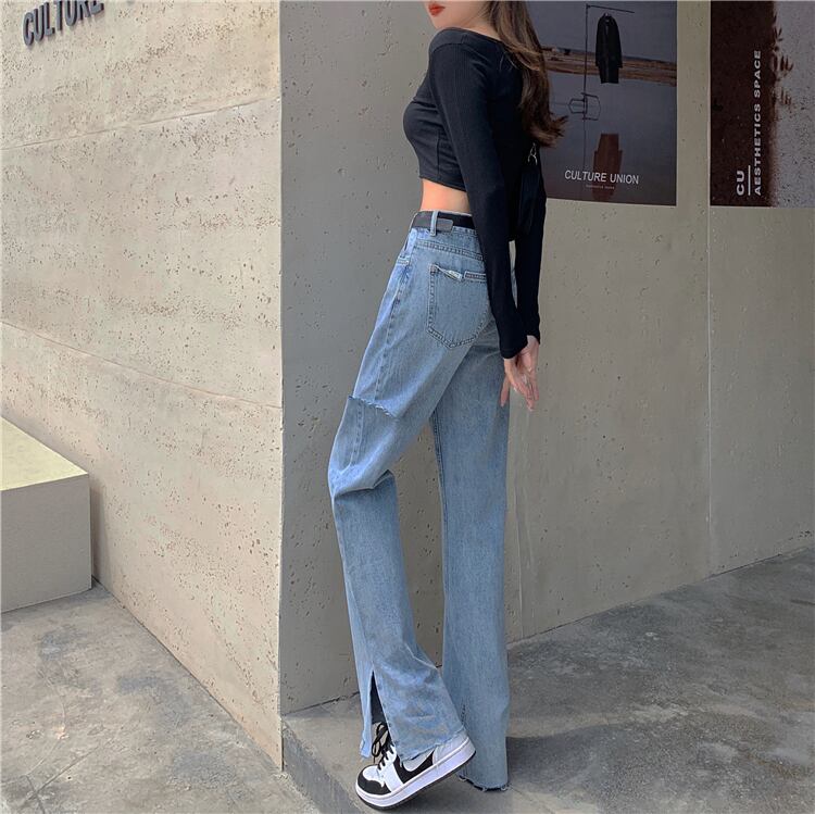 ジーンズ レディーススプリングサマーワイドレッグパンツ ルーズハイウェストウェスト レッド 春物 夏物 ワイドパンツ YY-ファッション64072314666