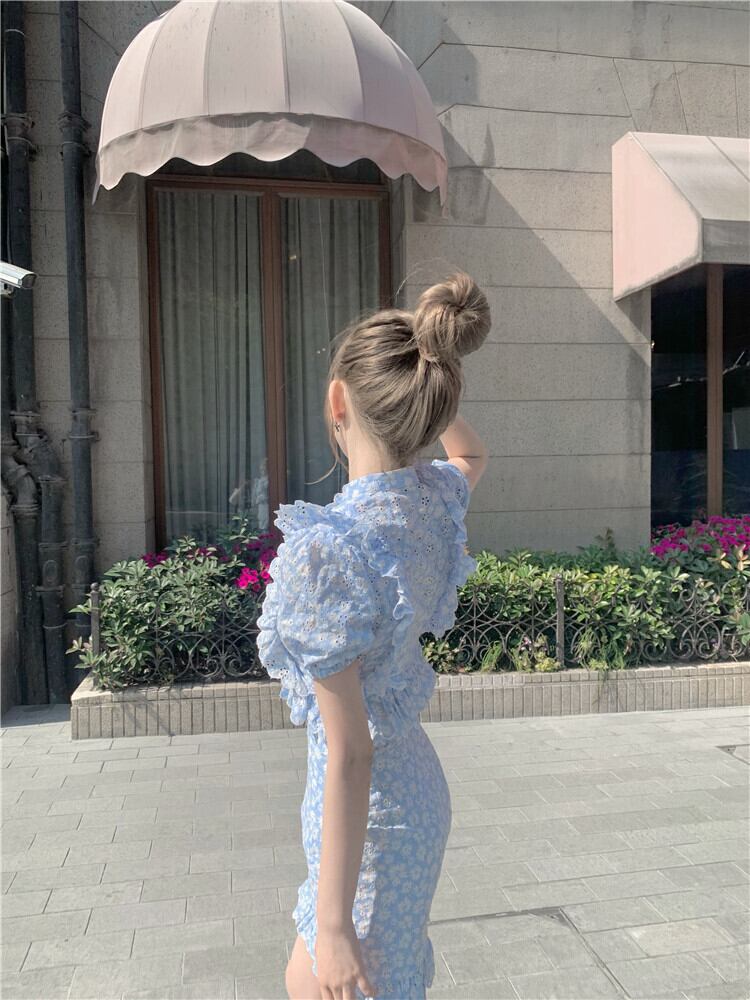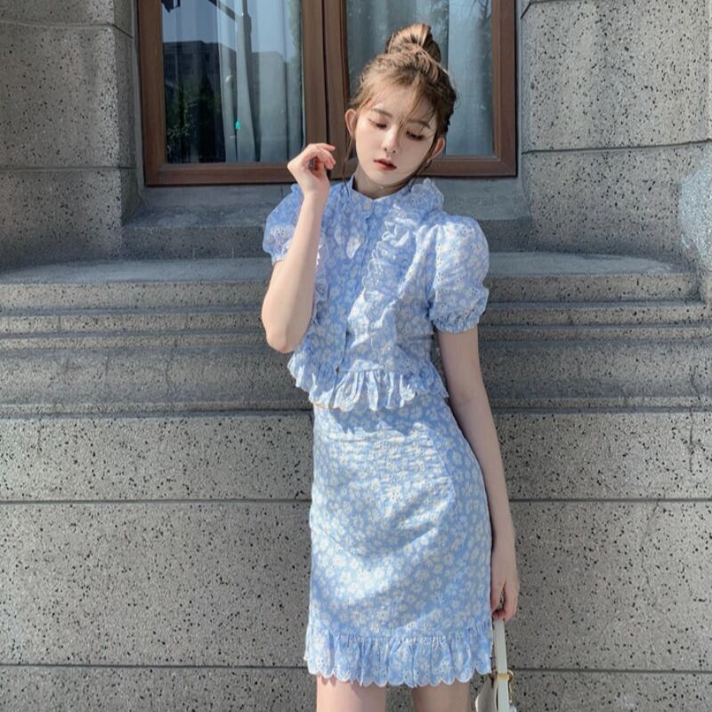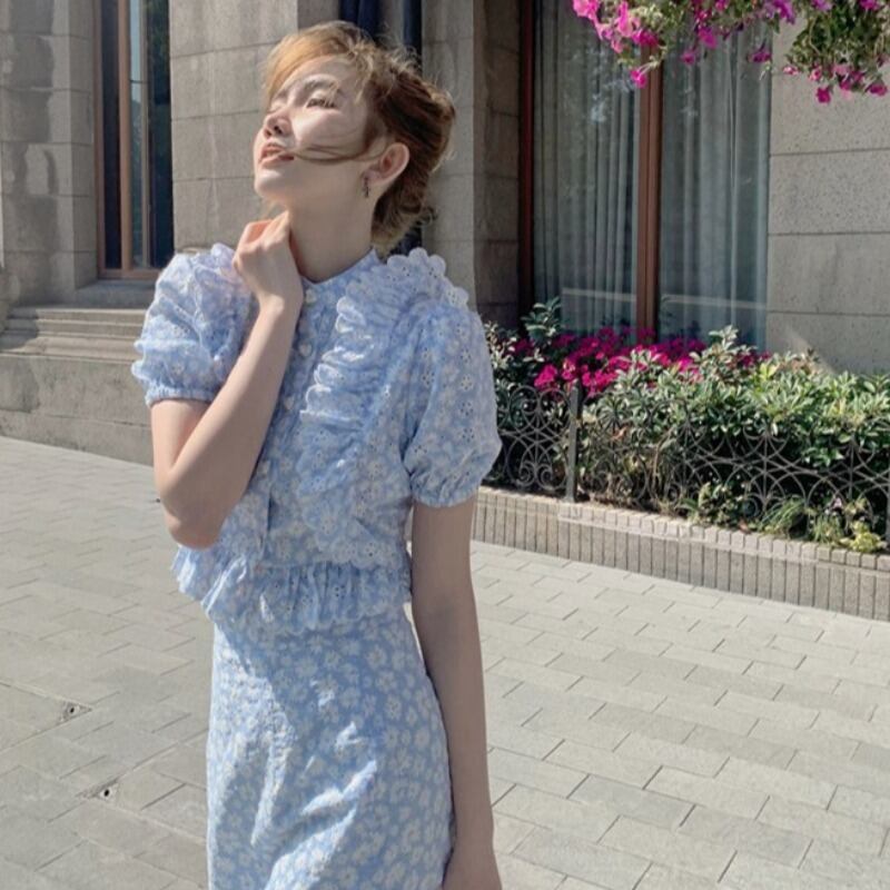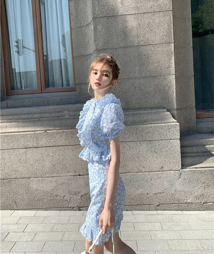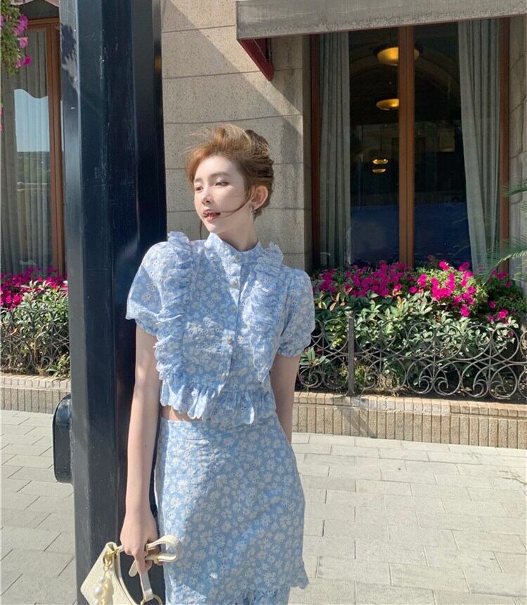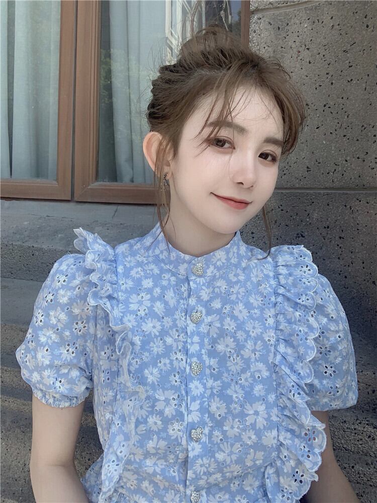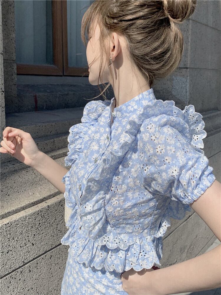 フローラルシャツ スリーブサマーブルークロップドトップス 夏物 花柄 YY-ファッション71890838636