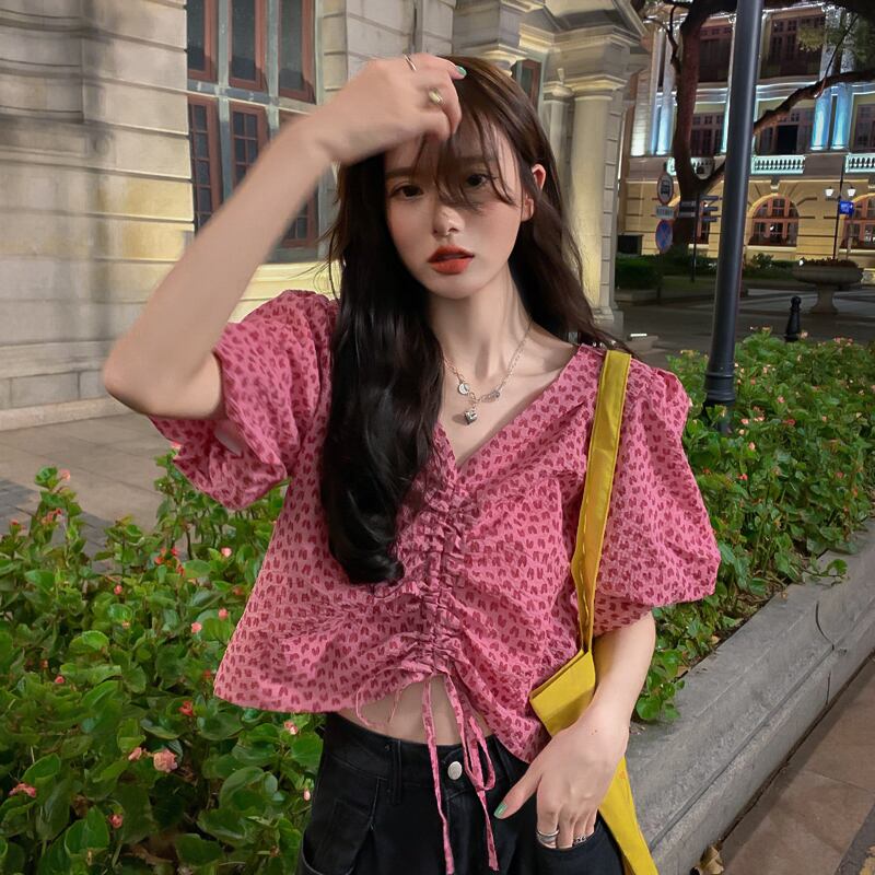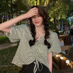 シャツ サマースタイルスリーブギャザー半袖 ショート ハーフスリーブ ストリート 大人ガーリー スウィート キュート カジュアル 夏物 YY-ファッション3323421806