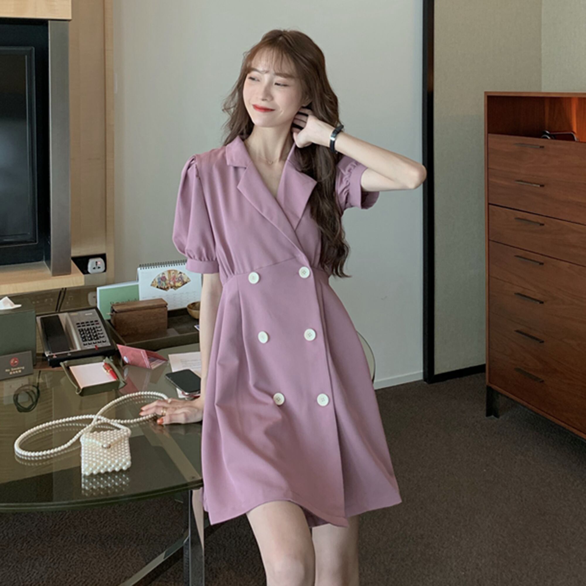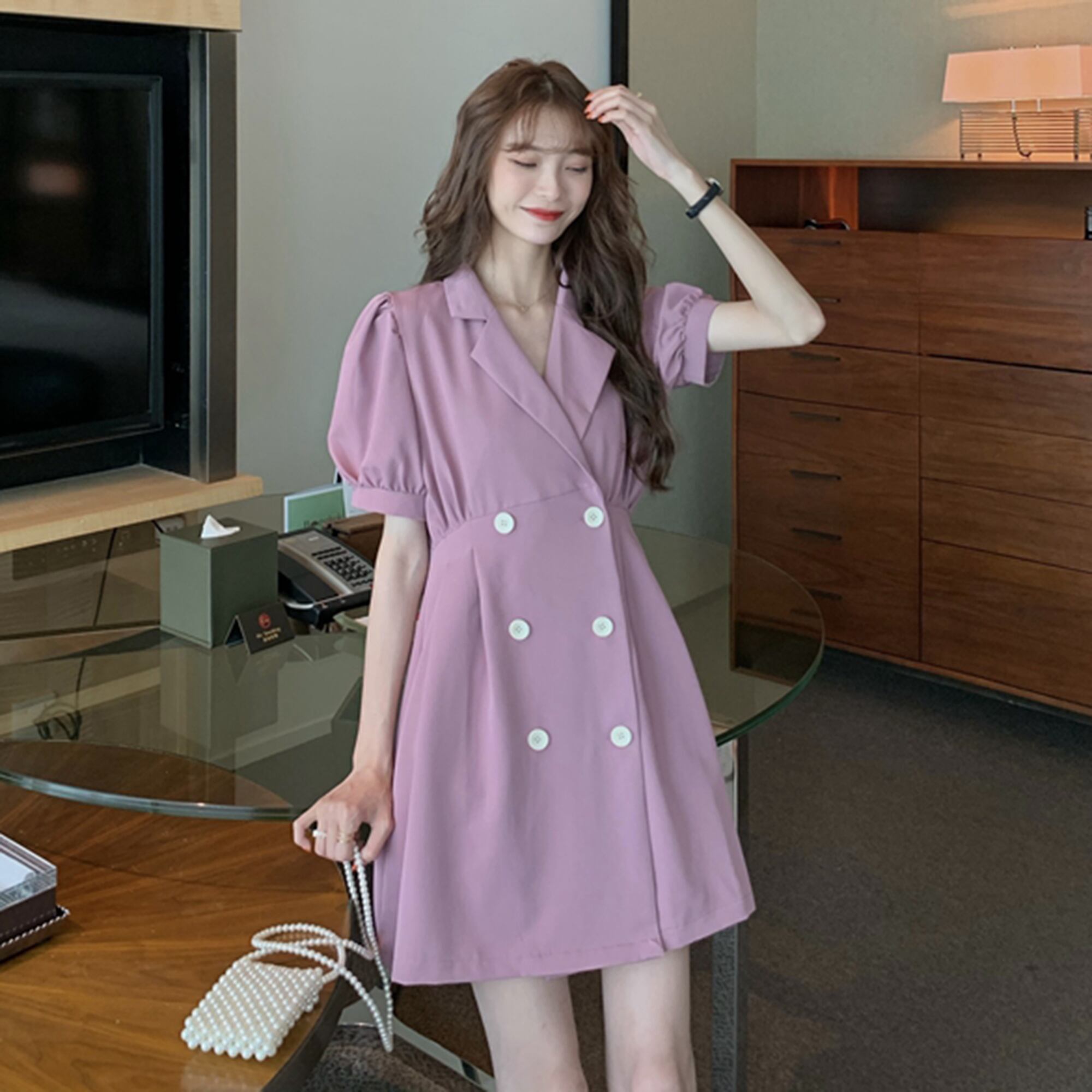 ドレス サマースタイルスタンダードスカート レトロ 夏物 パープル YY-ファッション90025079943