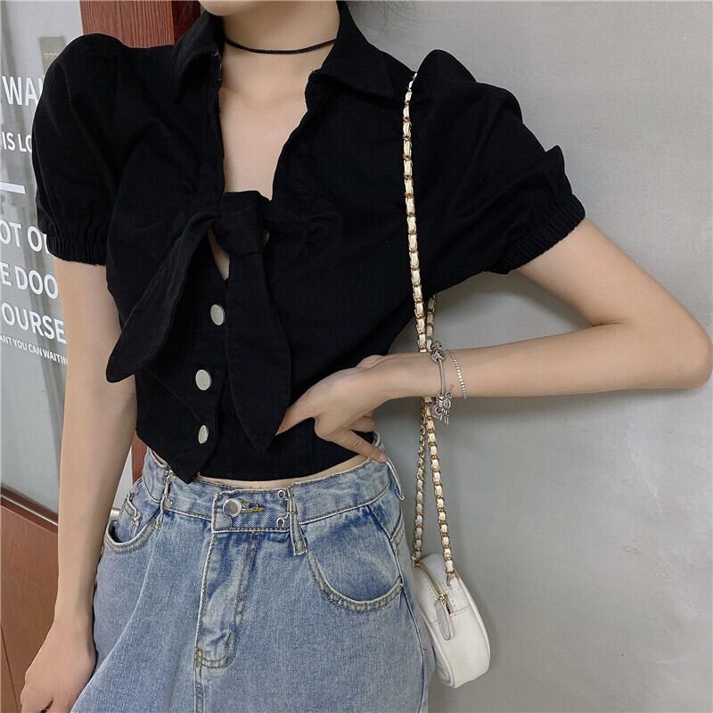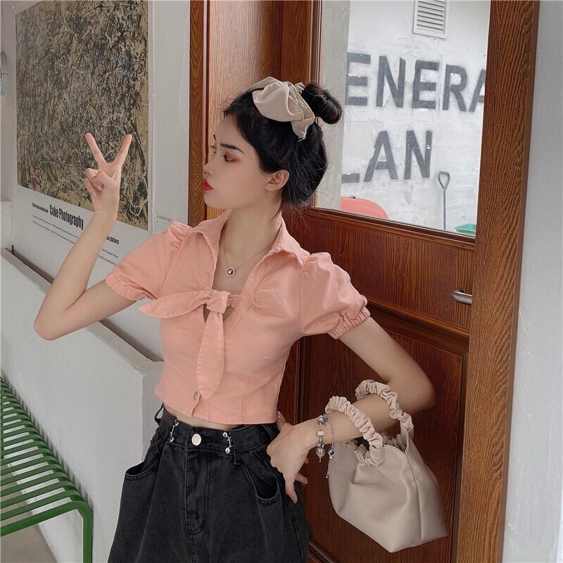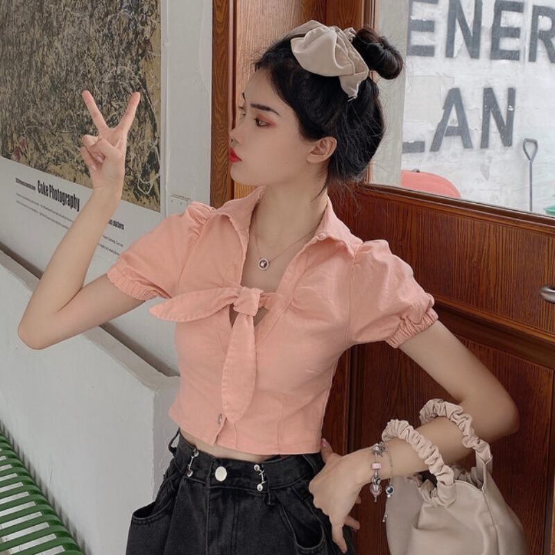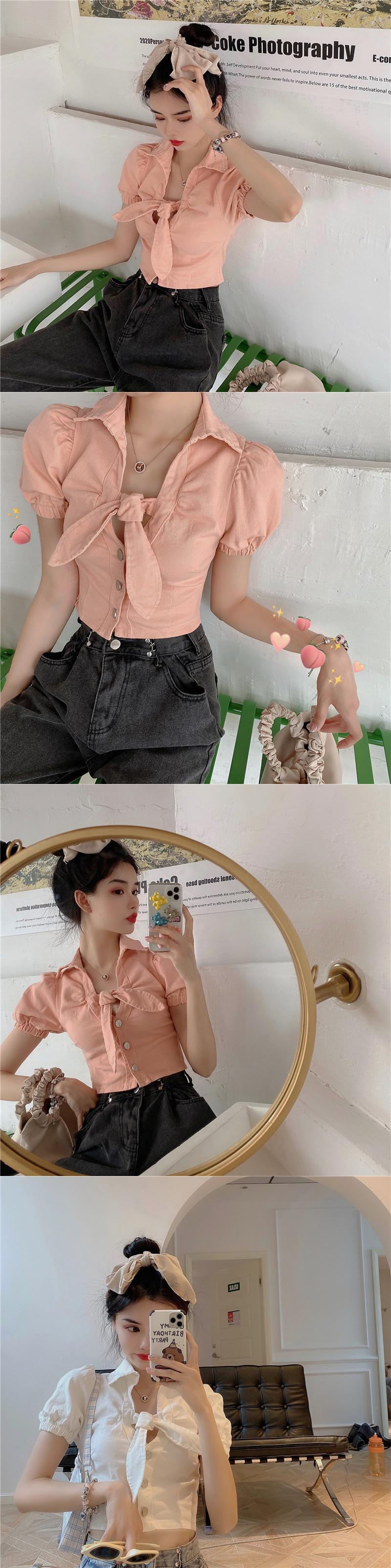 サマースリムホワイトショートシャツ トップス レディース 夏物 YY-ファッション28882287204