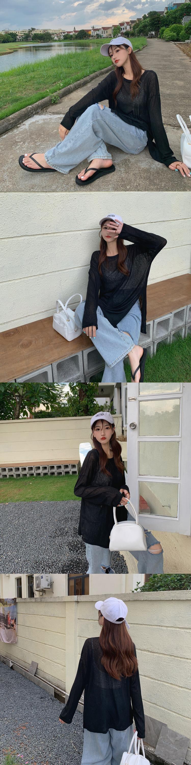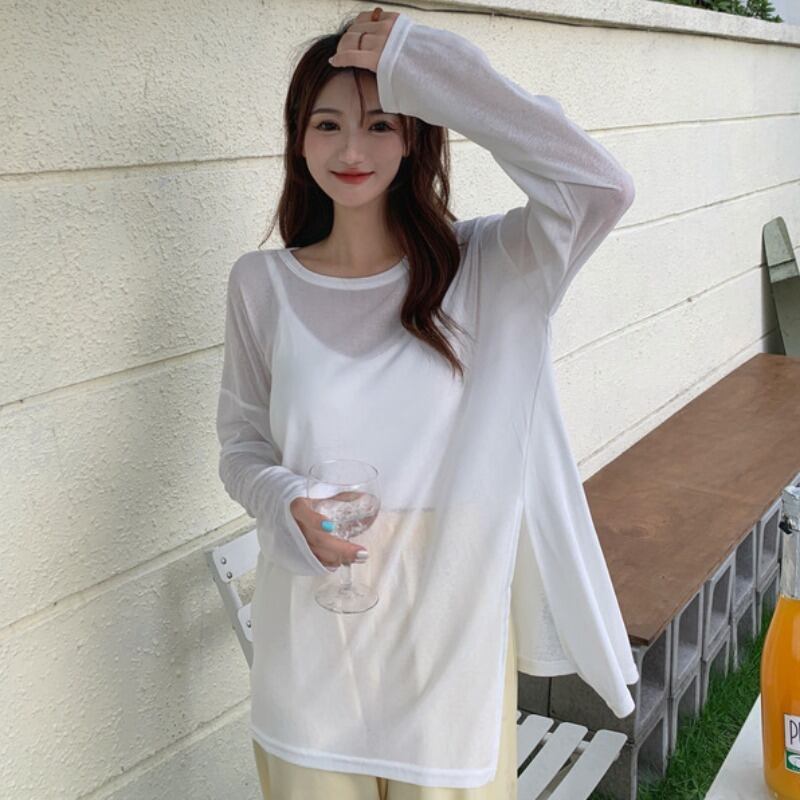 シャツ サマースタイル薄手Tシャツ プルオーバー トップス ロング 夏物 シルク YY-ファッション47732176323