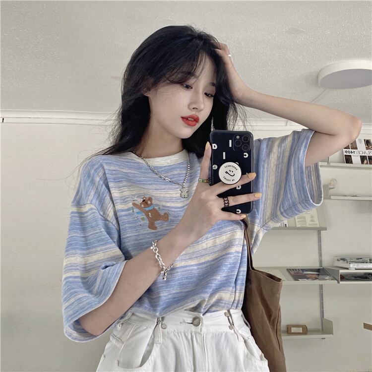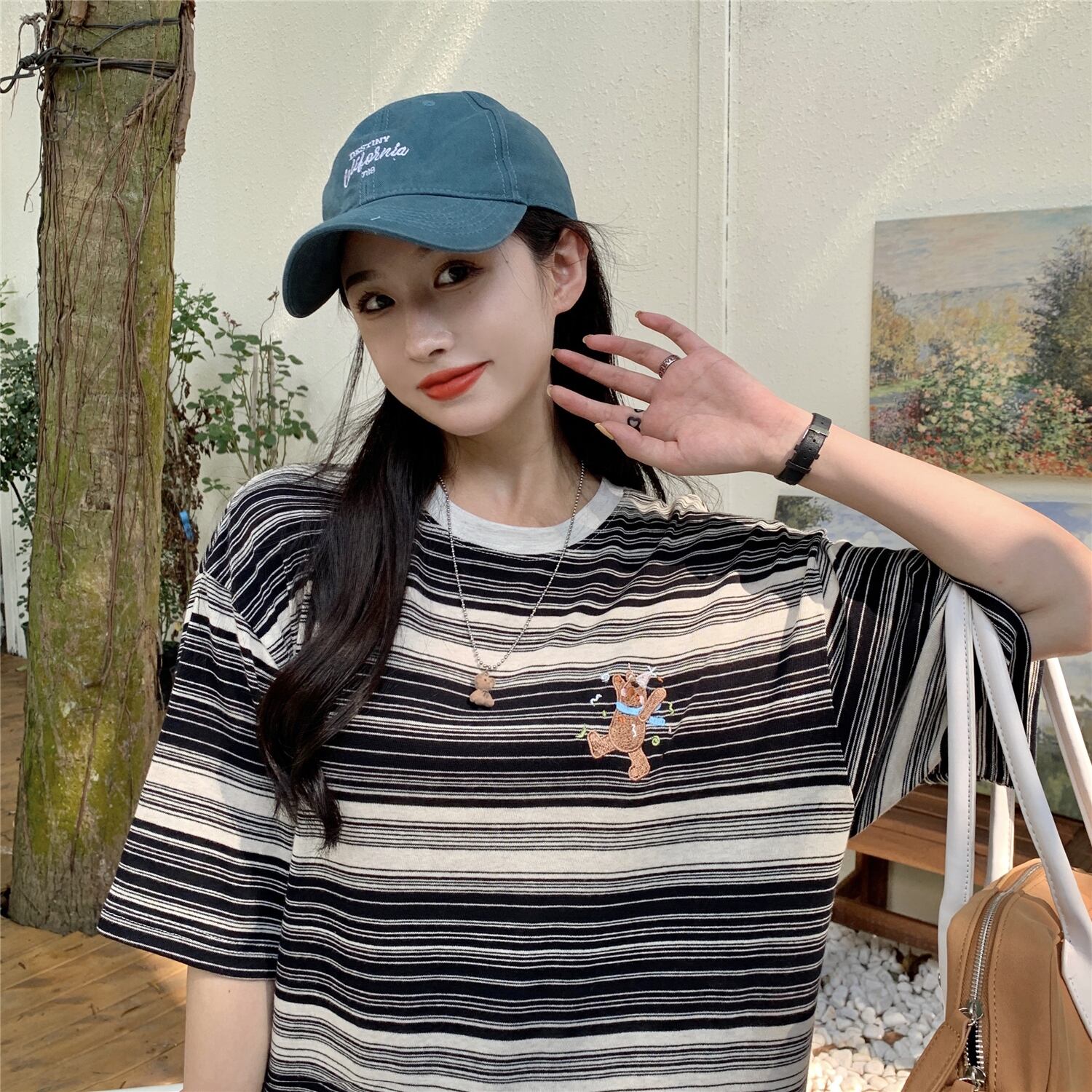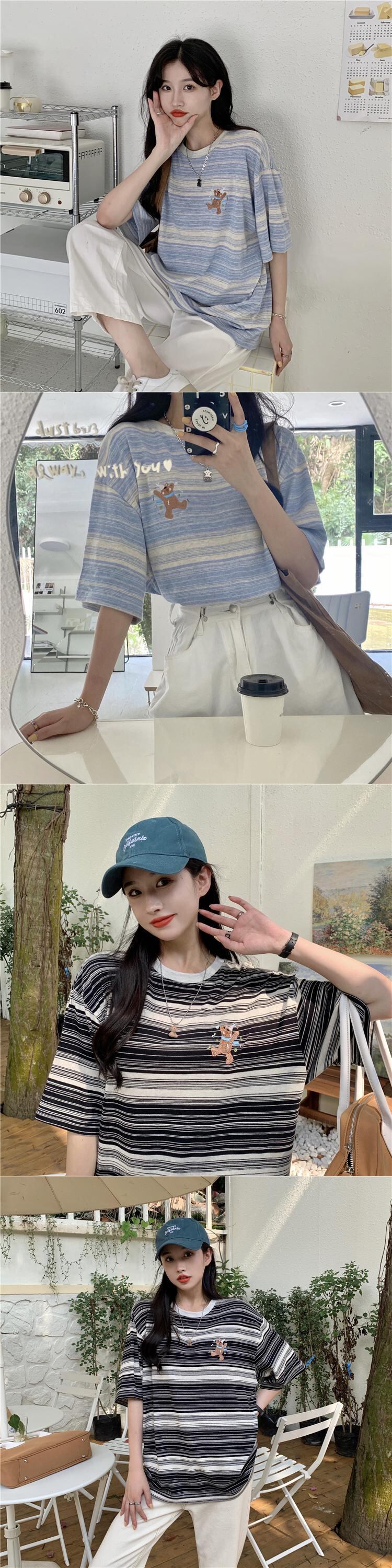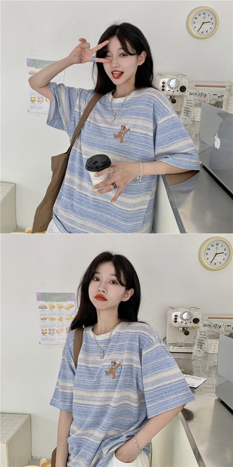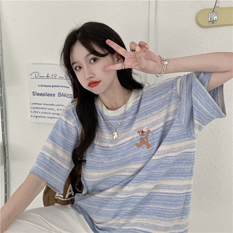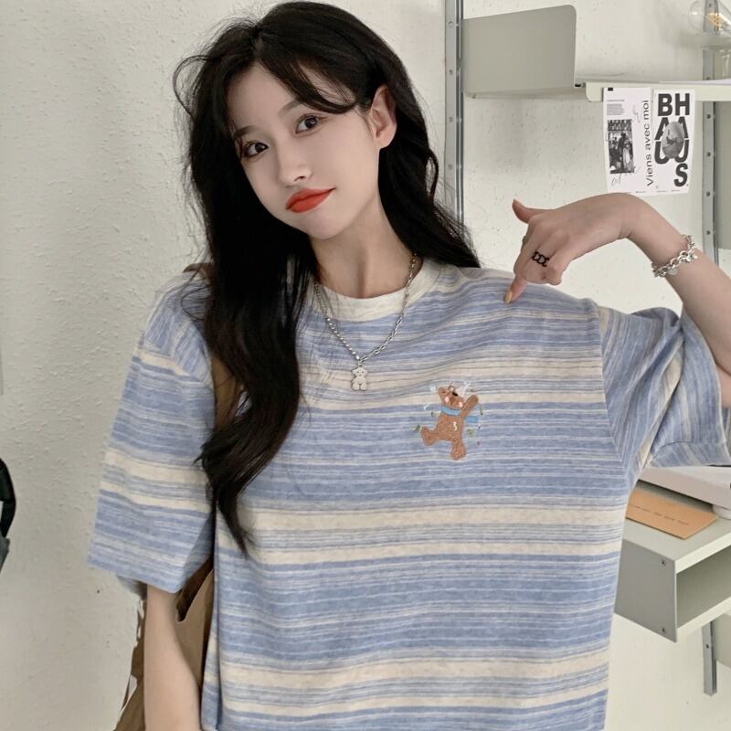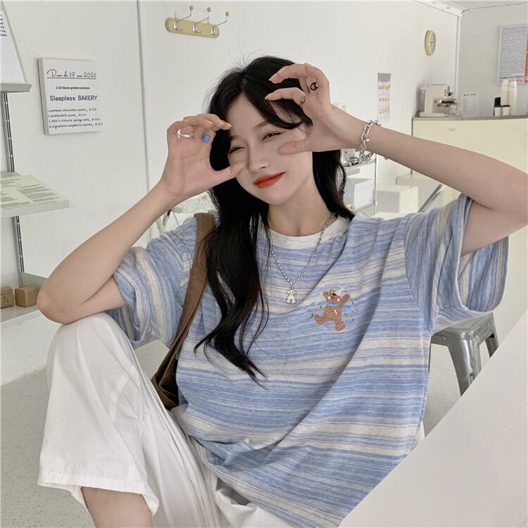 Tシャツ 刺繍ストライプサマールーズトップス レディース 夏物 YY-ファッション23709406824