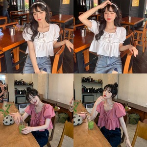 シャツ トップス サマースリムカラースタイルレディース 夏物 スクウェア YY-ファッション81709258098