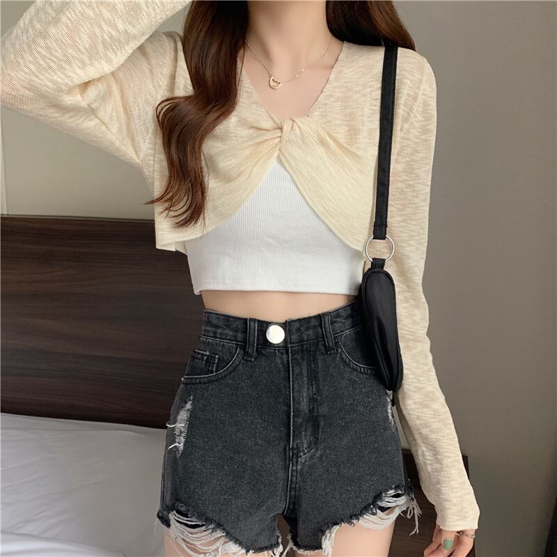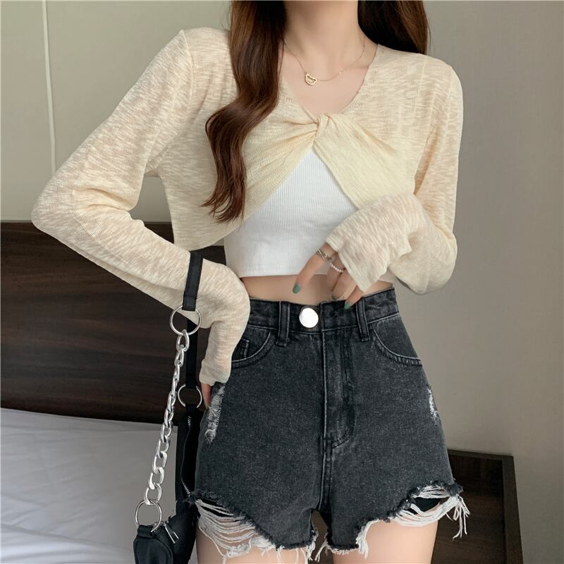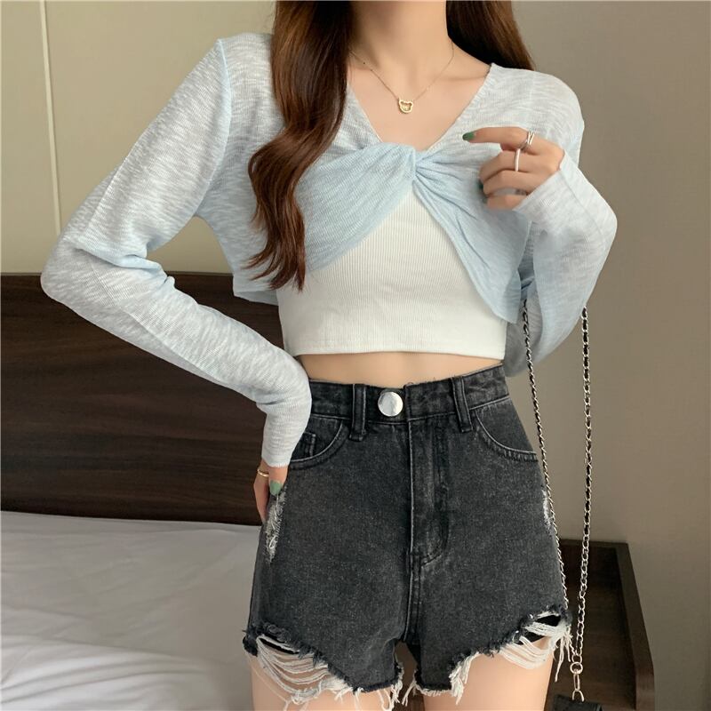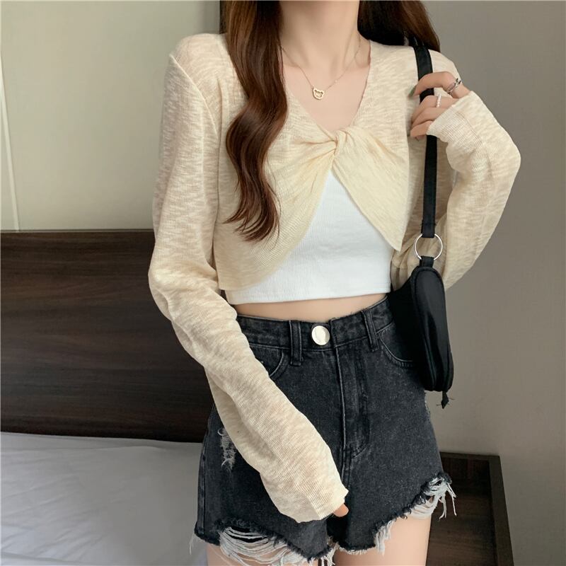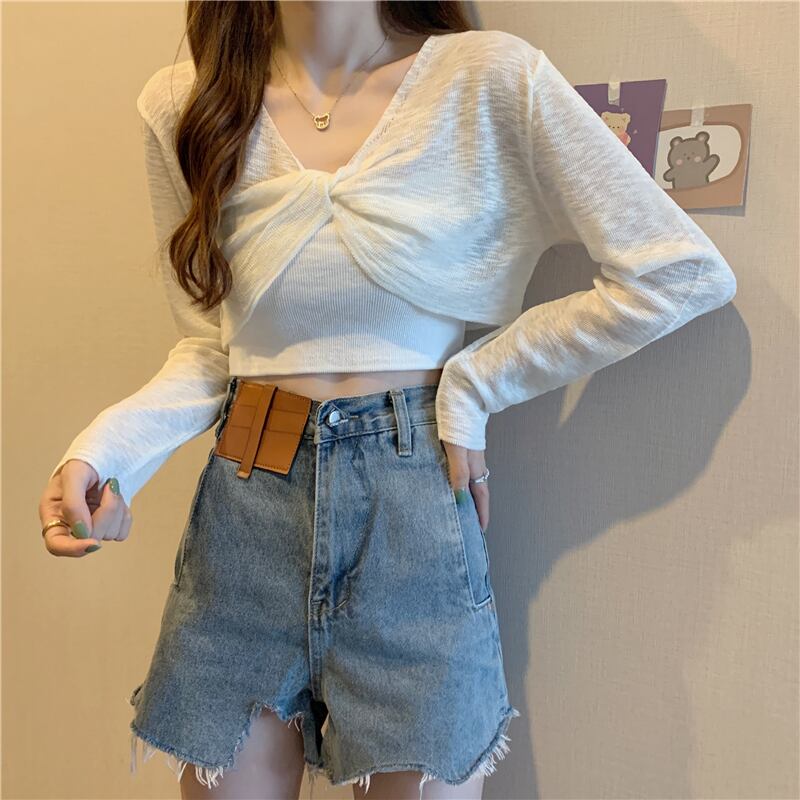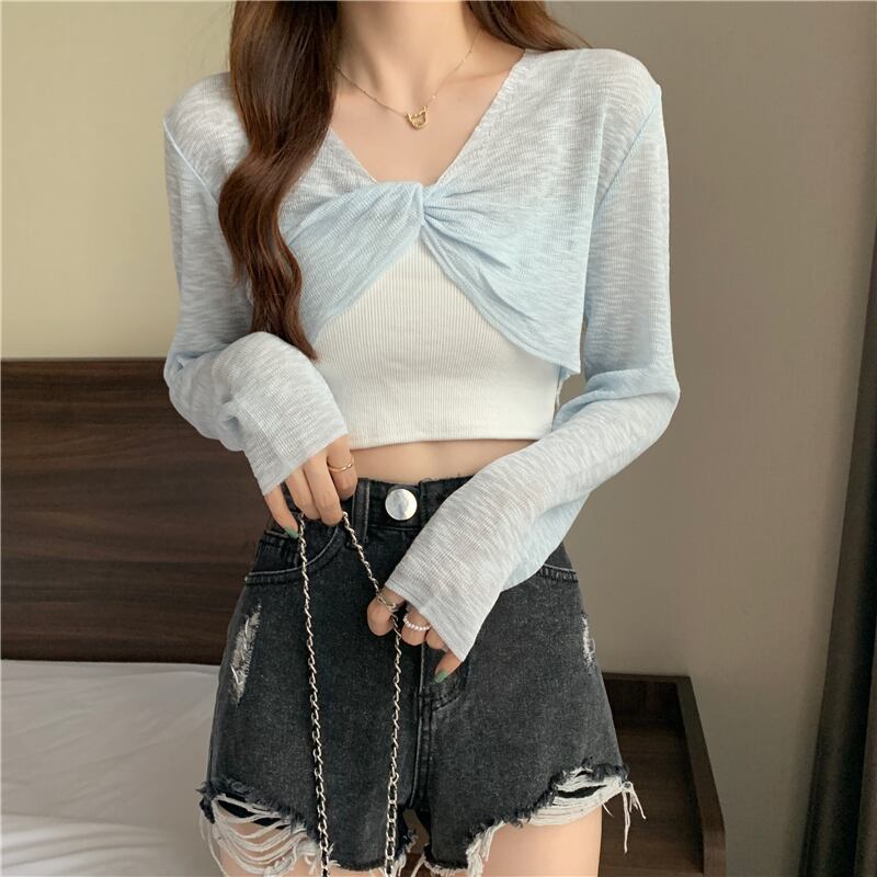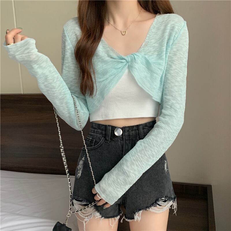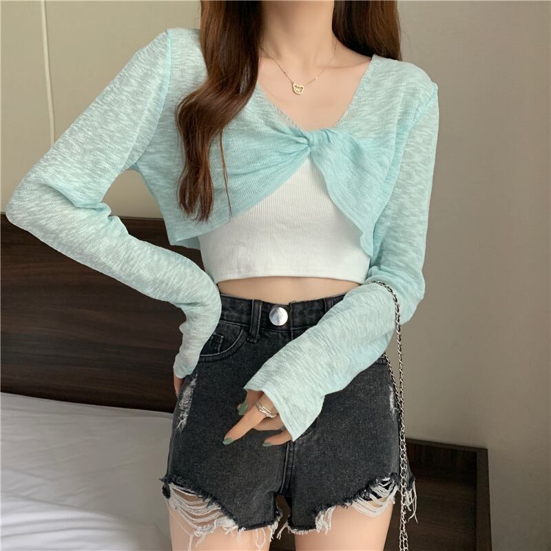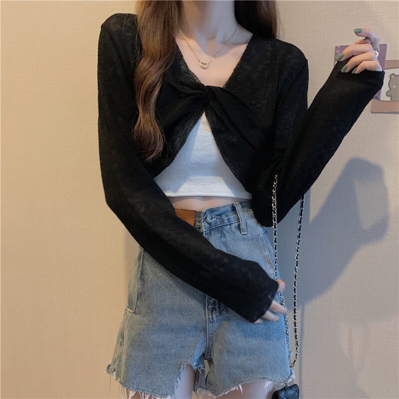 ニットセーター レディースサマー薄手ブラウス ショート長袖スリーブトップス ロング 夏物 YY-ファッション83751207660