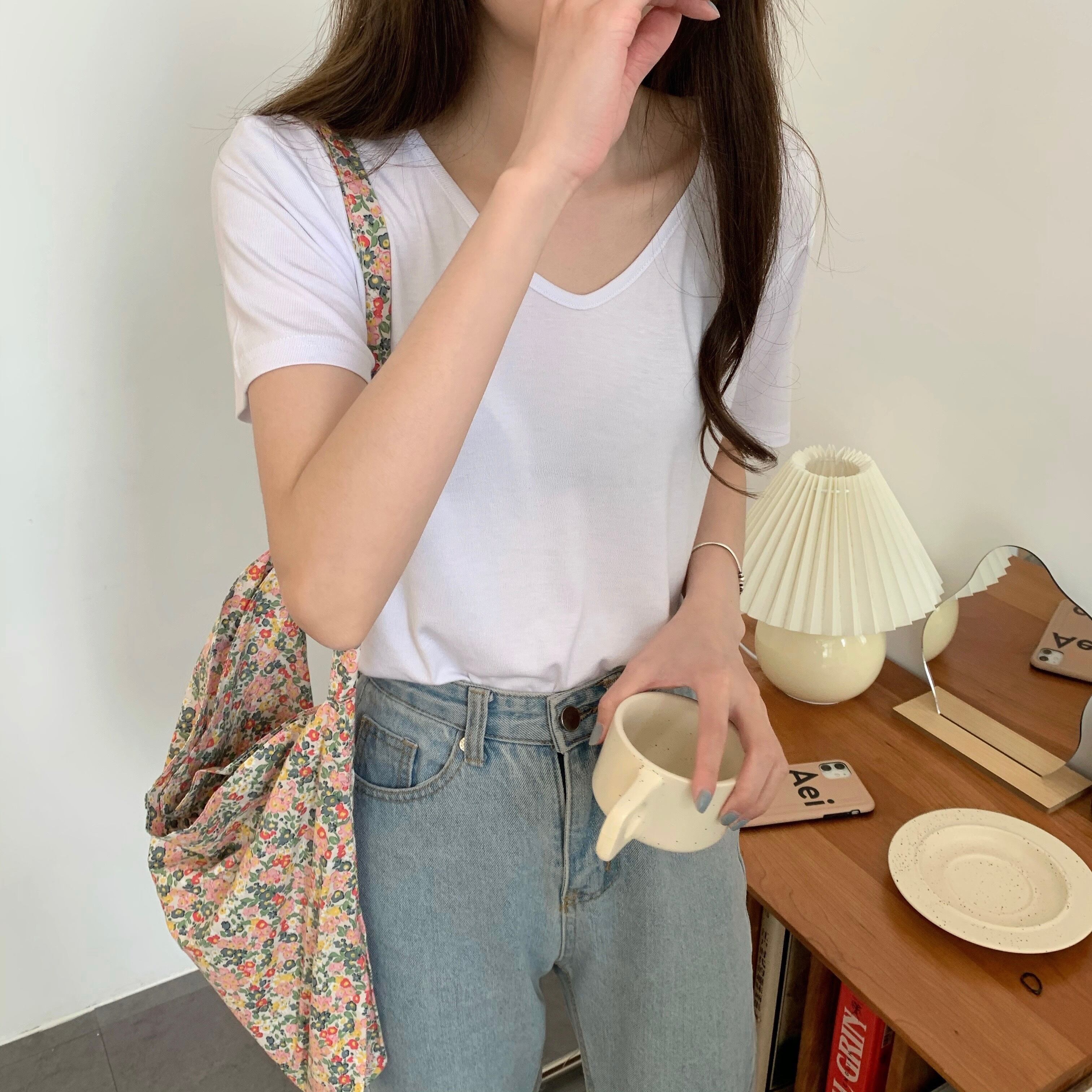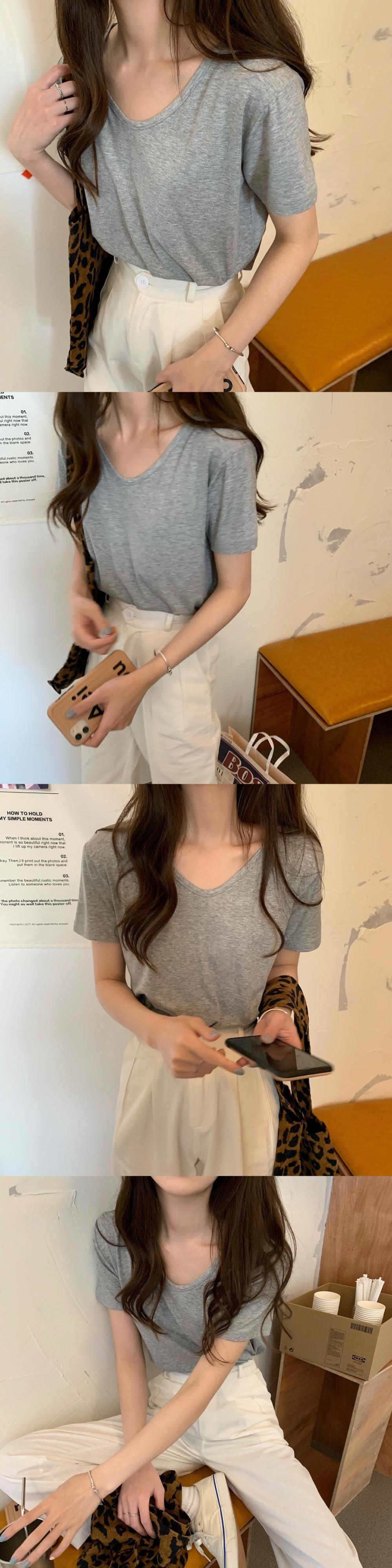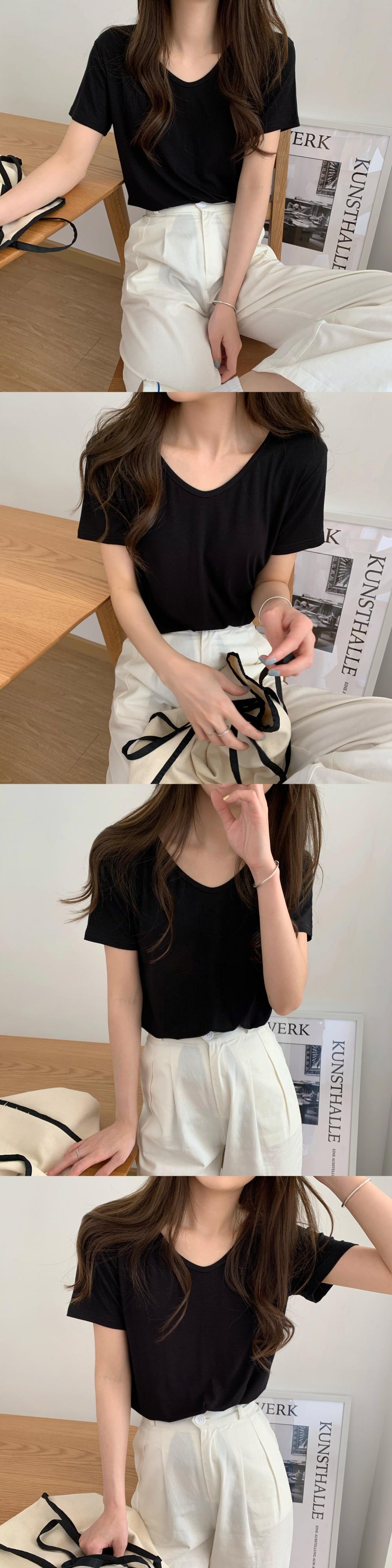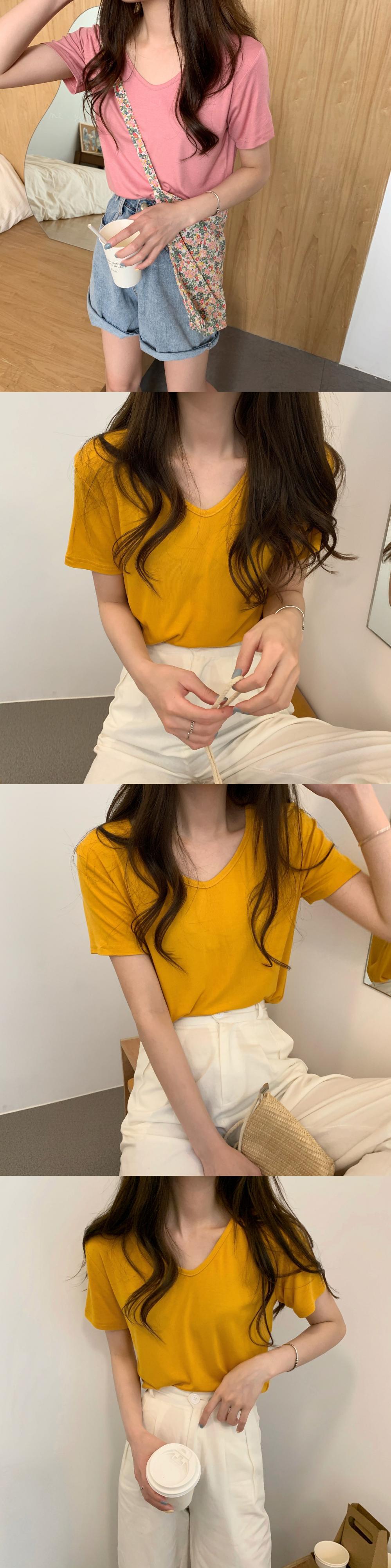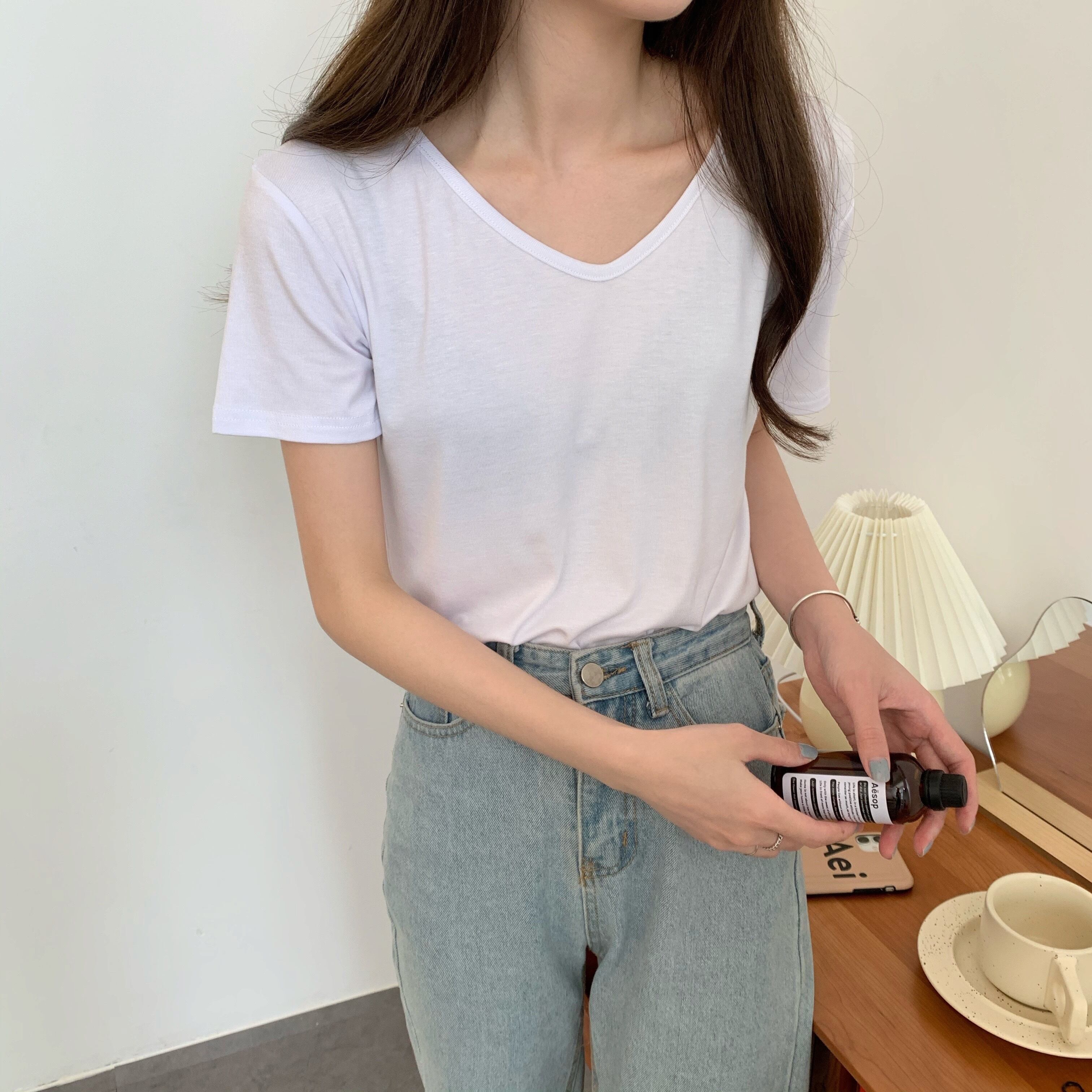 カラーVネックTシャツ シャツ サマースタイルスリムトップス 夏物 YY-ファッション17986961059